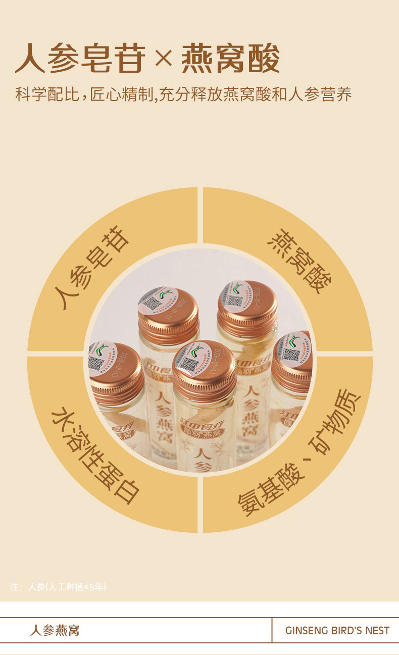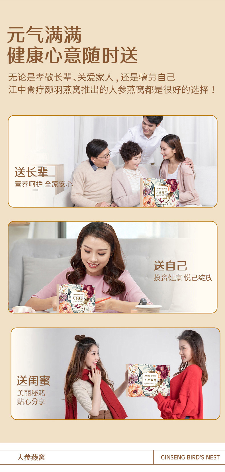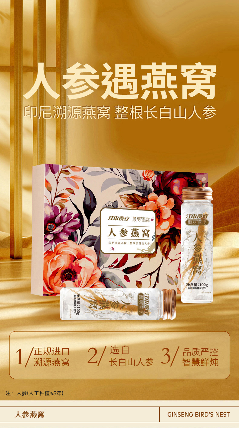 【人参燕窝·1克干燕窝】江中食疗颜羽人参燕窝 100g*5瓶 滋补营养品进口金丝燕盏礼盒 保质期18个月【京东/顺丰快递】