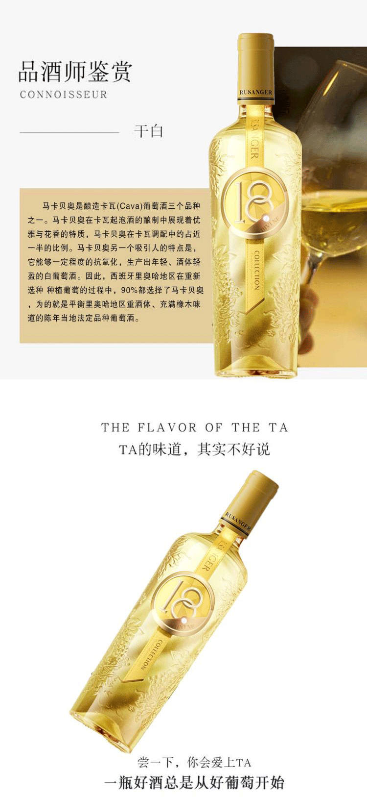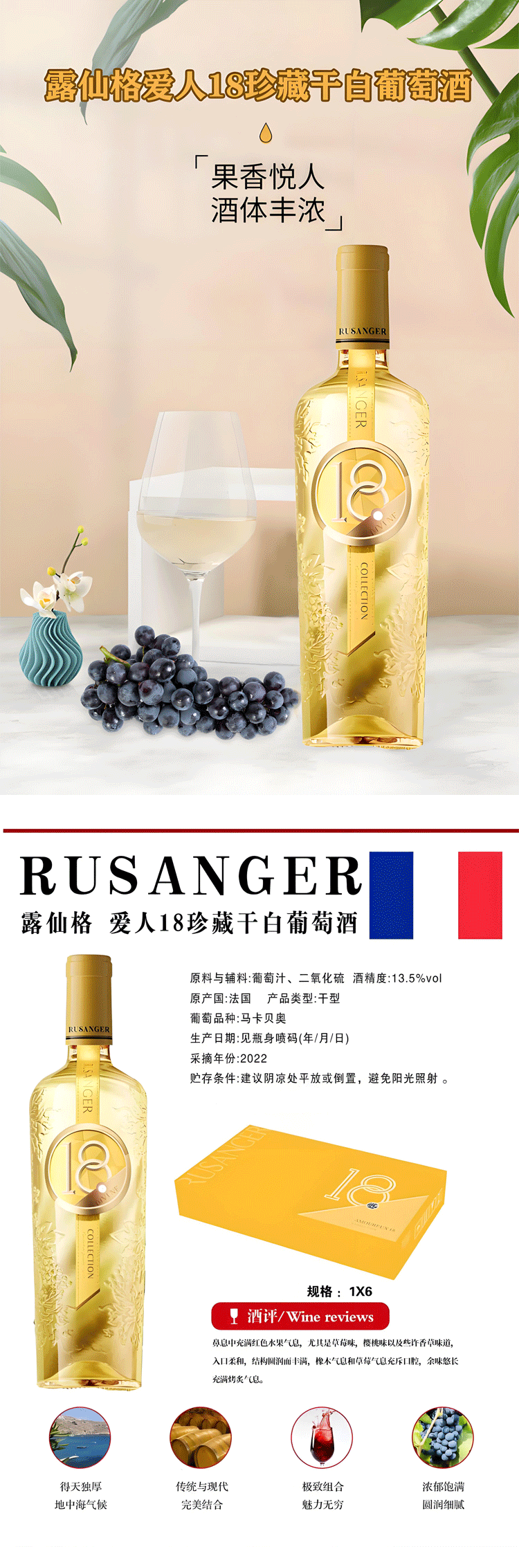 热卖中!!【法国原瓶进口】Rusanger露仙格·爱人18珍藏干白葡萄酒
