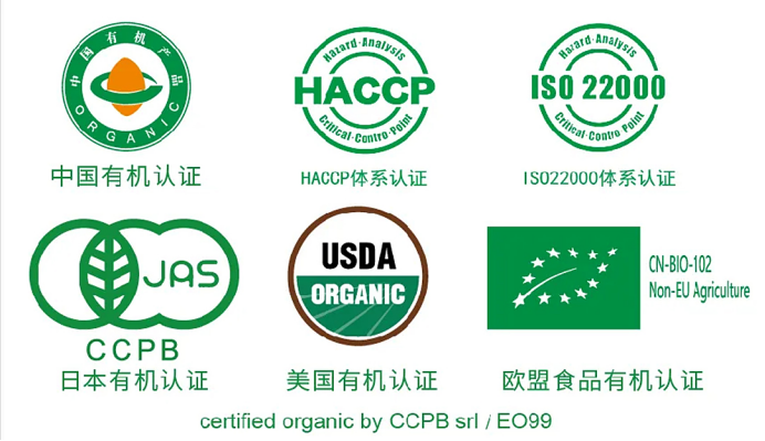 ●获得中国、欧盟、日本、美国、加拿大5重有机认证。