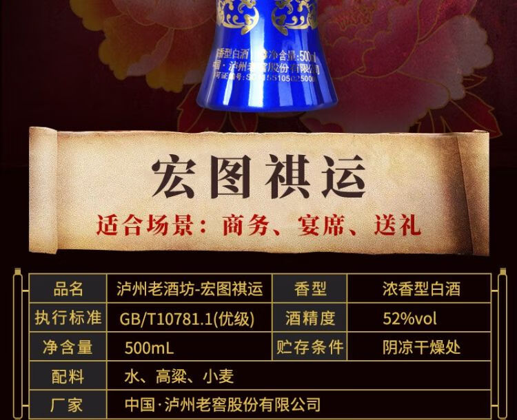 【2瓶】(千)泸州老窖52度老酒坊宏图祺运浓香白酒500ml 商品缩略图0 【2瓶】(千)泸州老窖52度老酒坊宏图祺运浓香白酒500ml 商品缩略图1 【2瓶】(千)泸州老窖52度老酒坊宏图祺运浓香白酒500ml 商品缩略图2