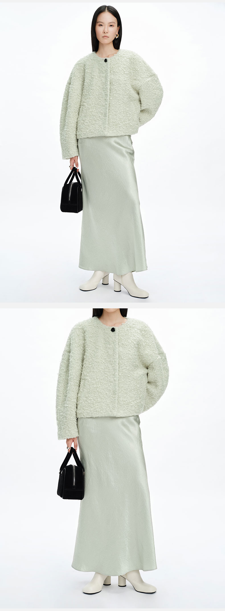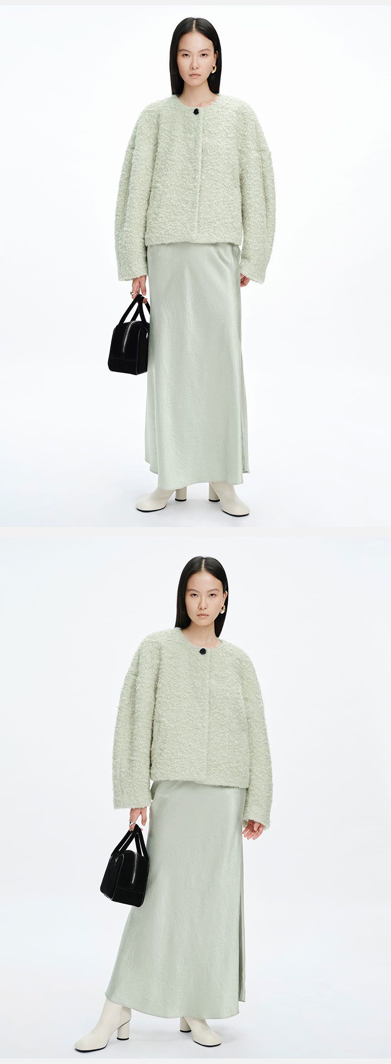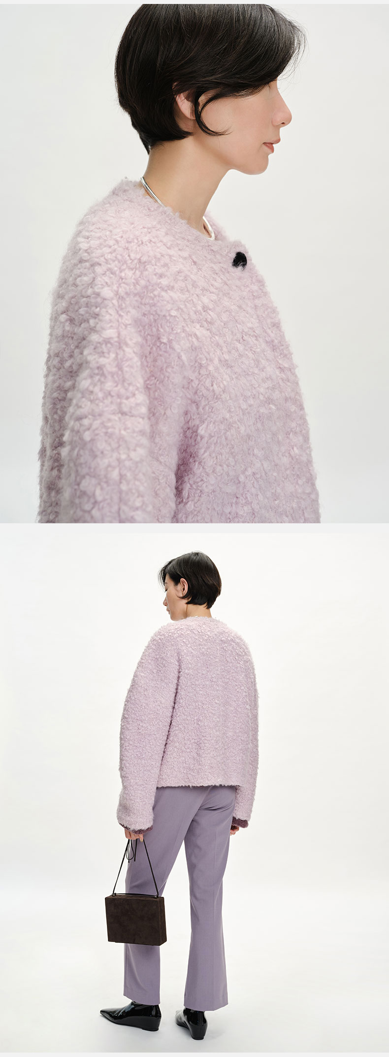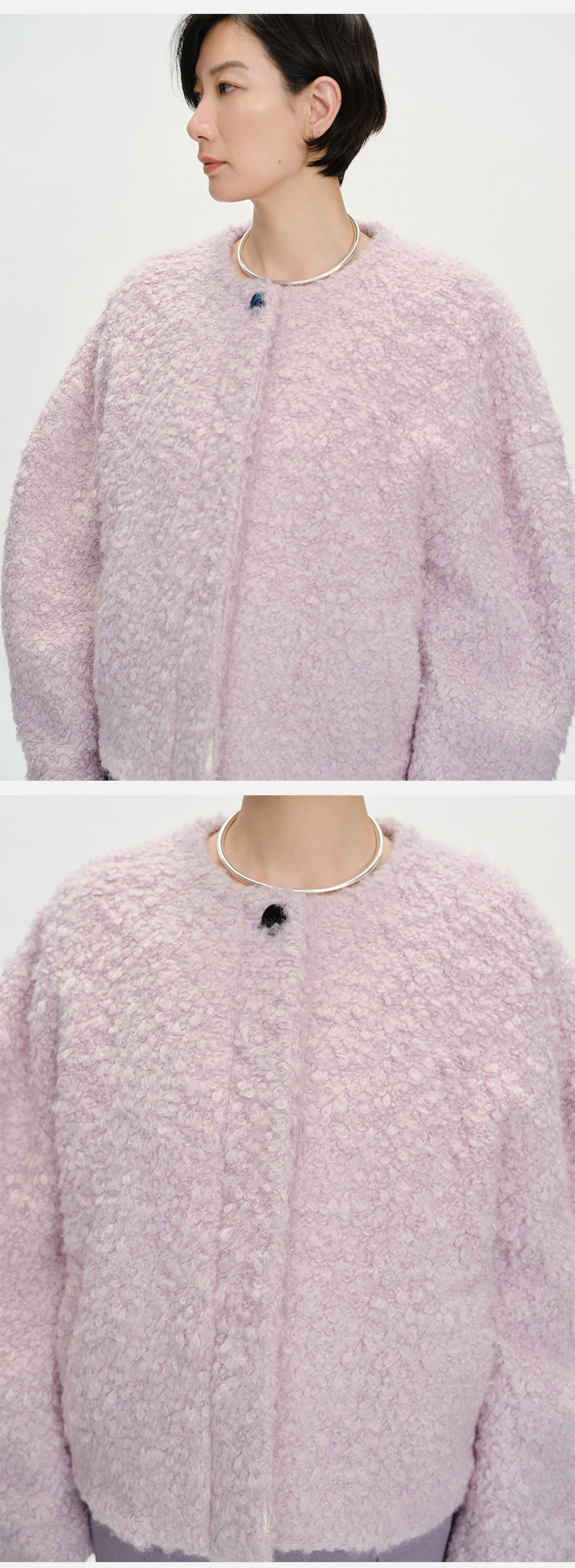 HIDEMI 圈圈马海毛廓形袖极简短大衣 水杉绿/浪漫紫