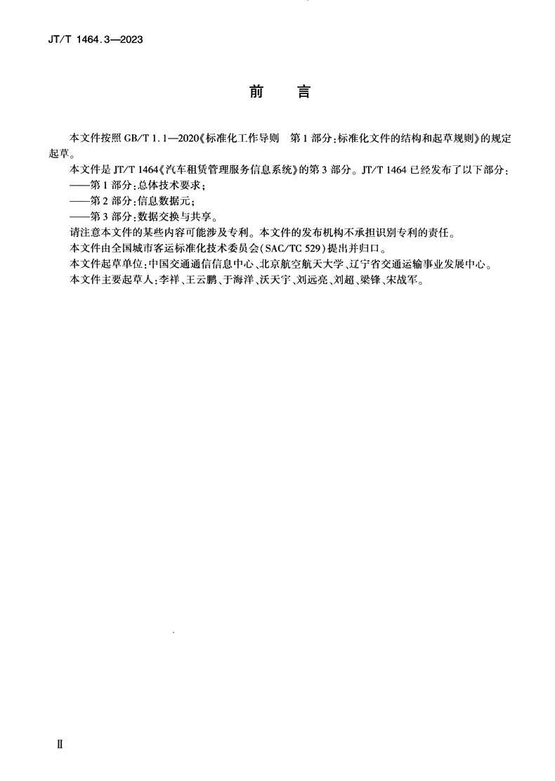 书名:汽车租赁管理服务信息系统 第3部分:数据交换与共享(JT/T 1464.3-2023)
