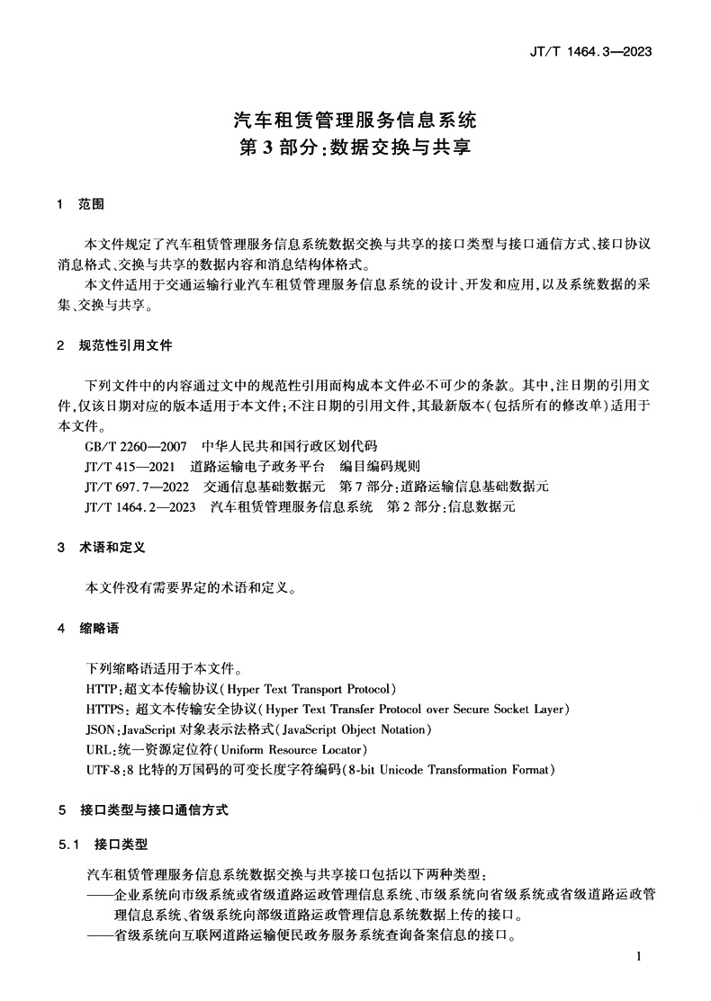 汽车租赁管理服务信息系统 第3部分:数据交换与共享(JT/T 1464.3-2023)