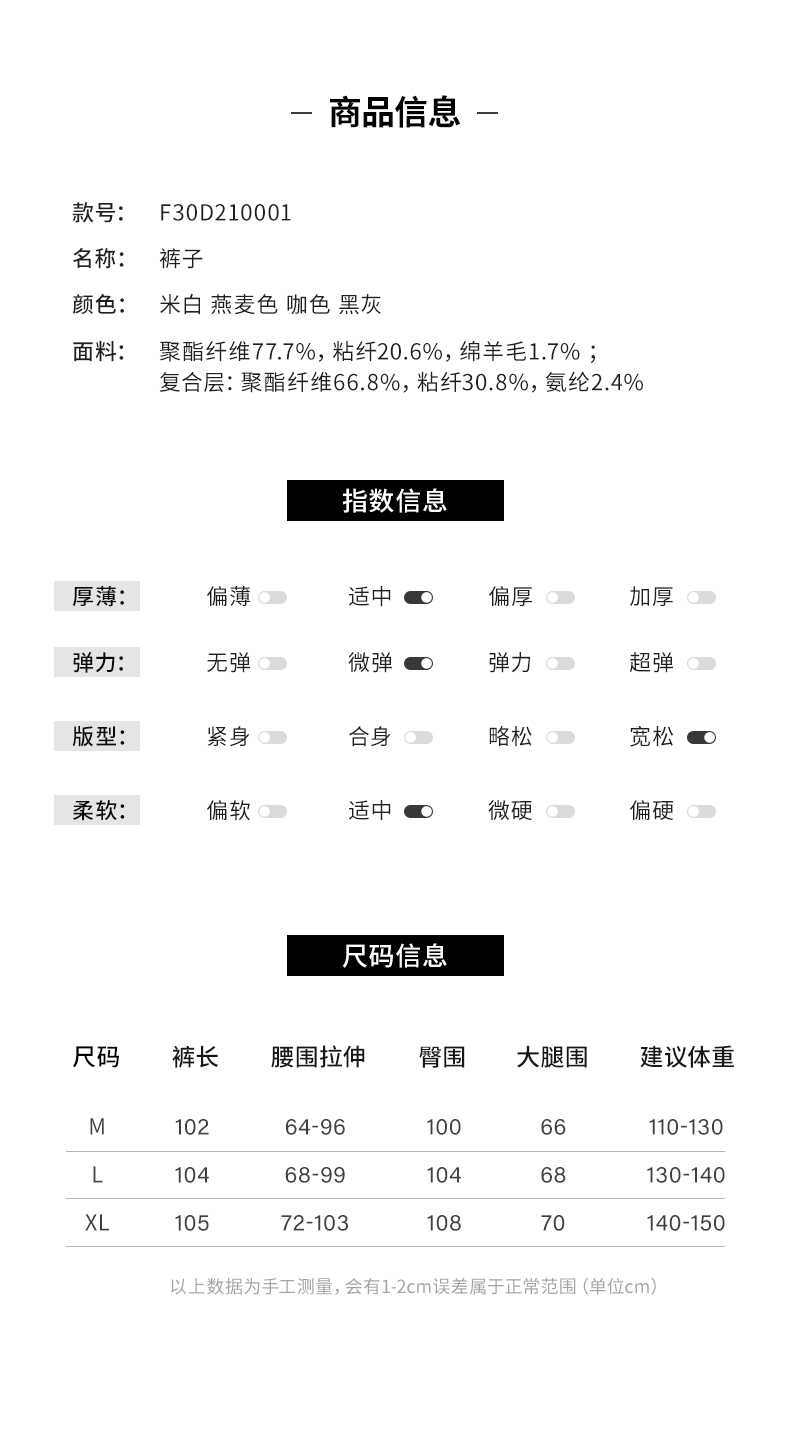 【轻盈舒适】阿菁娜绵羊毛镰刀阔腿裤F30D210001
