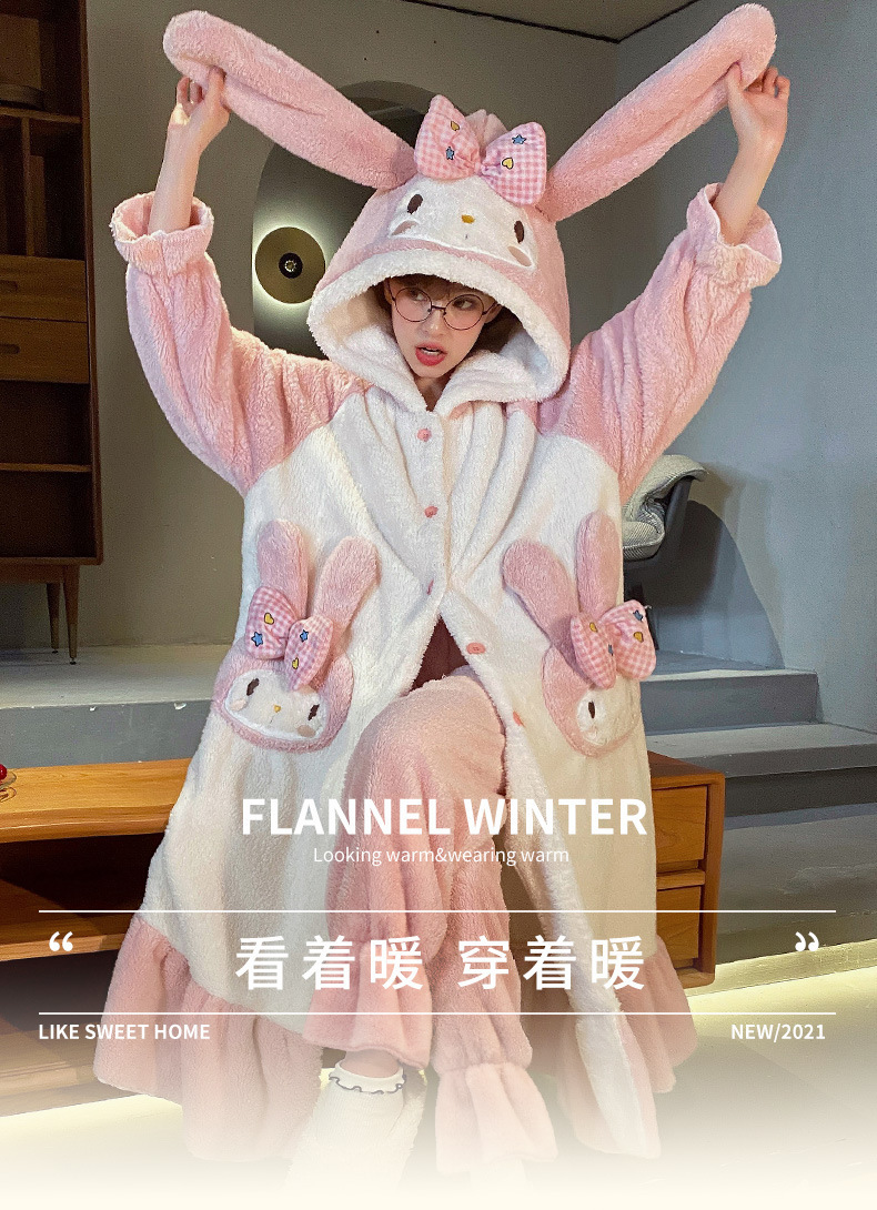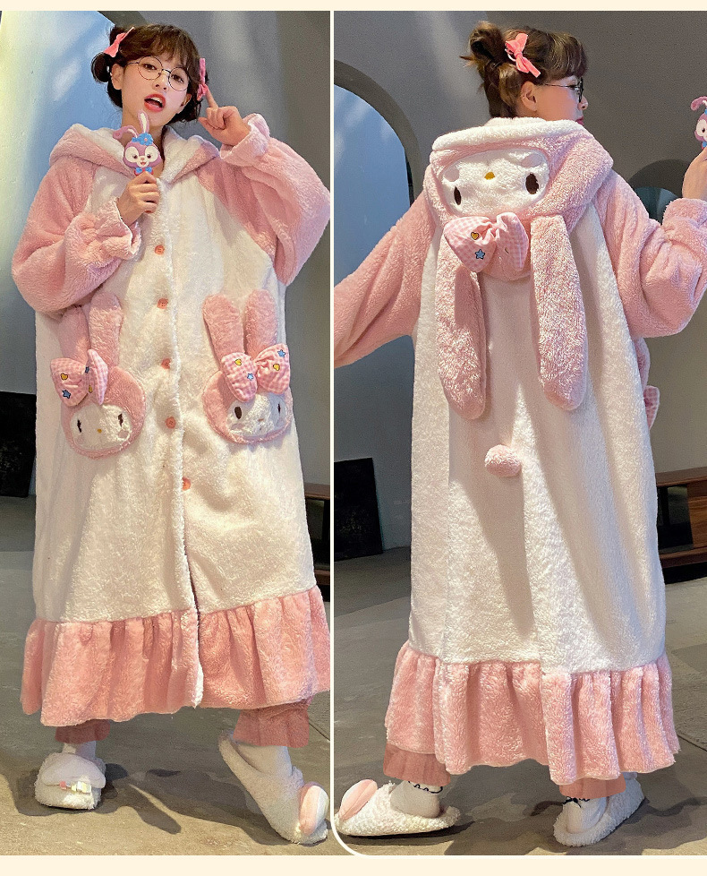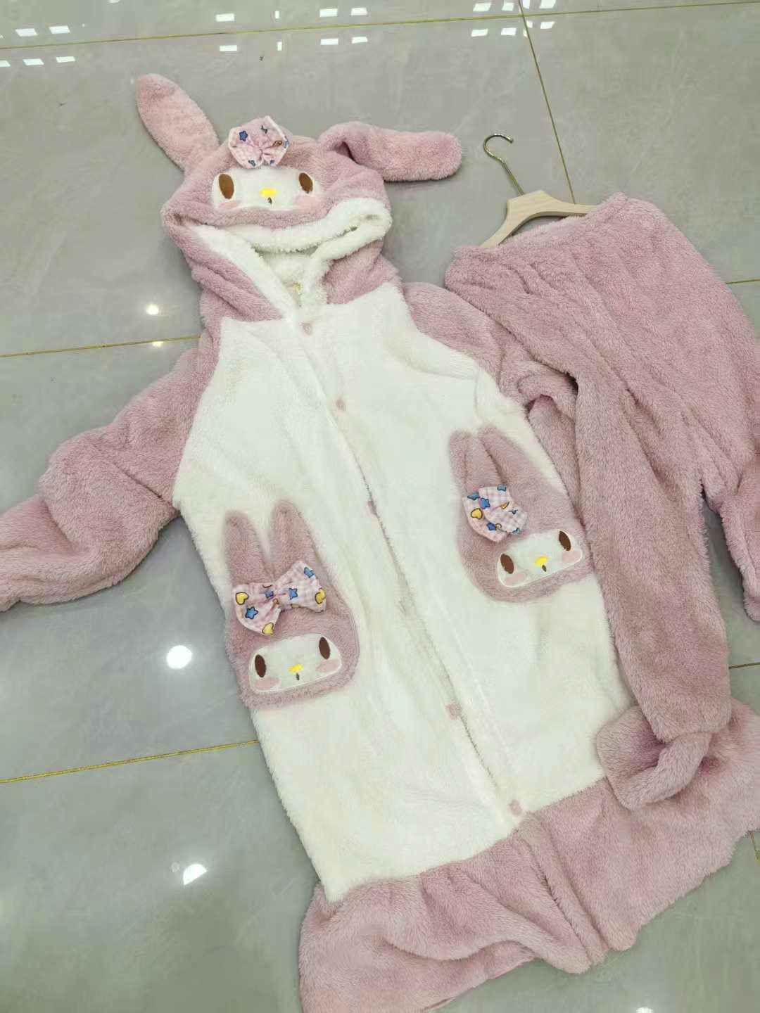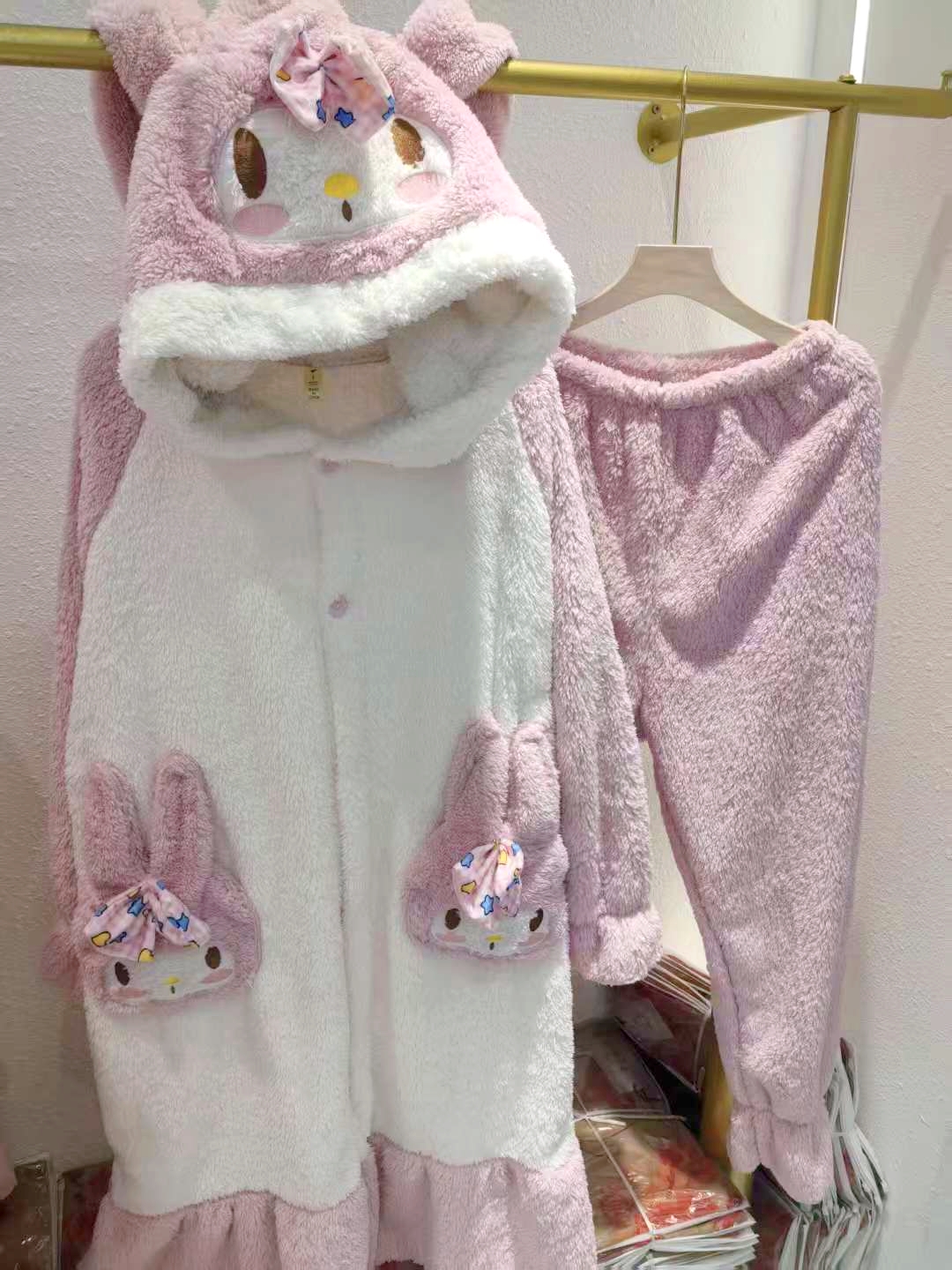 【YW】无忧购美乐蒂兔子法兰绒家居服开衫连帽睡袍睡裤套装(截单后3-5天发货)