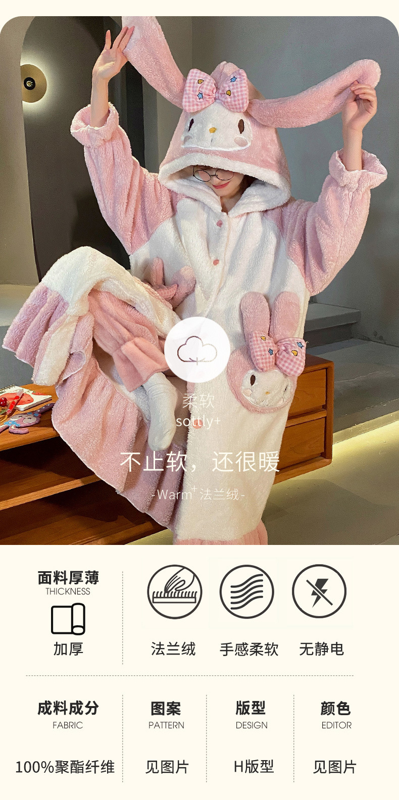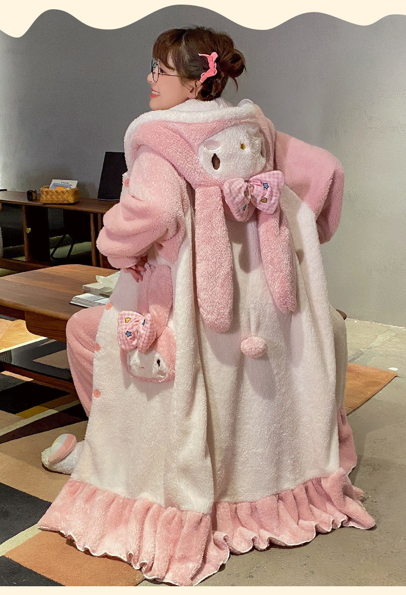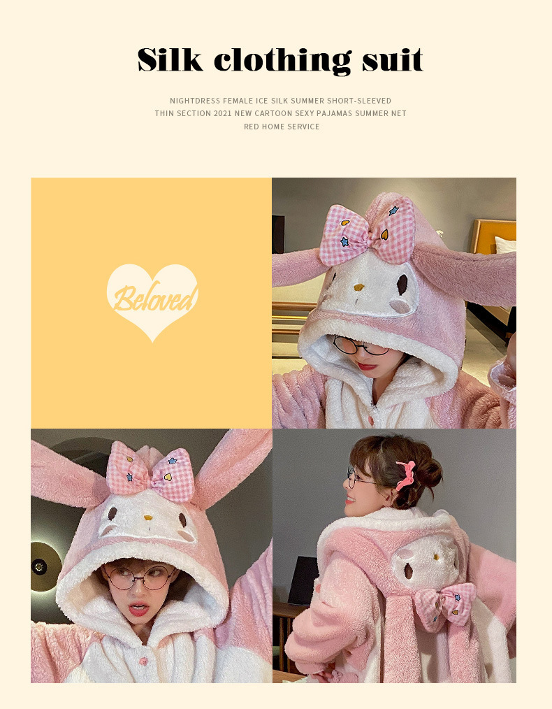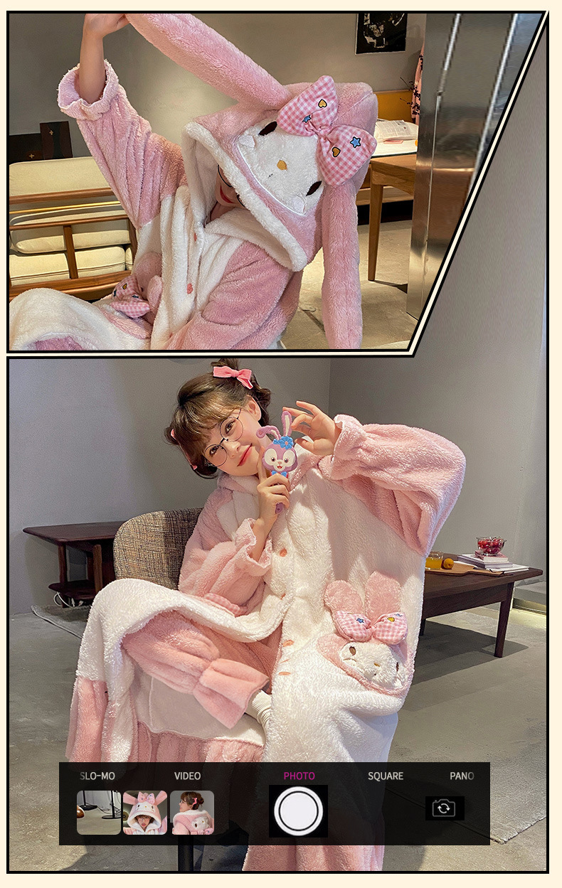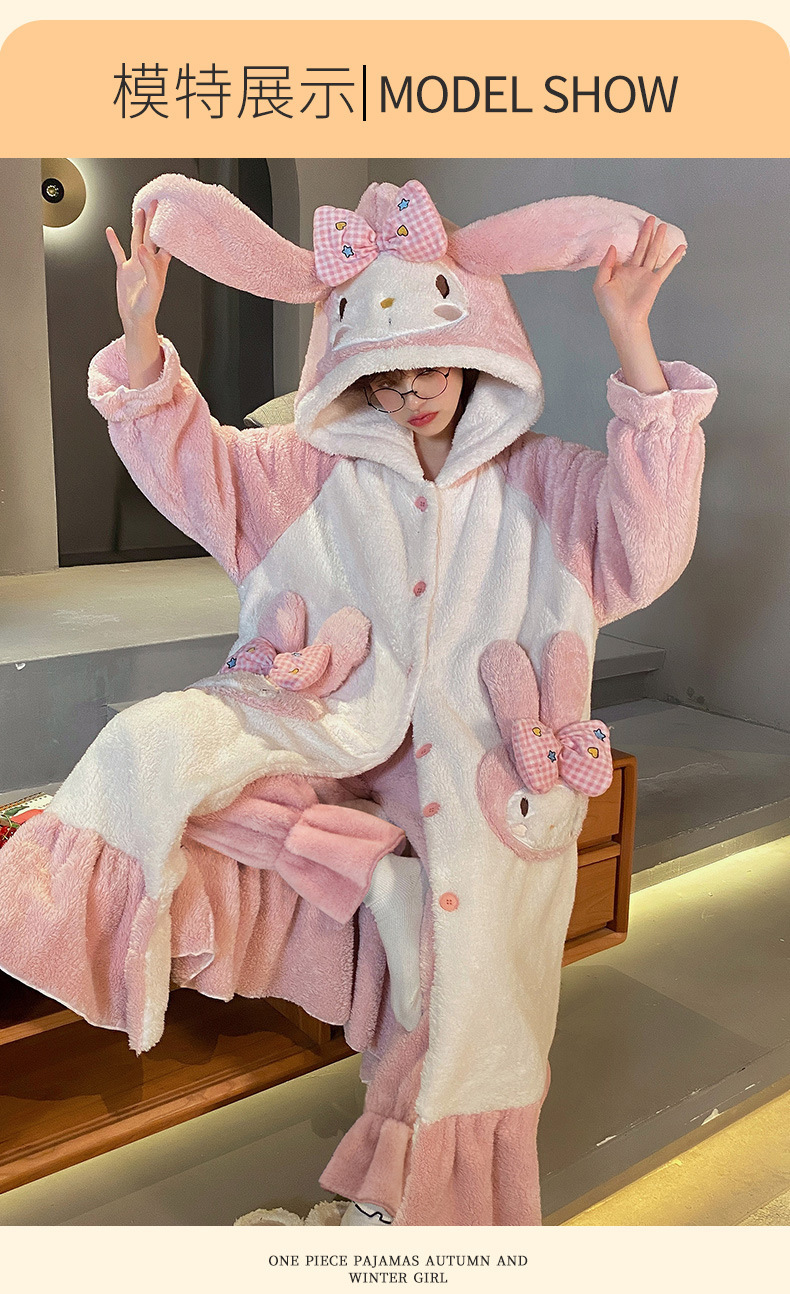 【YW】无忧购美乐蒂兔子法兰绒家居服开衫连帽睡袍睡裤套装(截单后3-5天发货)