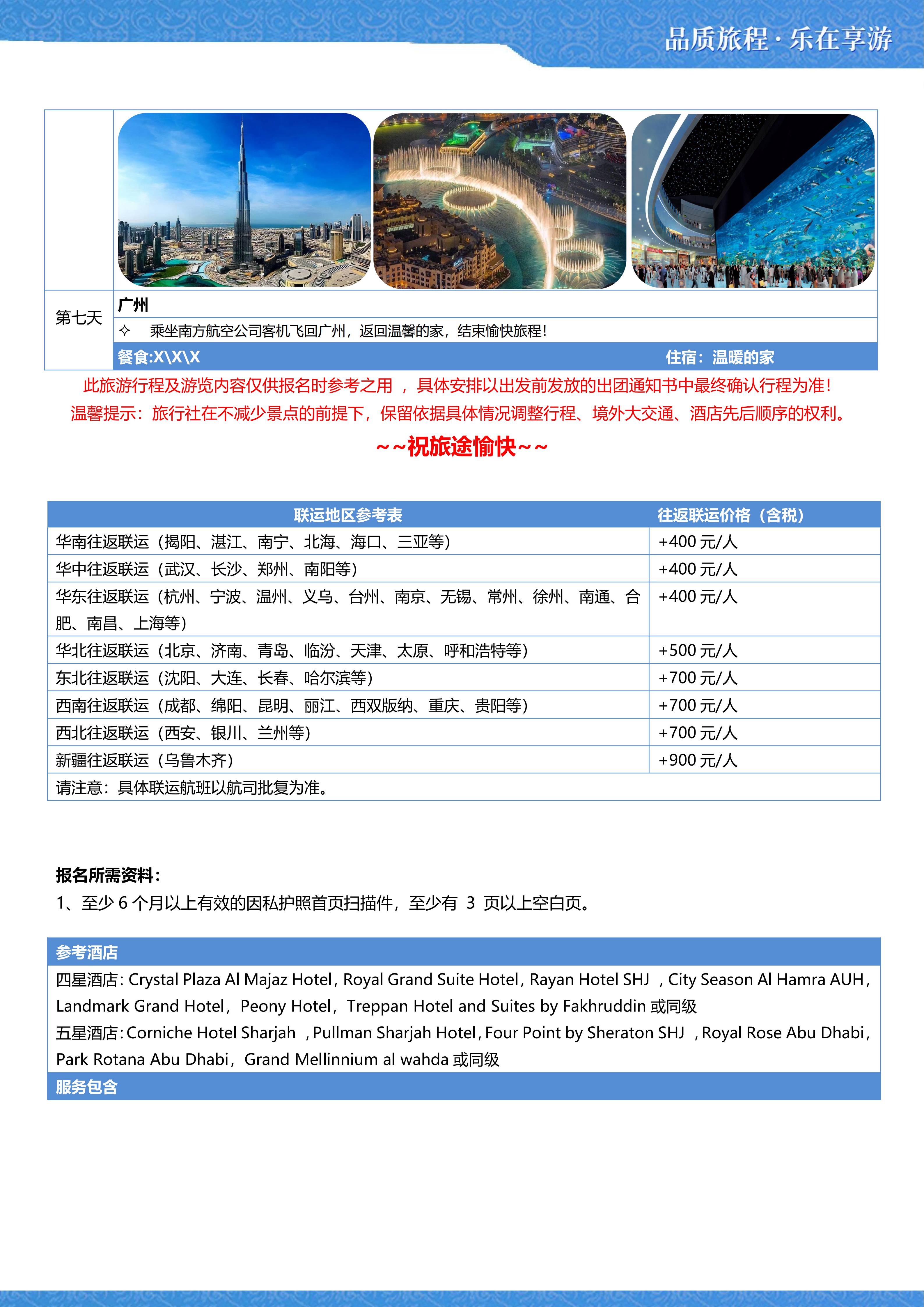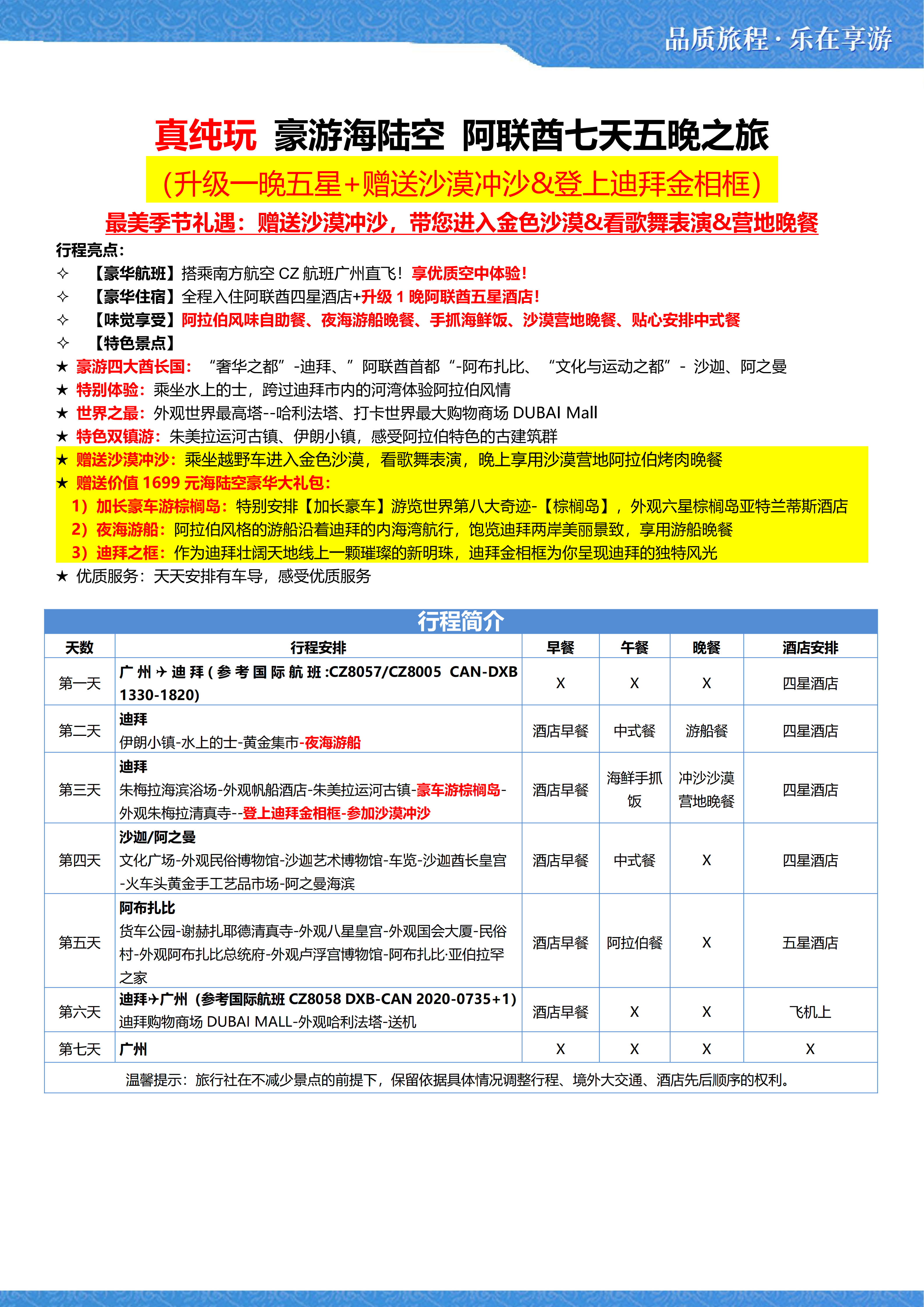 【阿联酋】豪游海陆空七天五晚之旅(广州往返)