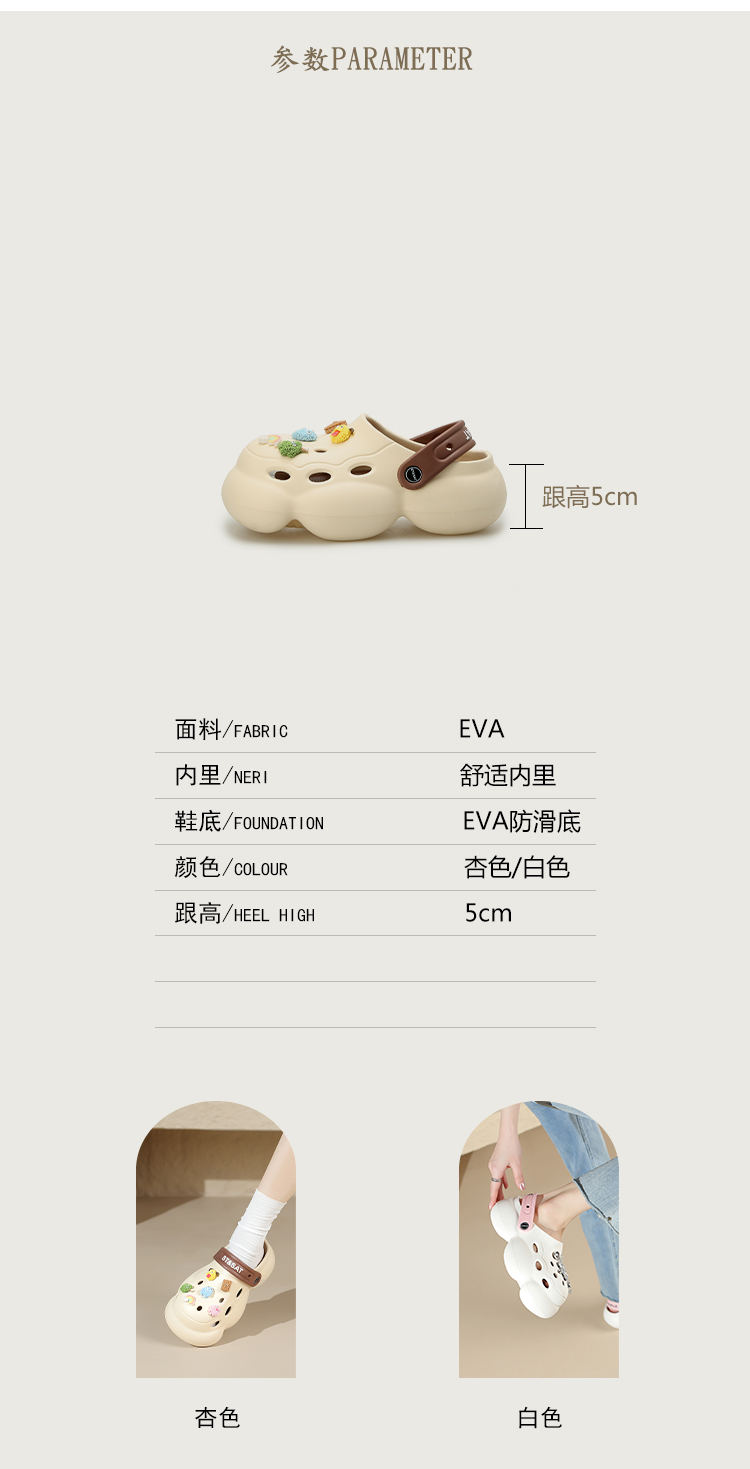 星期六软萌可爱云朵厚底增高洞洞鞋SSC21100YN