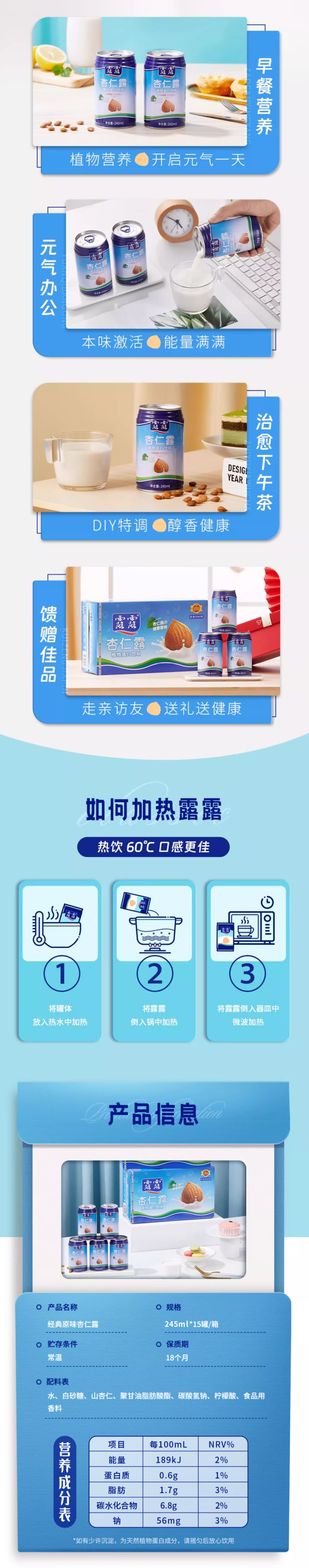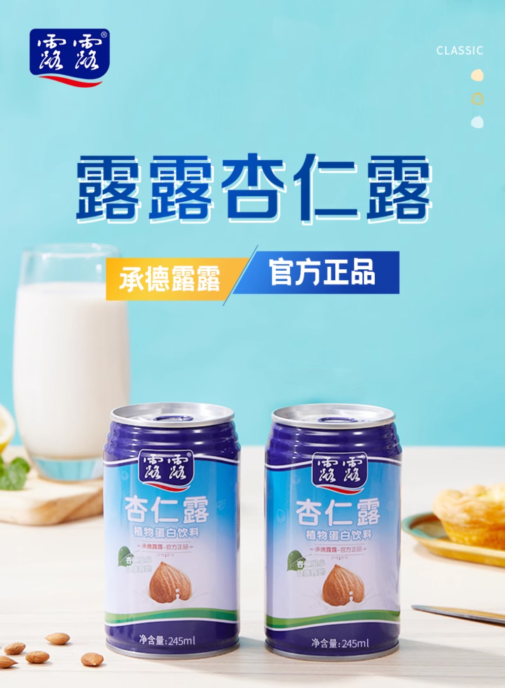 露露杏仁露经典原味罐装饮料杏仁植物蛋白饮品整箱装245ml*15罐