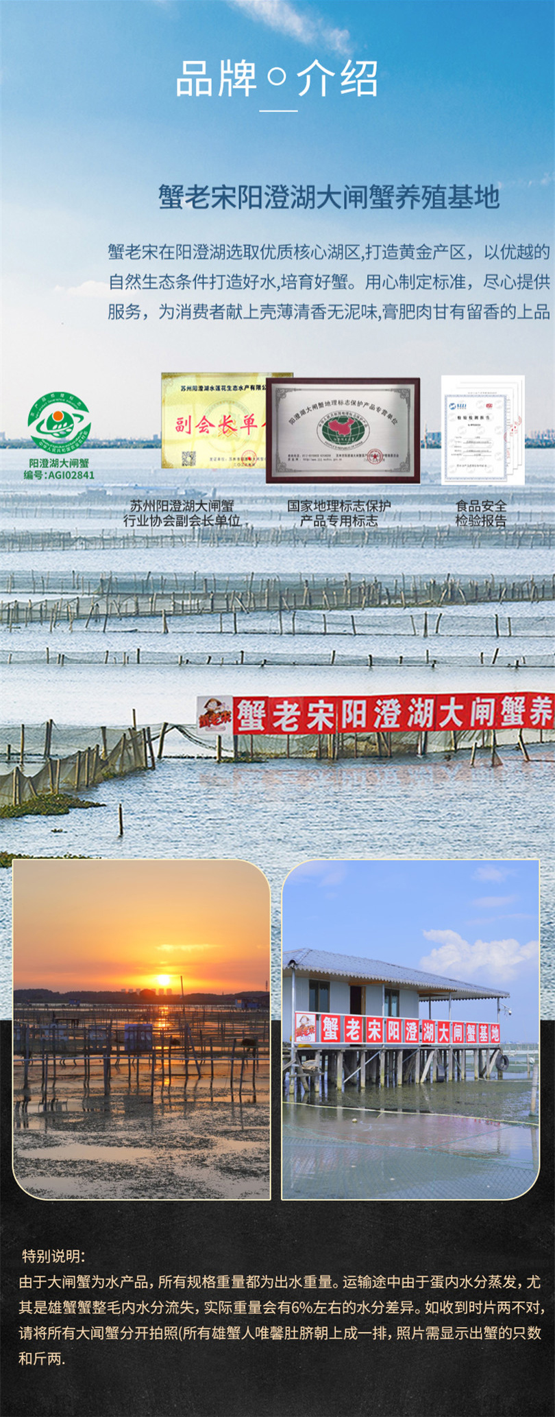 蟹老宋阳澄优礼大闸蟹券199型 6只(雄蟹3.0两/只 雌蟹2.0两/只)【包邮直发】(ZB)