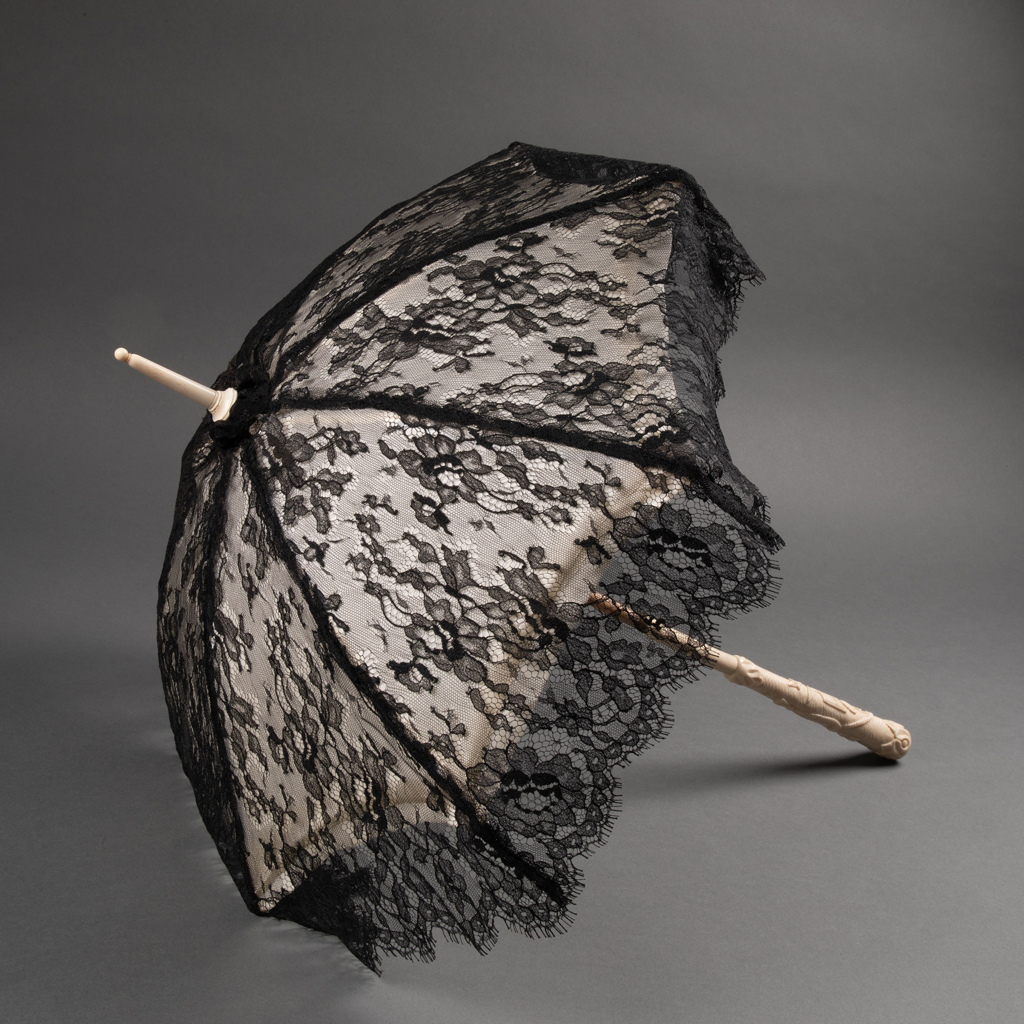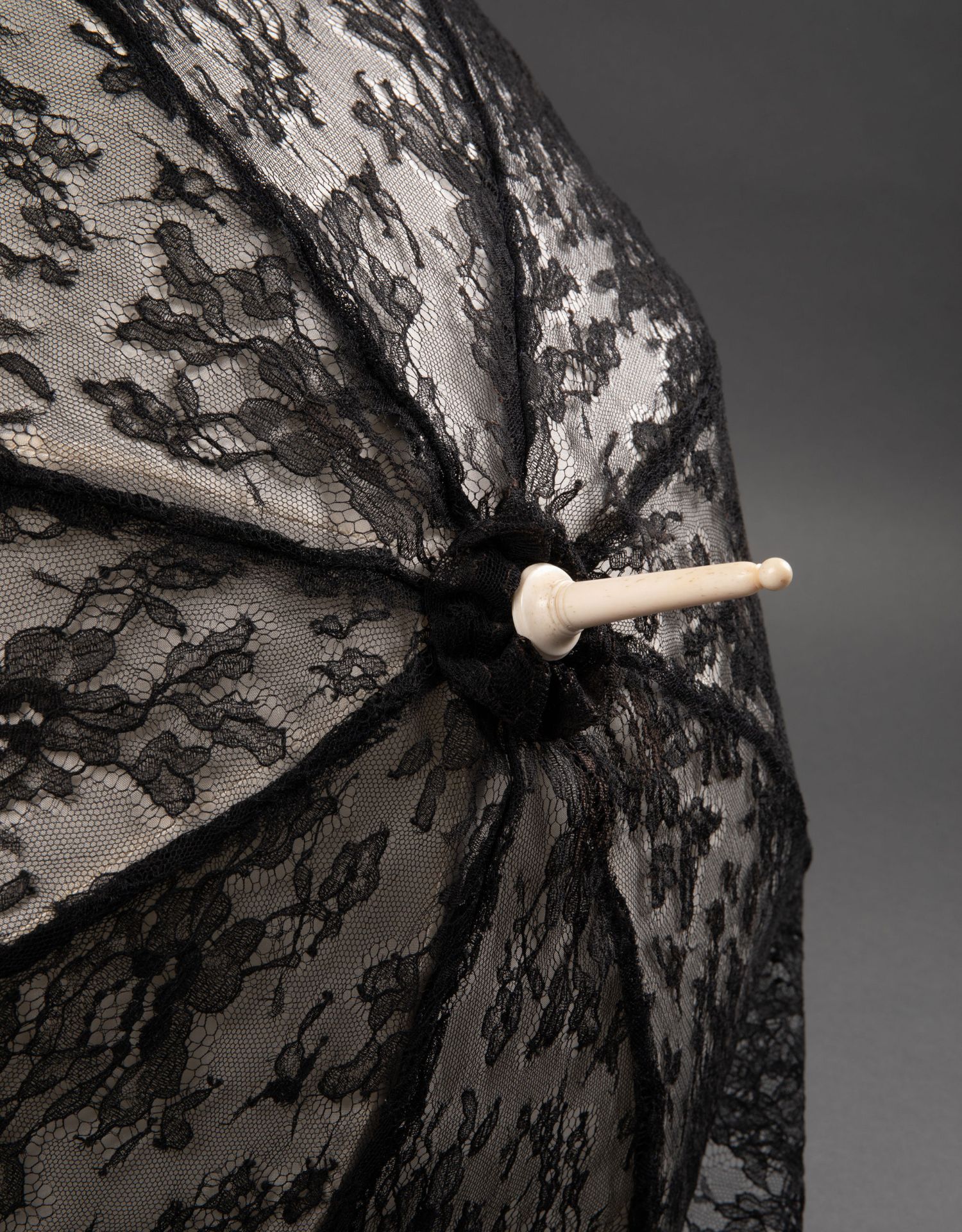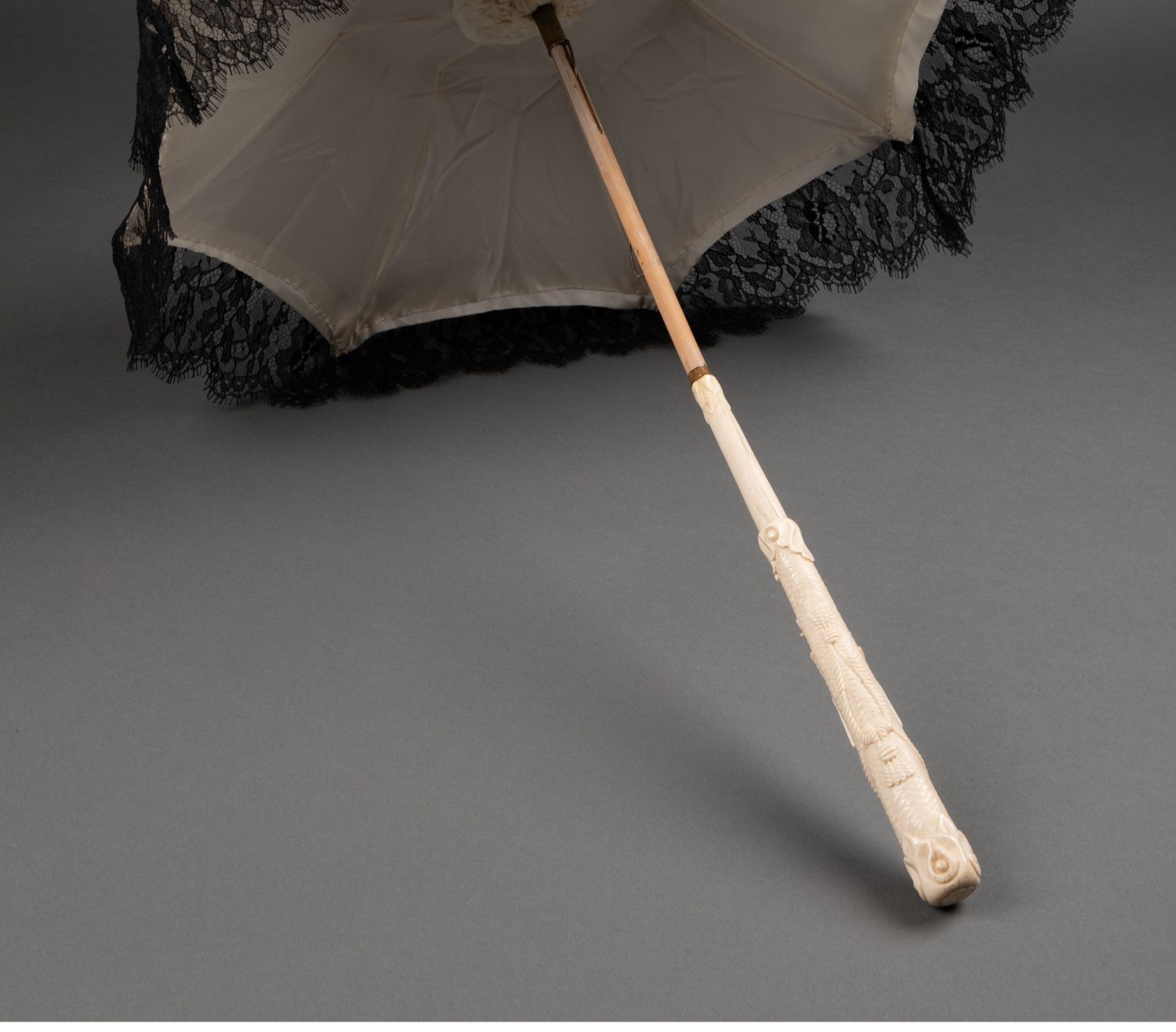独角鹿西洋古董法国牛骨伞柄黑色尚蒂依蕾丝丝绸伞面古典淑女阳伞
