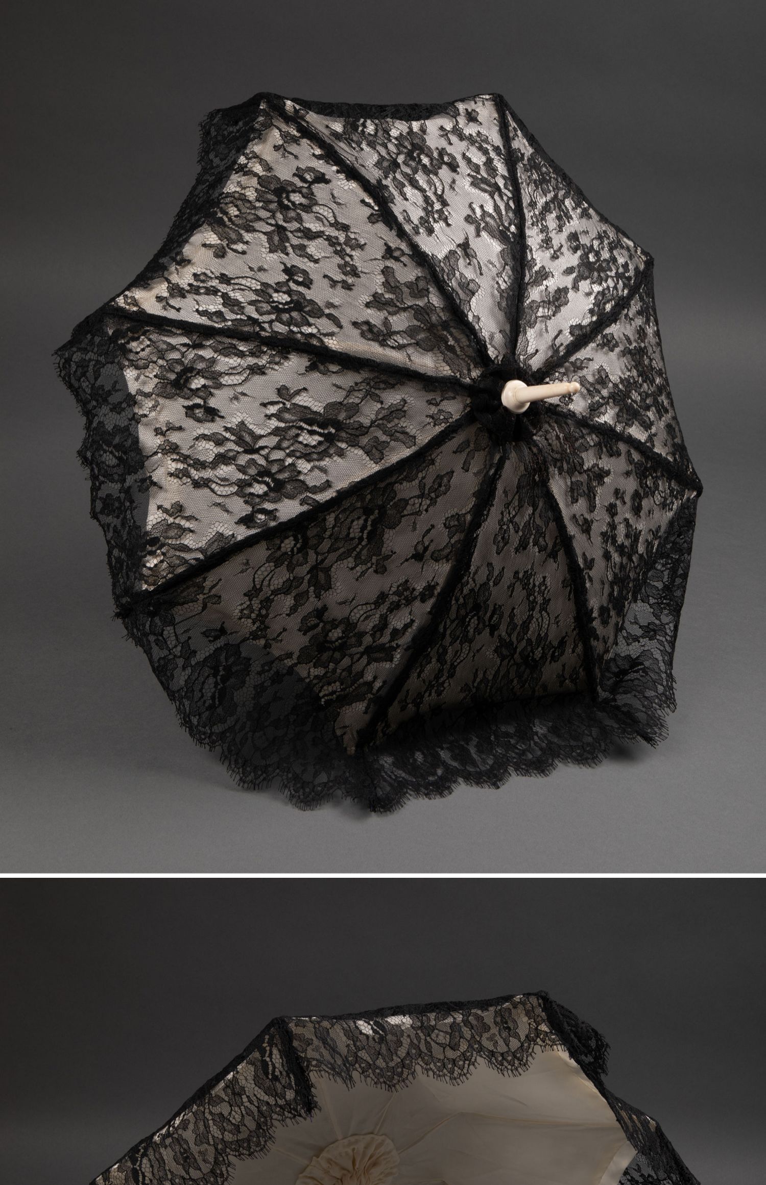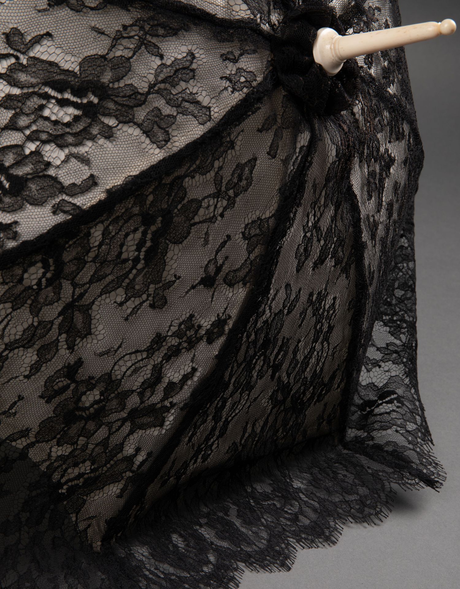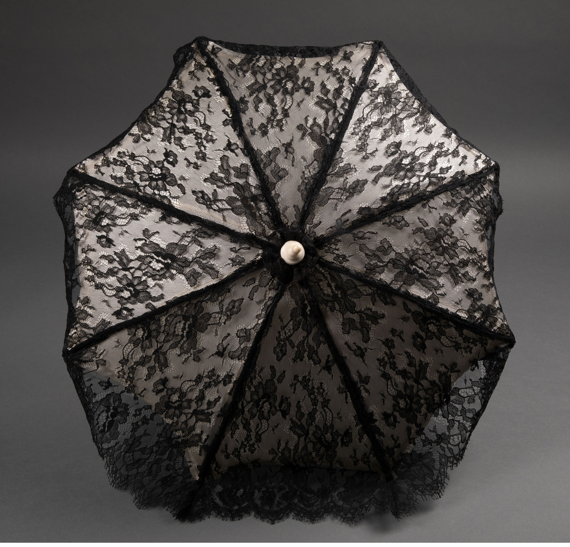 独角鹿西洋古董法国牛骨伞柄黑色尚蒂依蕾丝丝绸伞面古典淑女阳伞