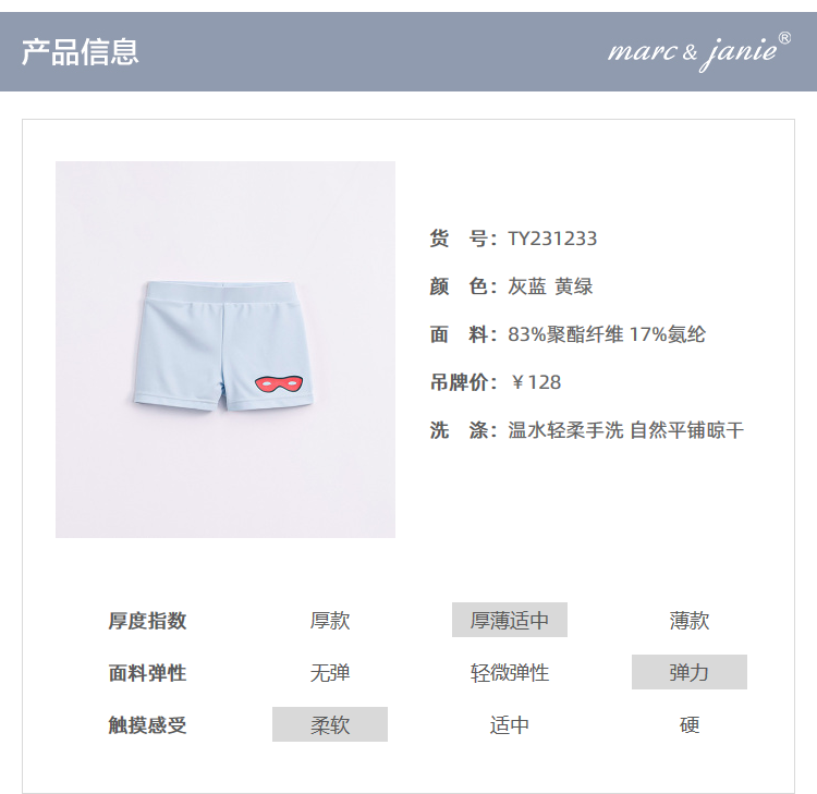 【凉感防晒】马克珍妮夏装 男童平角泳裤 儿童舒适游泳短裤231233