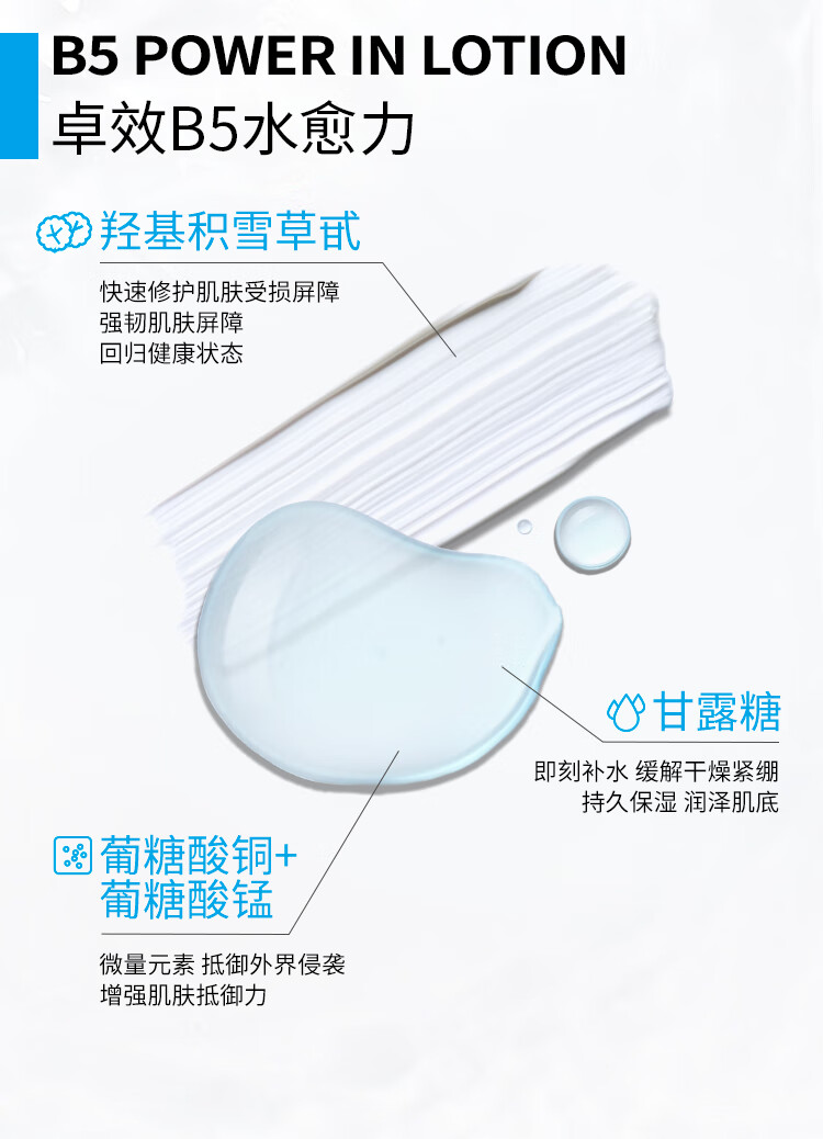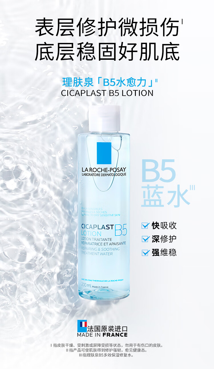 理肤泉B5修复水蓝水200ml 积雪草补水保湿维稳舒缓爽肤水男女面部护肤品