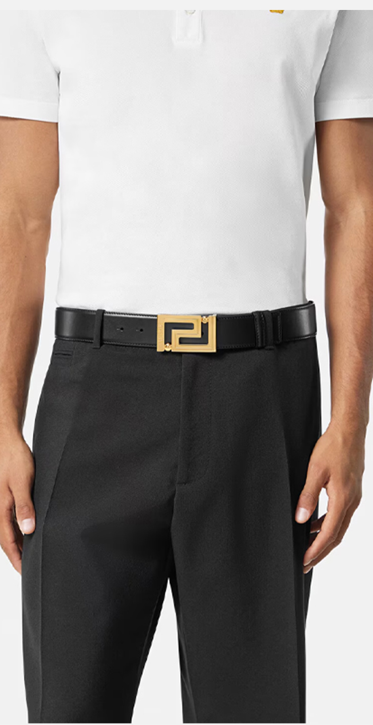 VERSACE 范思哲 男士希腊回纹皮革腰带 黑色 1013861 DVTP1 1B00V