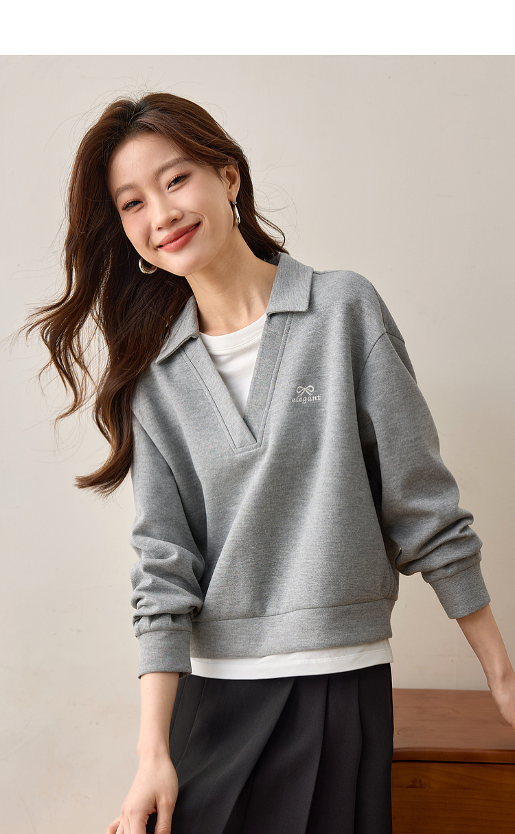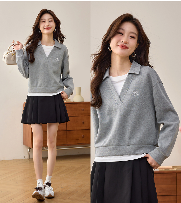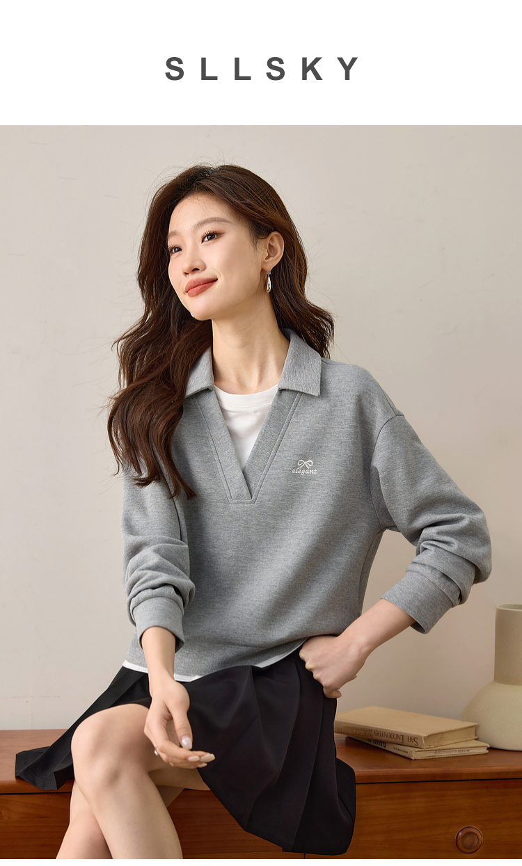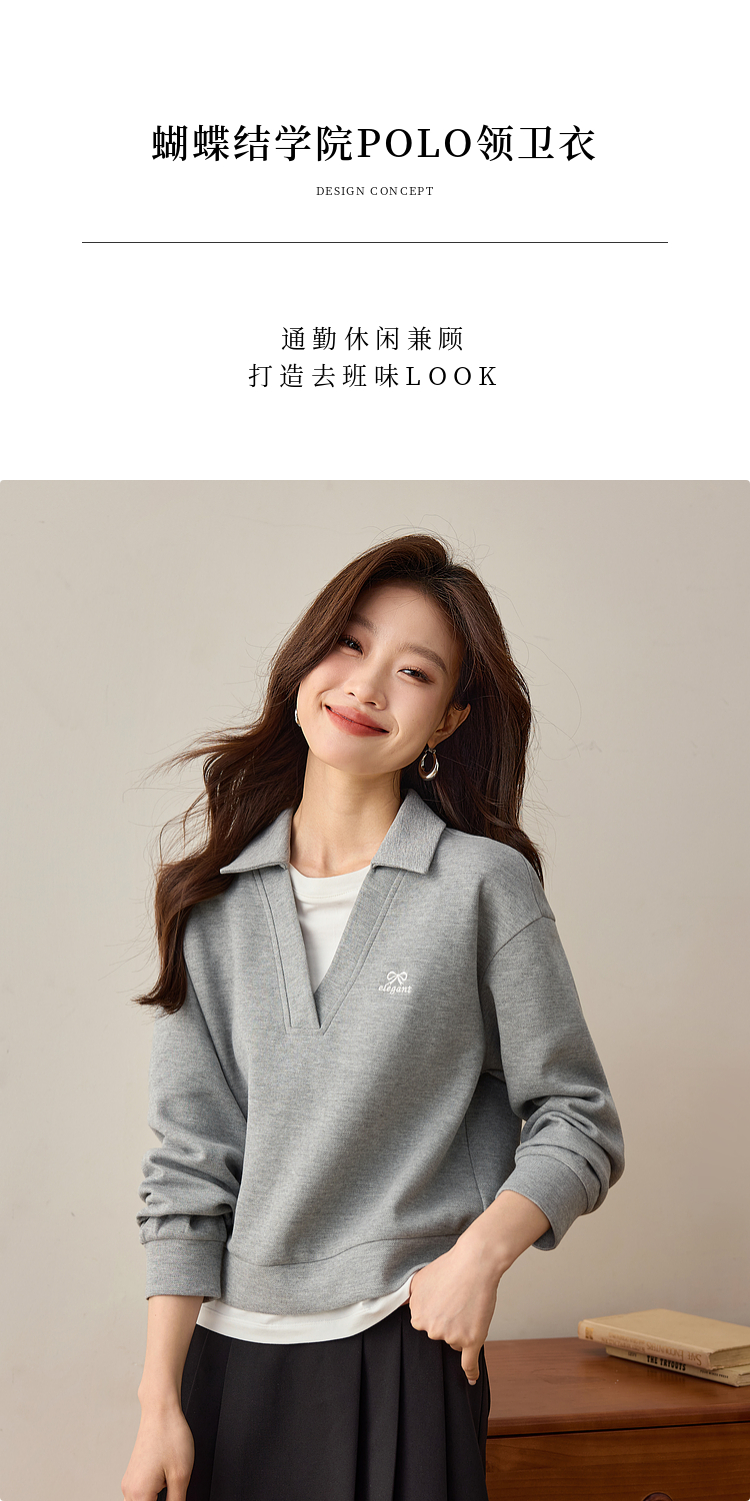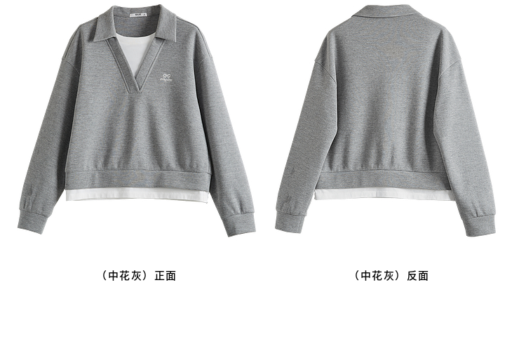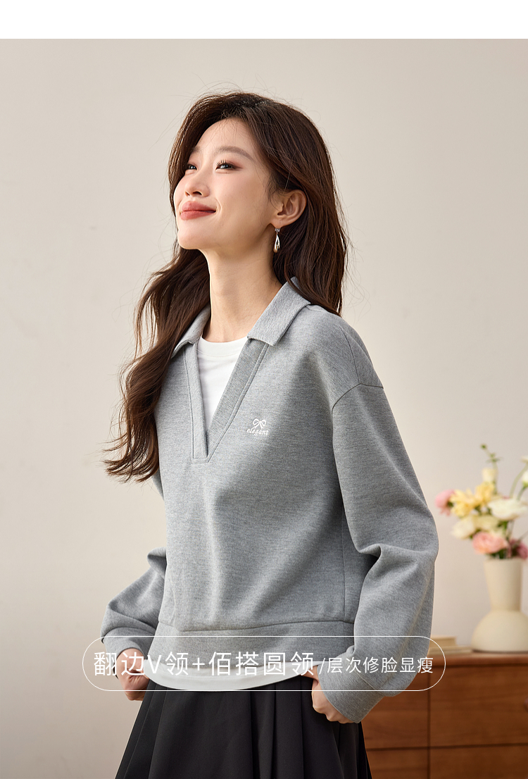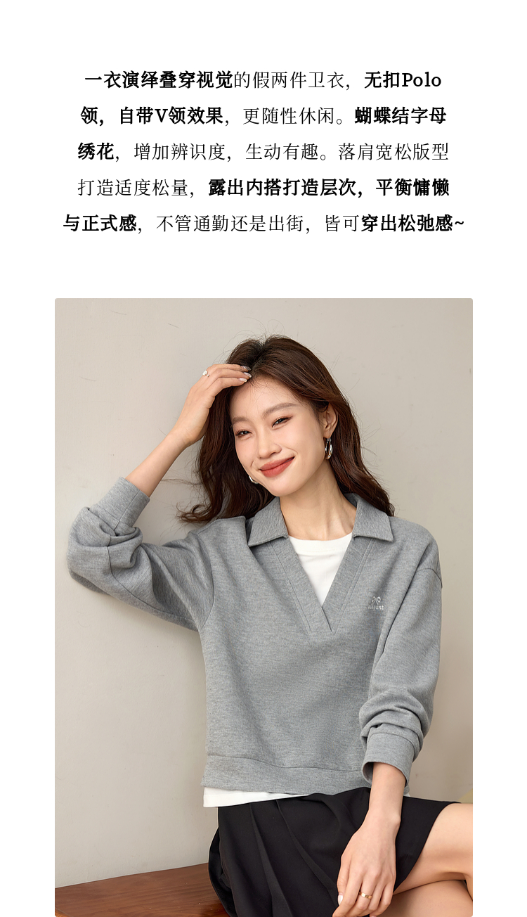 【年终特卖】熙世界2025春秋新款学院风假两件卫衣女宽松休闲套头拼接翻领上衣