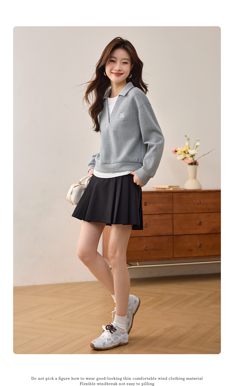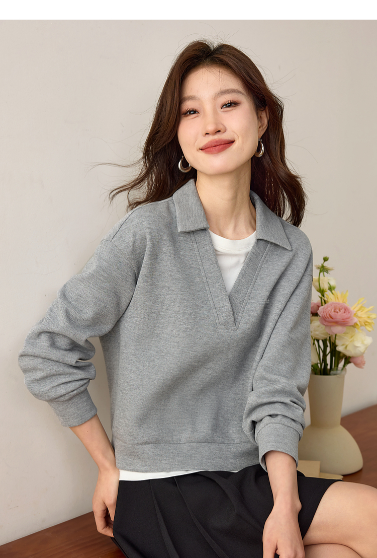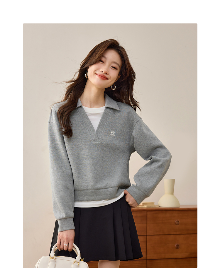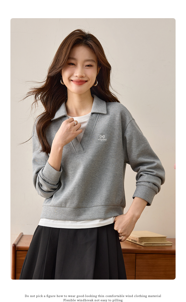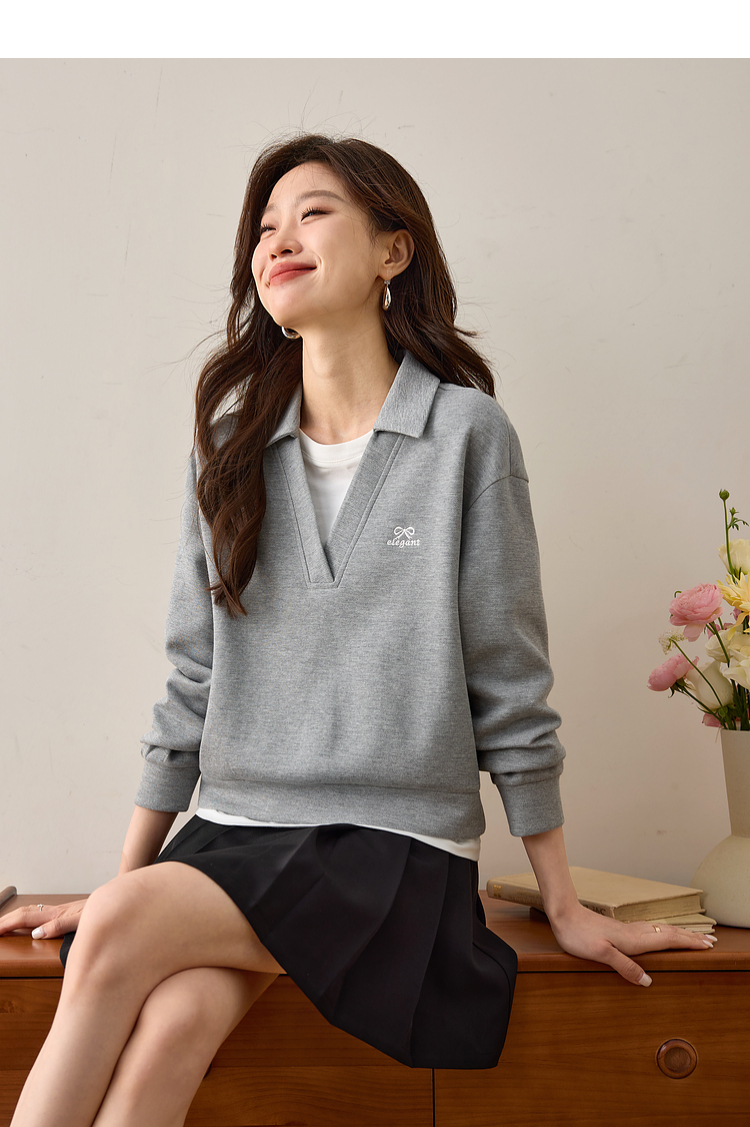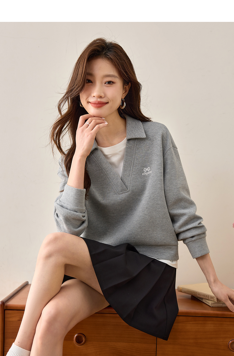 【年终特卖】熙世界2025春秋新款学院风假两件卫衣女宽松休闲套头拼接翻领上衣