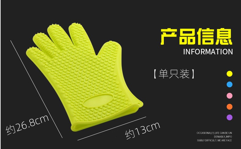 硅胶五指手套1入 【单只装】厨房防烫隔热手套 烘焙隔热手套 多色可选