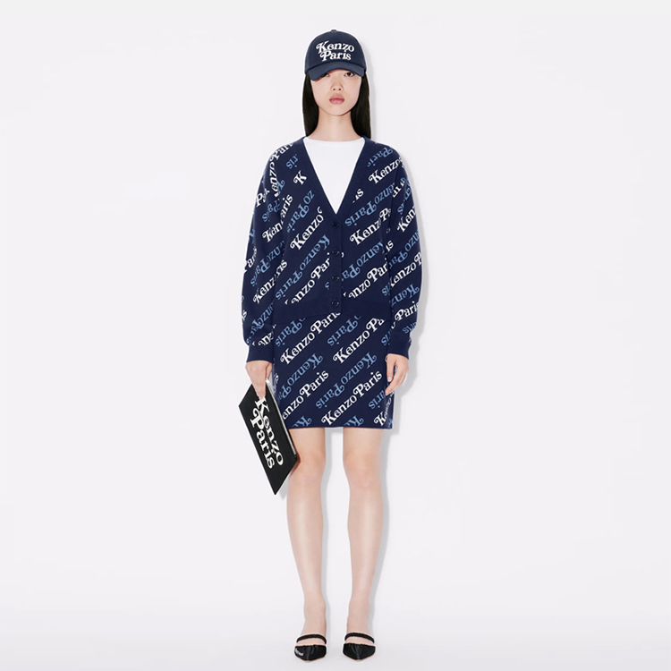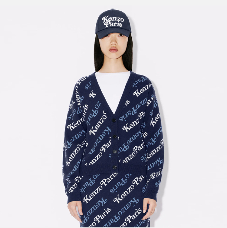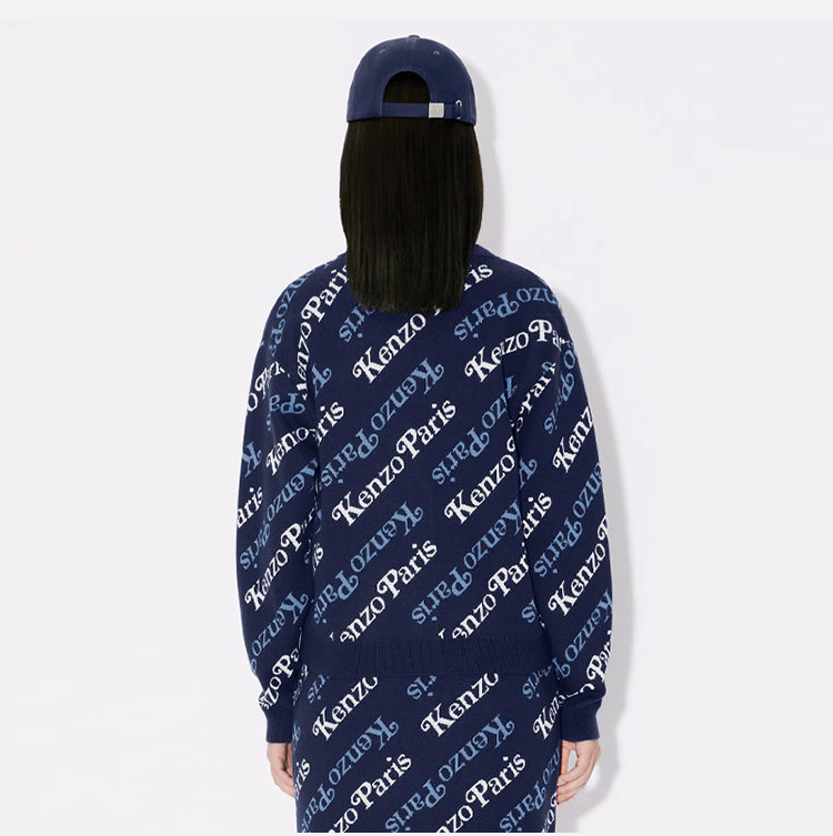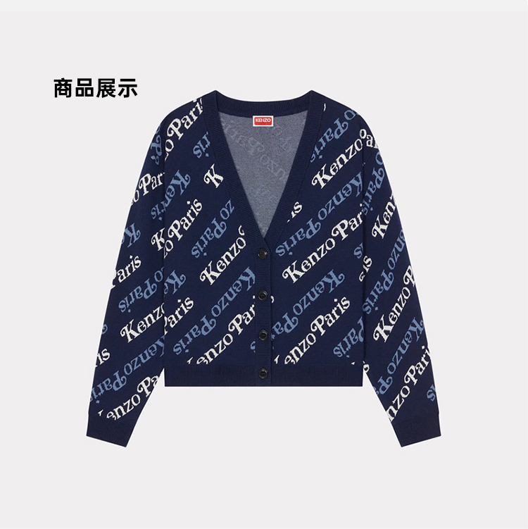 KENZO 高田贤三 女士字母徽标提花混纺羊毛长袖针织开衫 蓝色 FE52 CA460 3CB 77