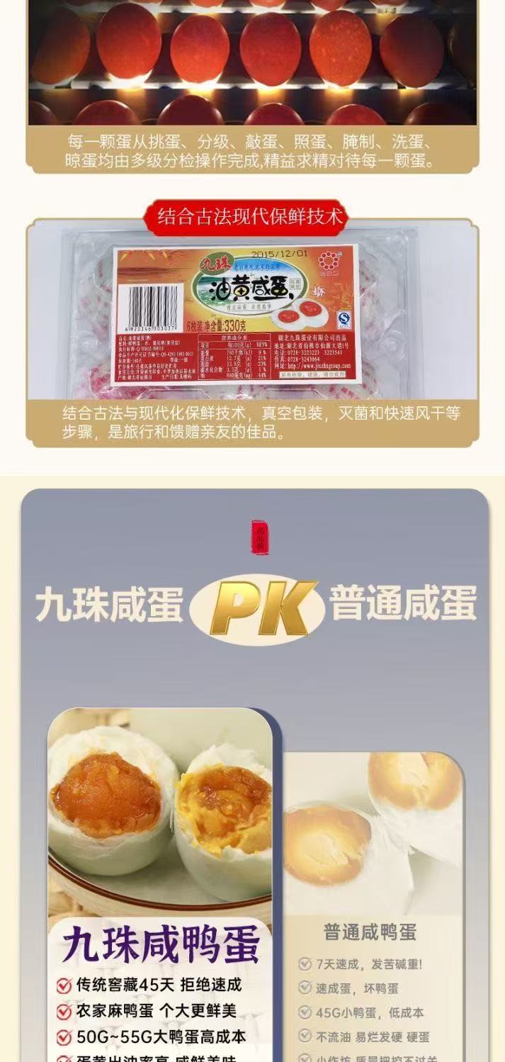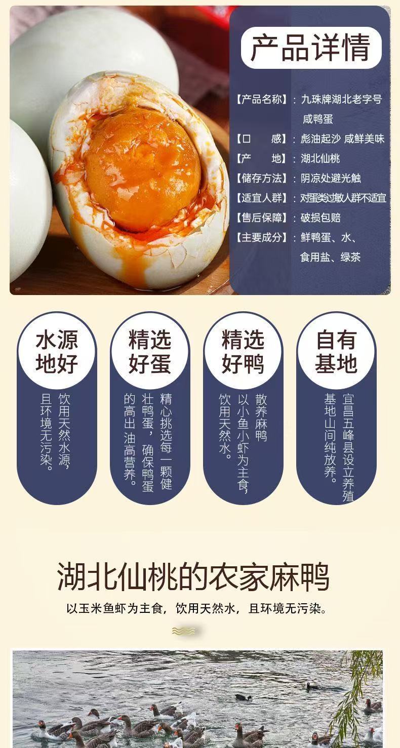 【严选】【九珠】熟咸鸭蛋红心流油熟咸鸭蛋6枚/10枚/20枚(单枚50克-60克)(厂家直发)