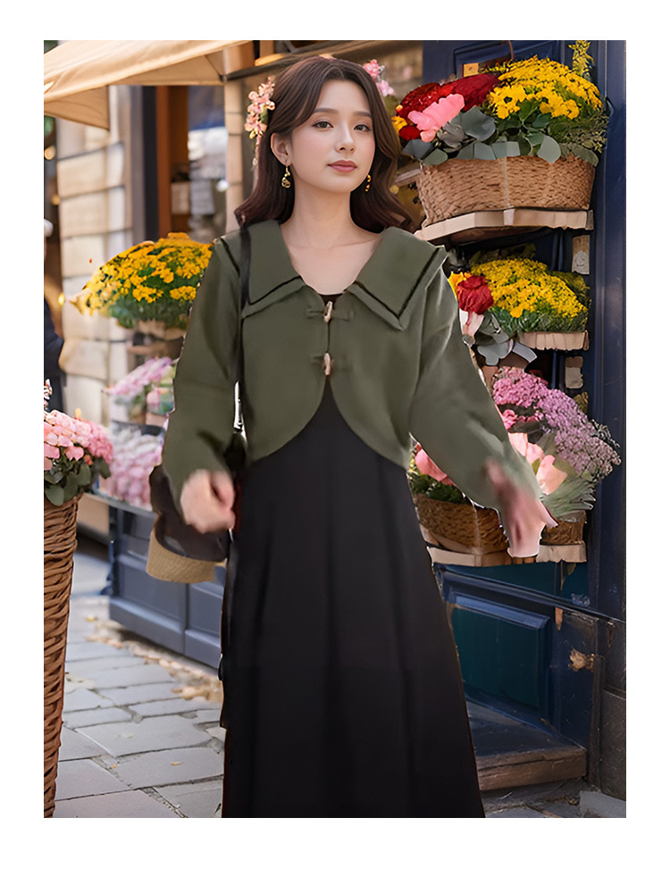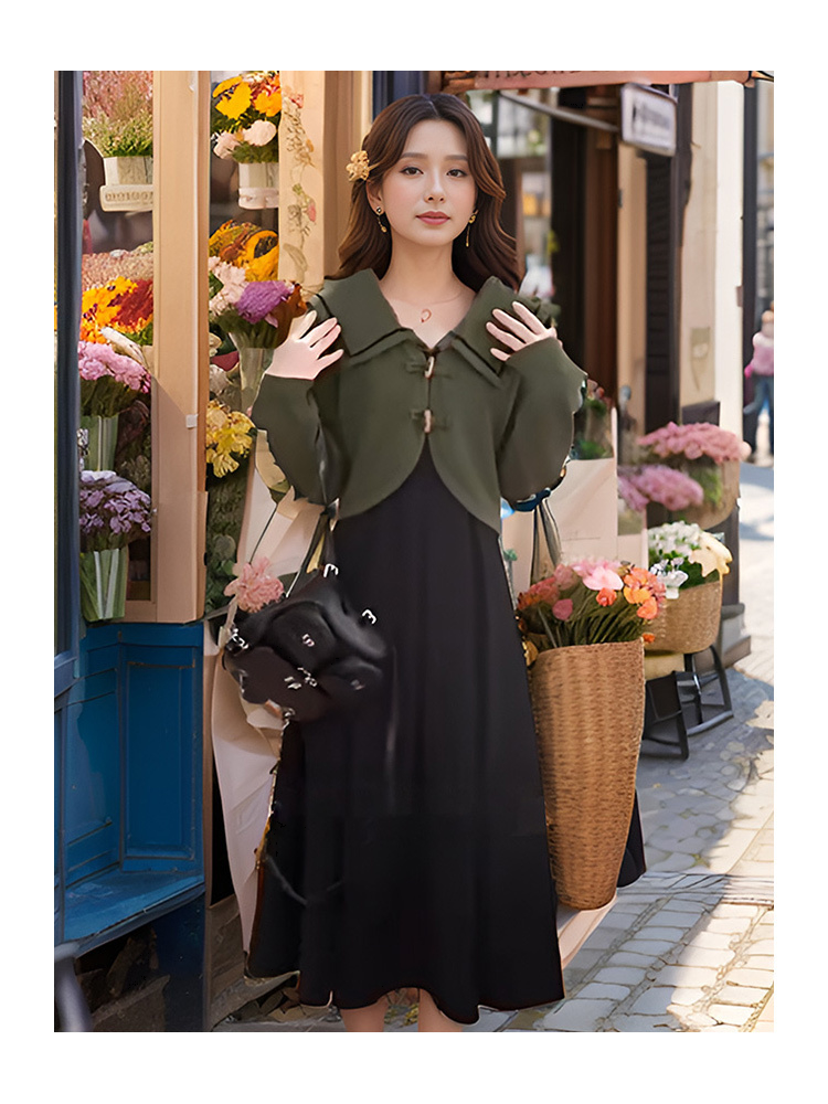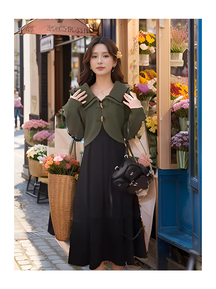 9/8奢姿大码女装2024秋季针织V领外套吊带裙两件套胖妹妹时尚套装9943991304