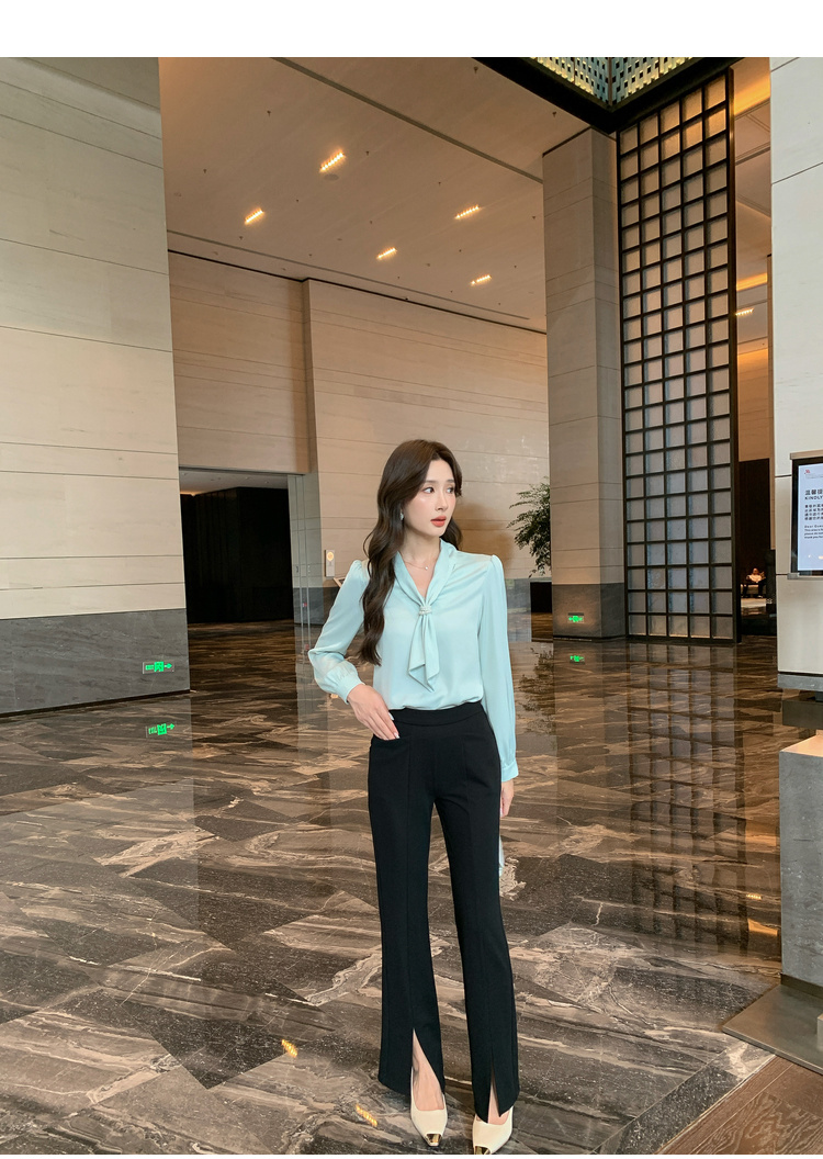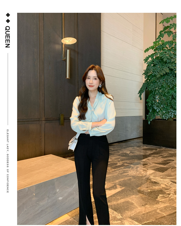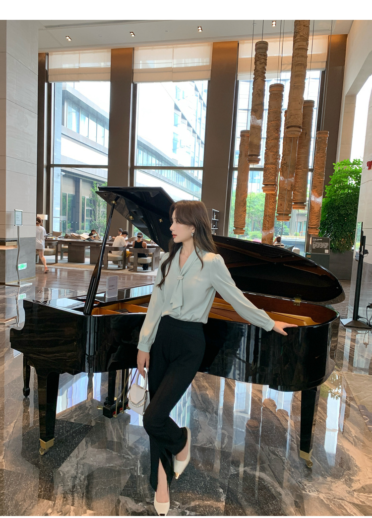 奢姿2024年秋季新款大码女装简约V领系带上衣胖妹妹休闲穿搭套装9943253583