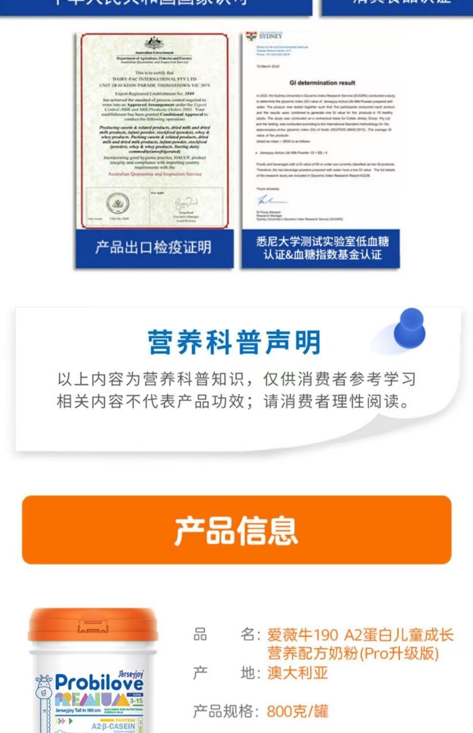 【保税仓】爱薇牛190A2蛋白儿童成长营养配方奶粉(Pro升级版)800g(效期:2027.4)