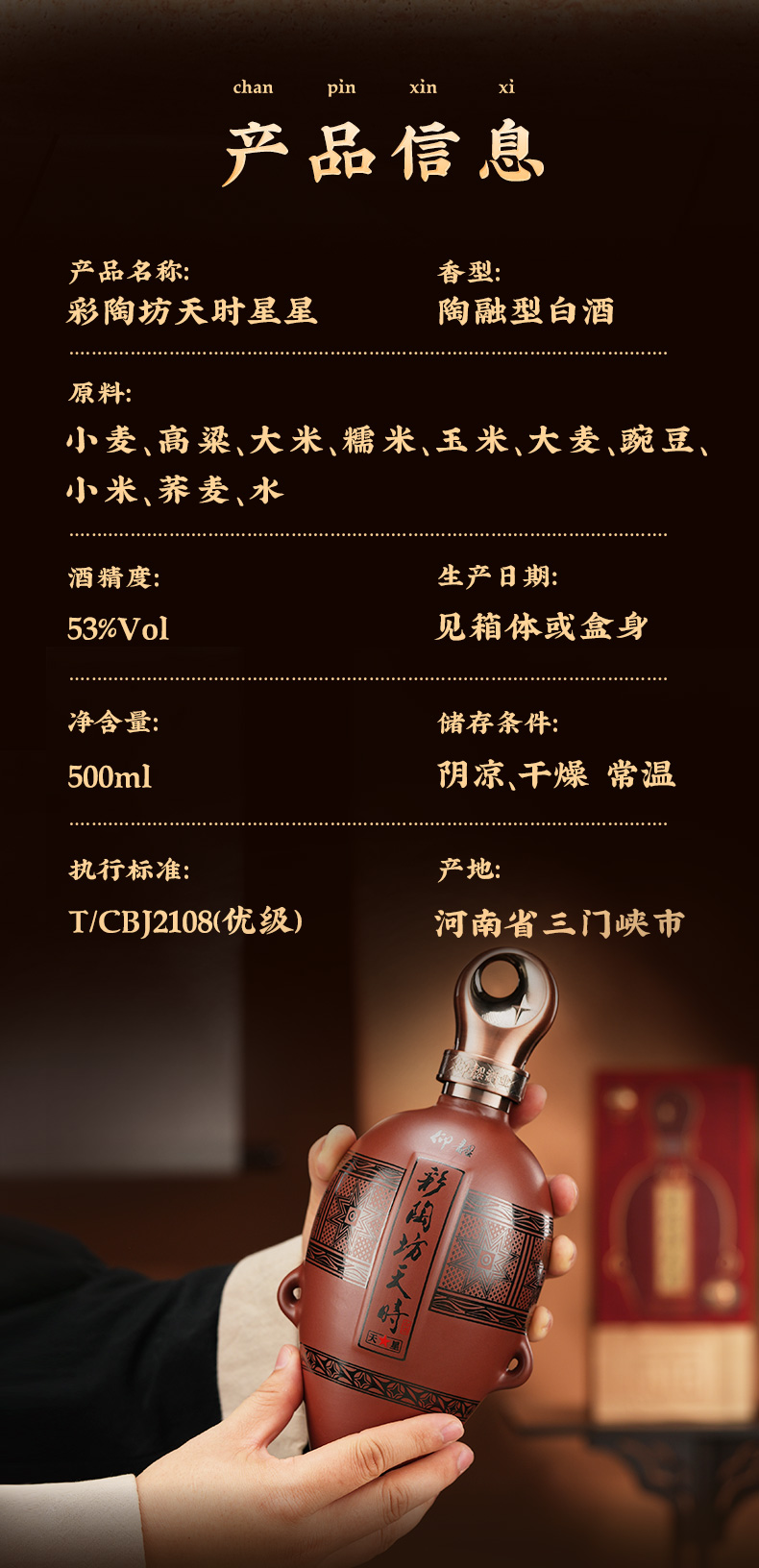 【河南春晚同款】彩陶坊天时星星 单瓶装 53度520ml 纯粮食白酒 仰韶官方旗舰店