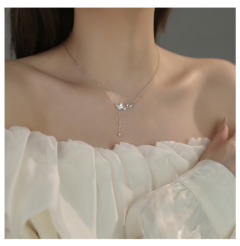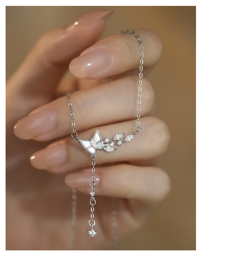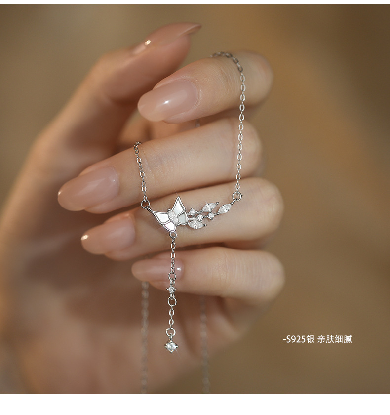 【纯白蝴蝶】S925纯银白贝蝴蝶项链【YXS-A4761】