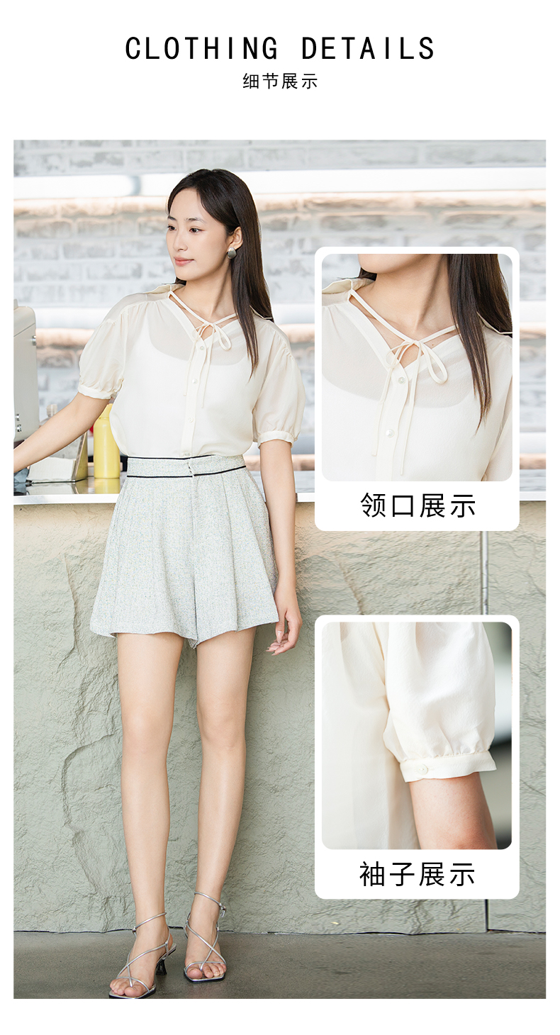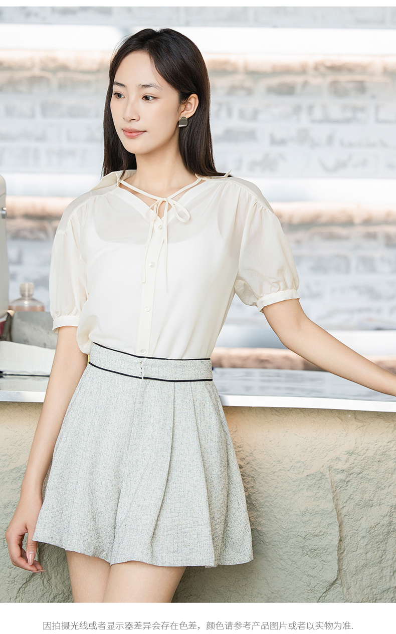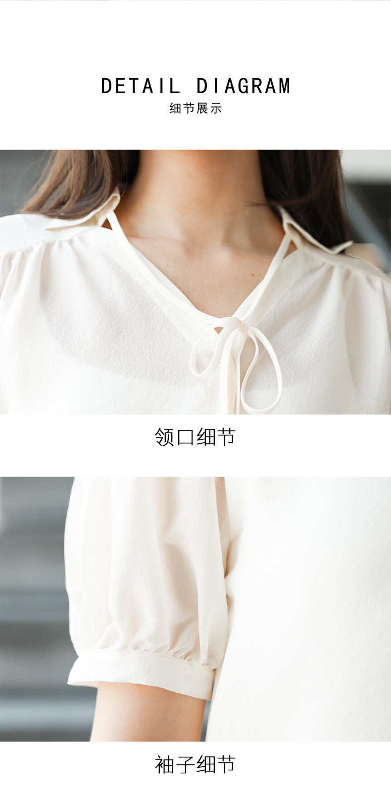 oldcolour夏季新款别致系系带法式短袖雪纺衬衫女P25011550