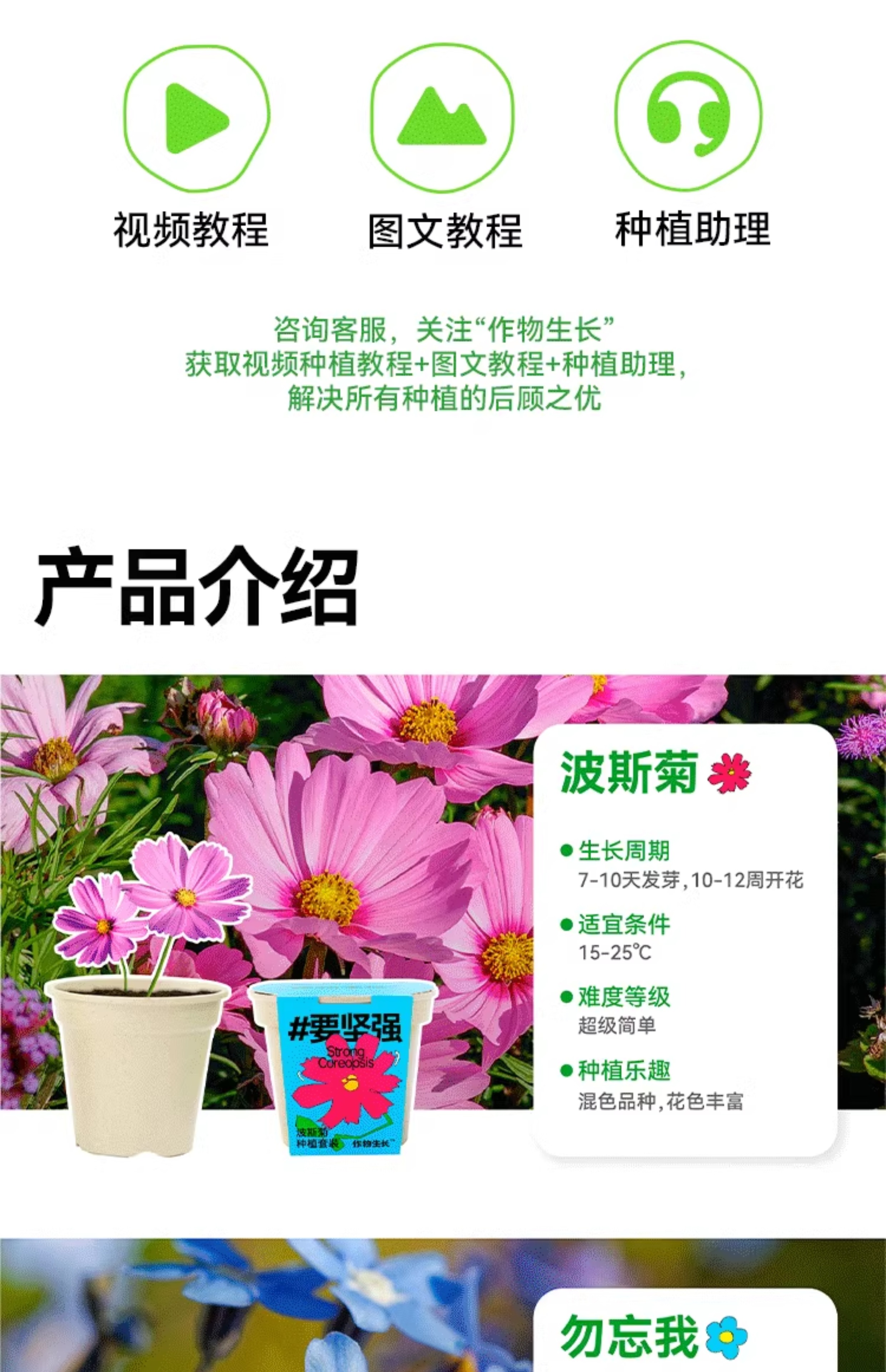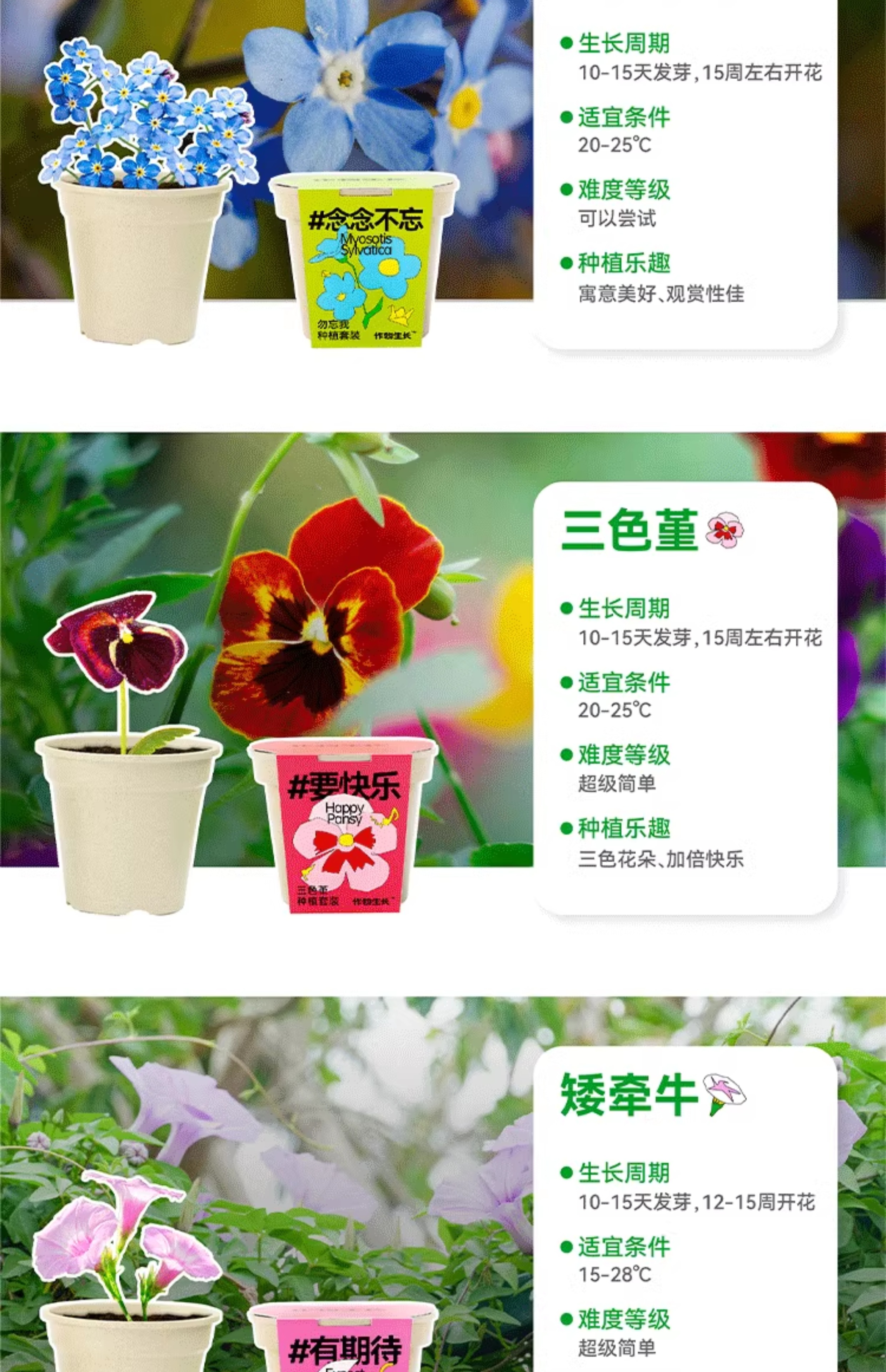 生长温度:15-30°C,喜光照,幼苗成长期30-40天左右,期间应保持土壤水分充足,每个种植盆*可保留1-2棵幼苗。
