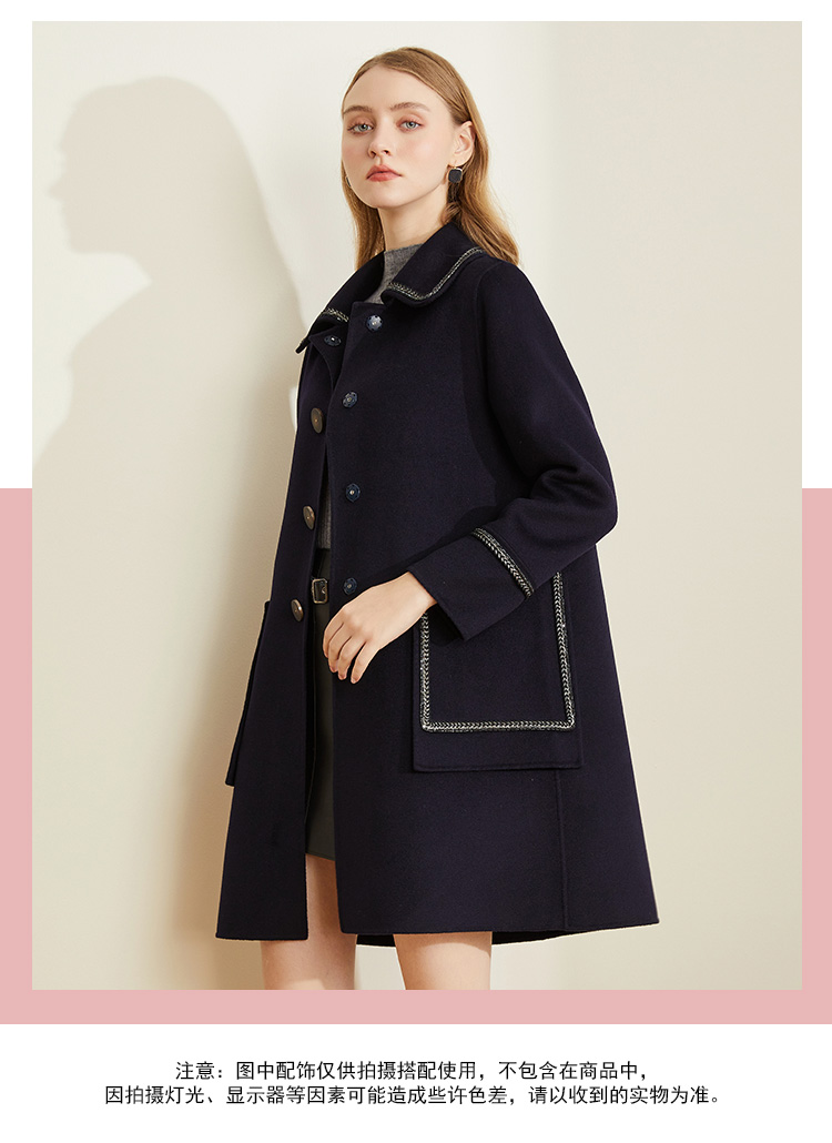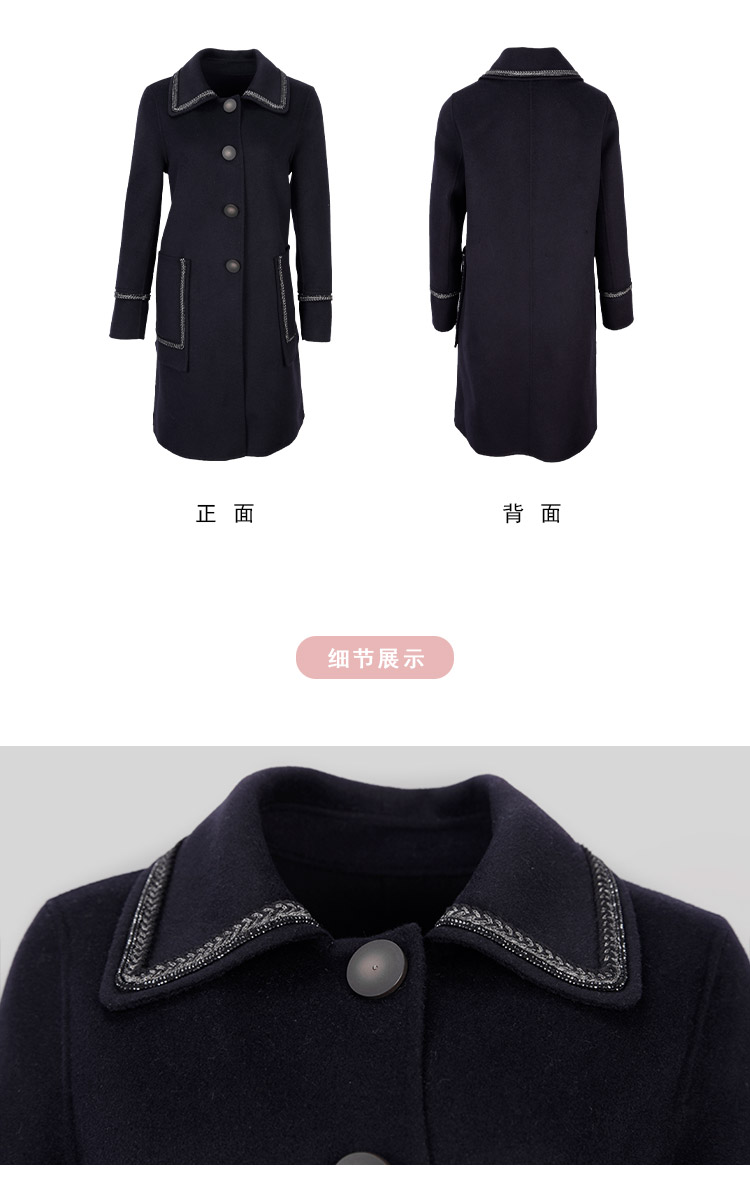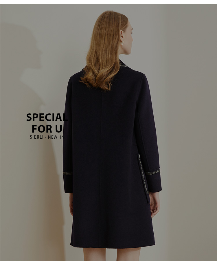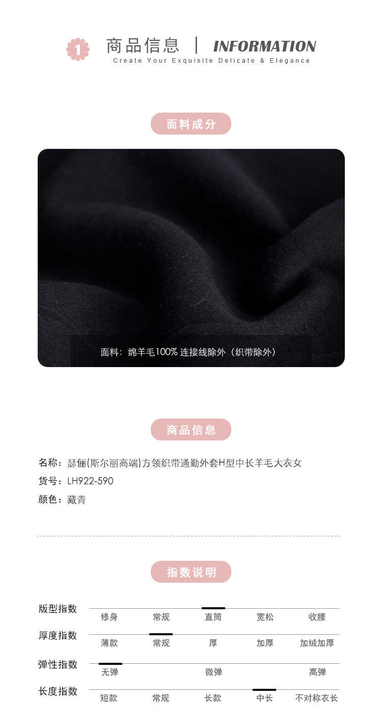 LH922斯尔丽瑟俪2021冬新款方领织带通勤外套H型中长羊毛大衣女