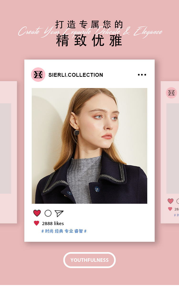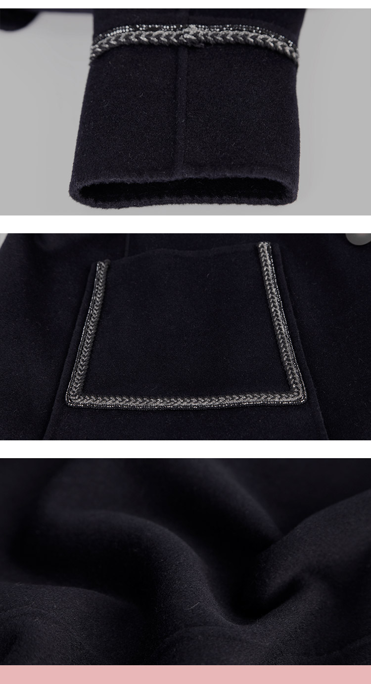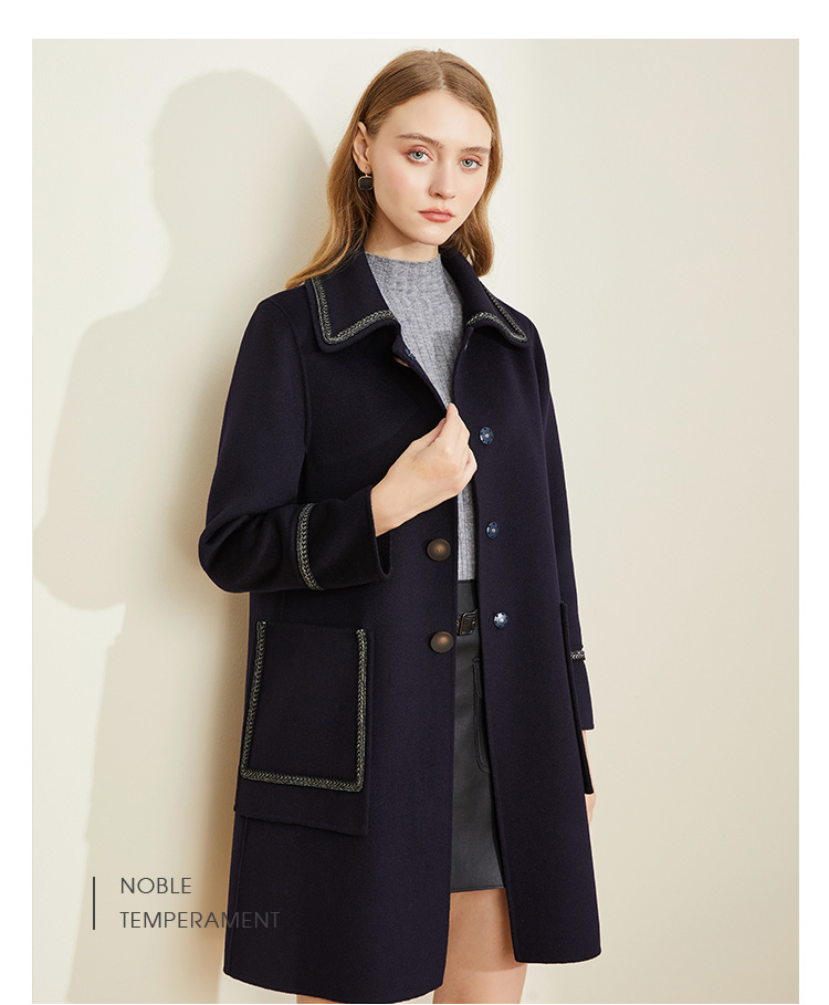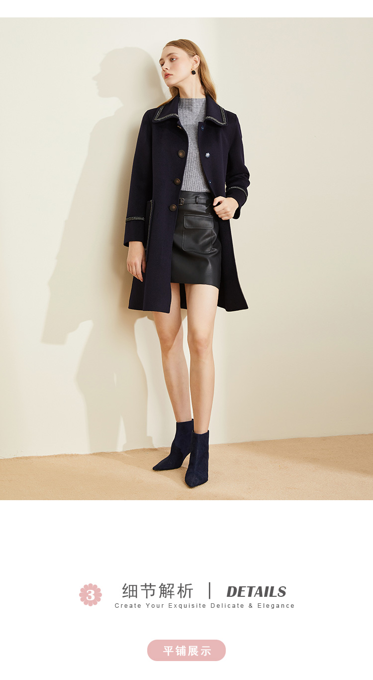 LH922斯尔丽瑟俪2021冬新款方领织带通勤外套H型中长羊毛大衣女