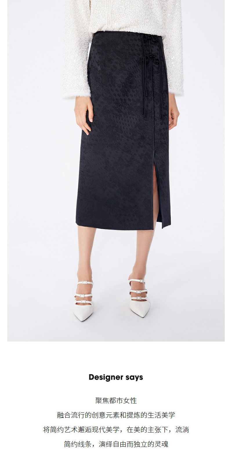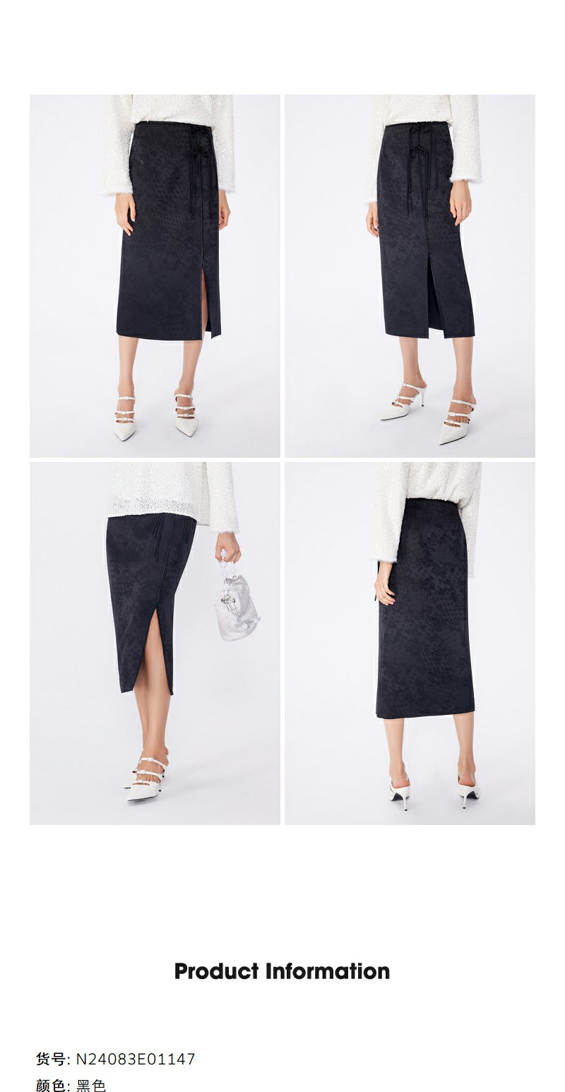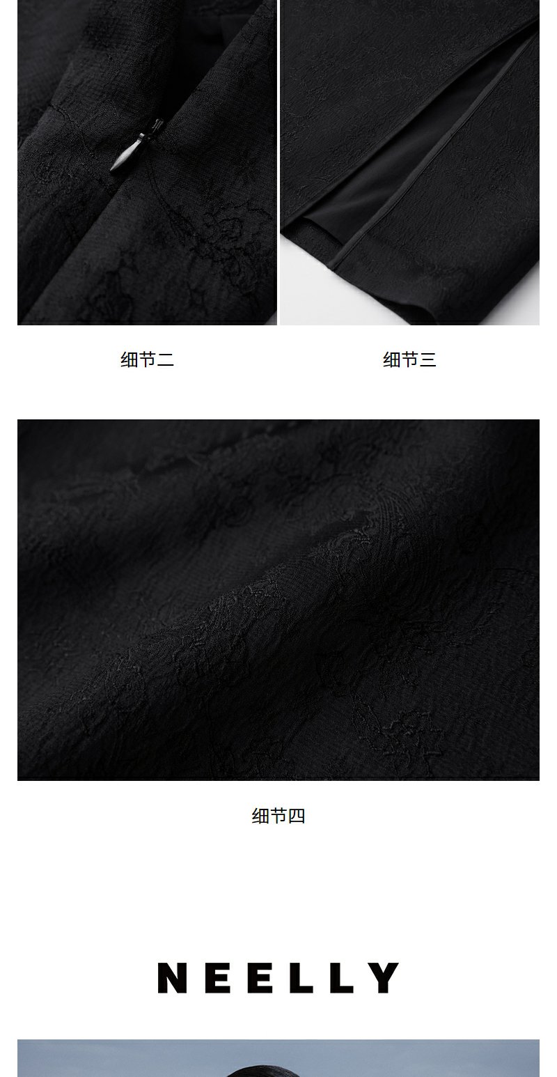 NEELLY纳俪2024秋商场同款新中式印花包臀半身裙女新款黑色长裙N24083E01147