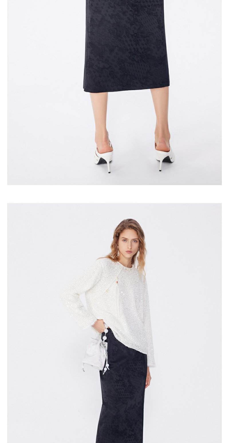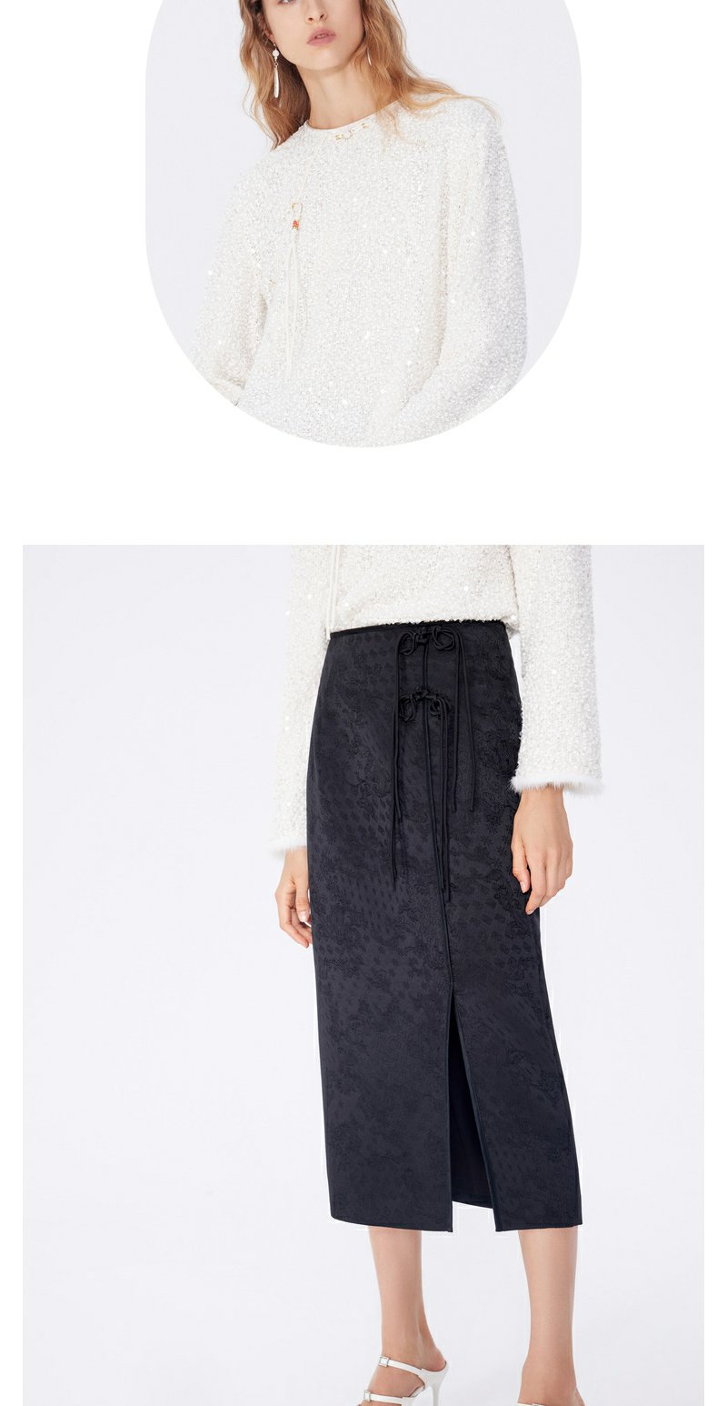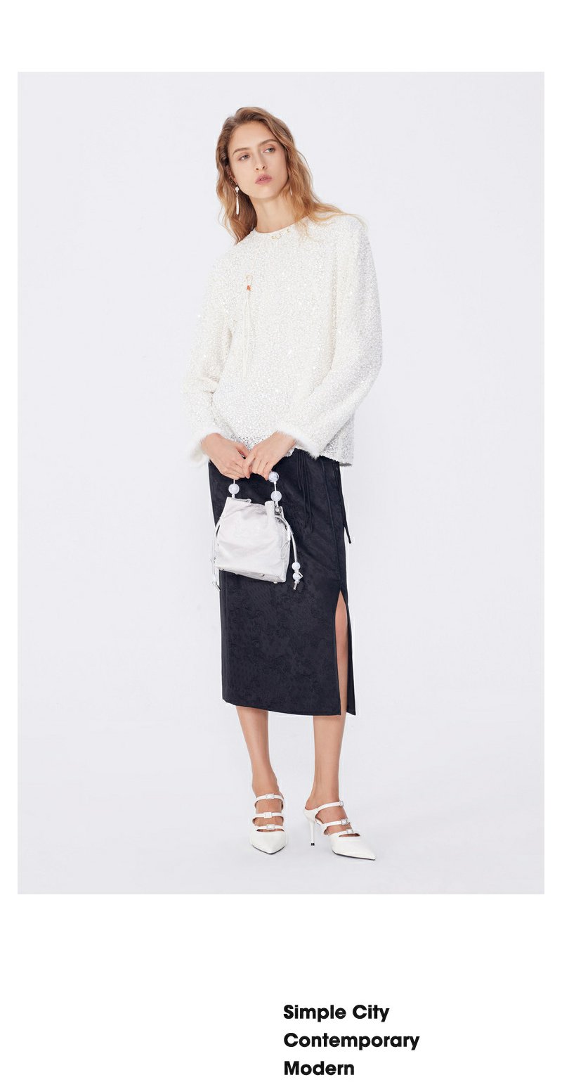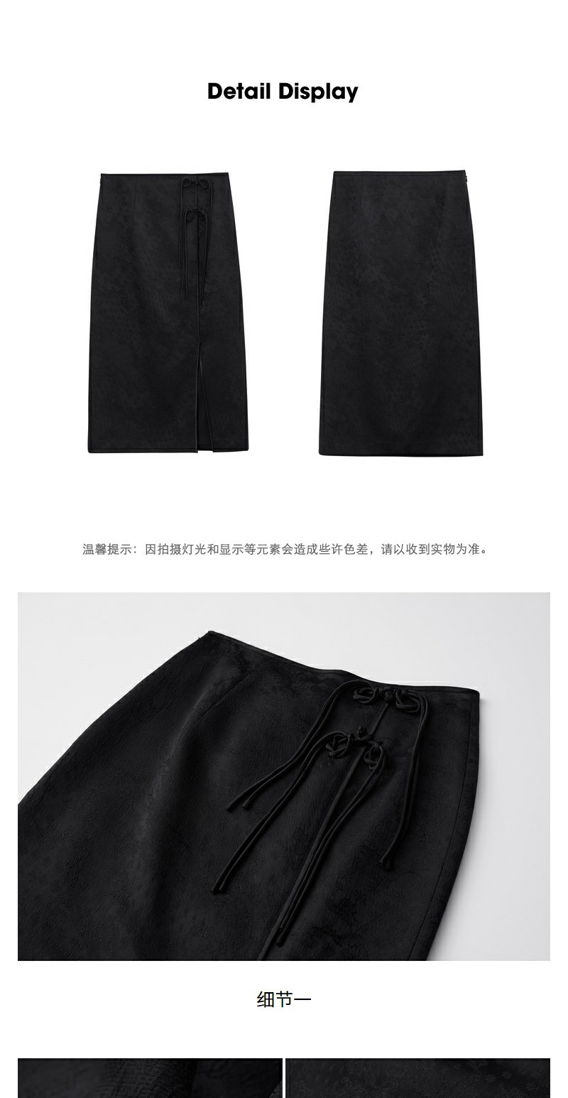 NEELLY纳俪2024秋商场同款新中式印花包臀半身裙女新款黑色长裙N24083E01147