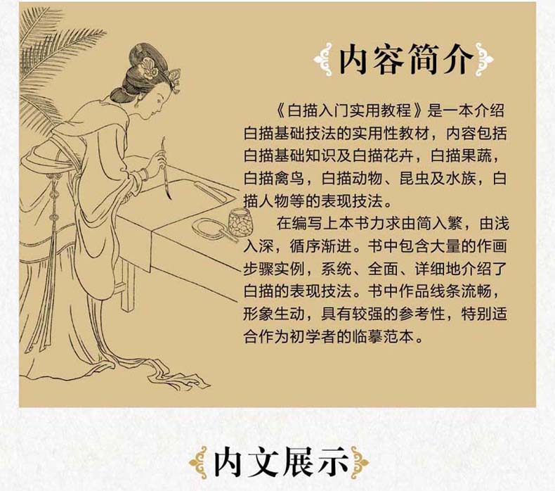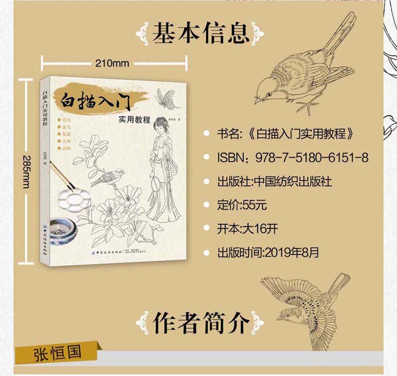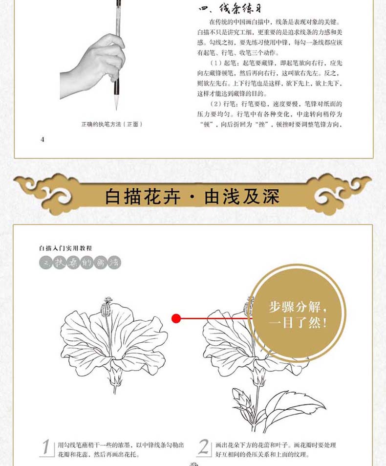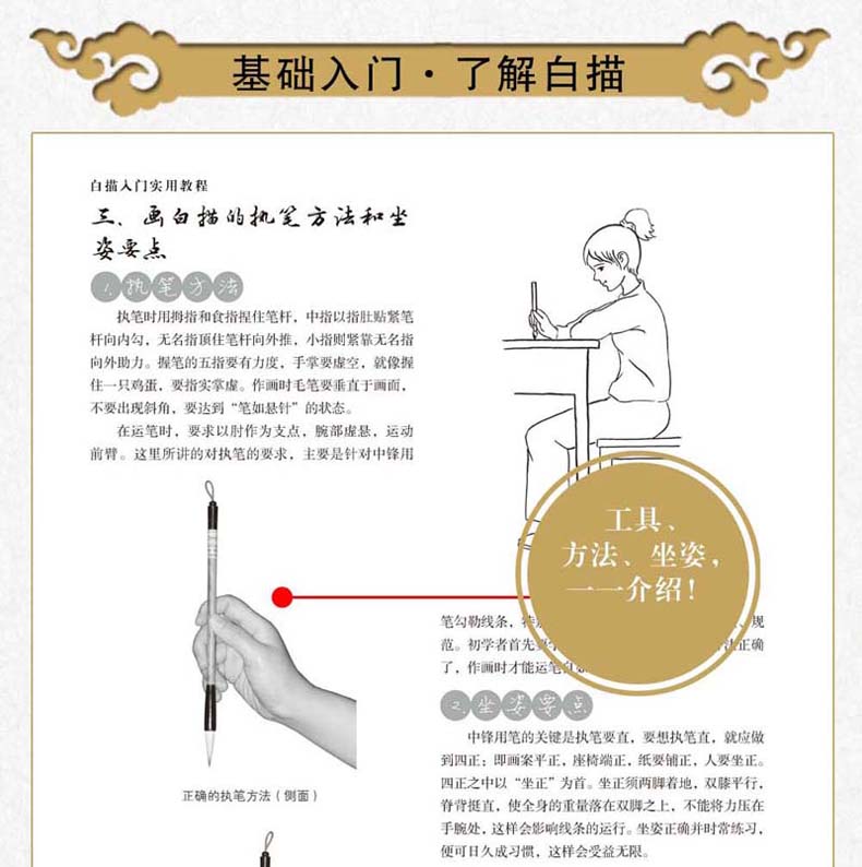 2019新书 白描入门实用教程 张恒国 动植物风景人像绘画技巧新手入门教程 执笔方法坐姿要点线条练习细节临摹 素描写真手绘国画书