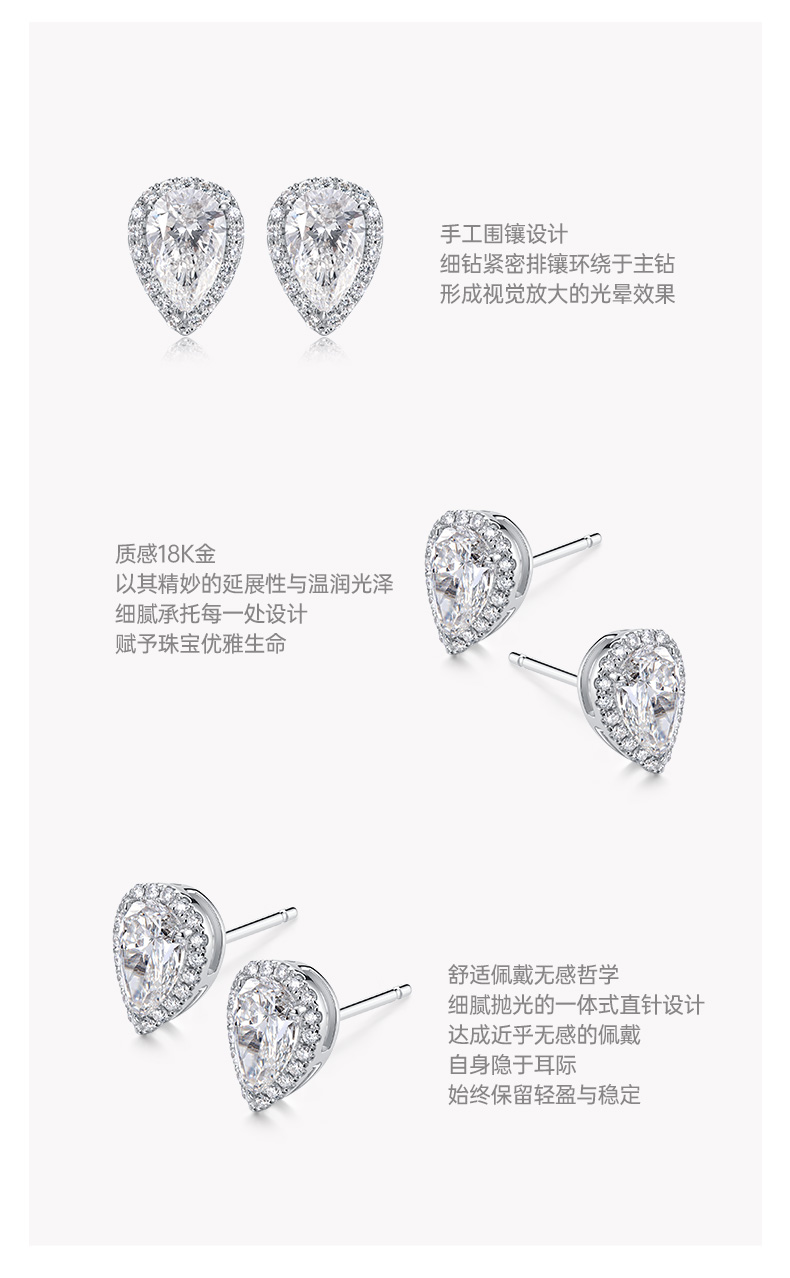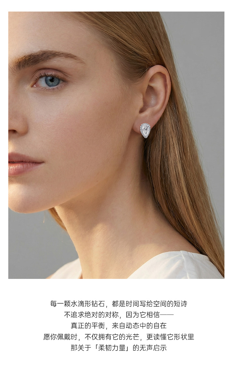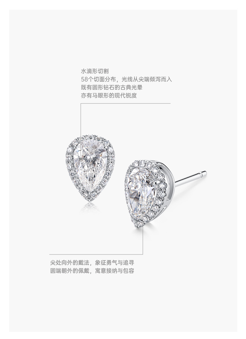 ShiningHouse[培育] 18k金钻石耳饰 水滴形1克拉钻人工真钻人造钻石K金耳钉时尚钻石耳饰耳环悦己送礼臻选【此商品不支持7天无理由退货退款】预计3日发货