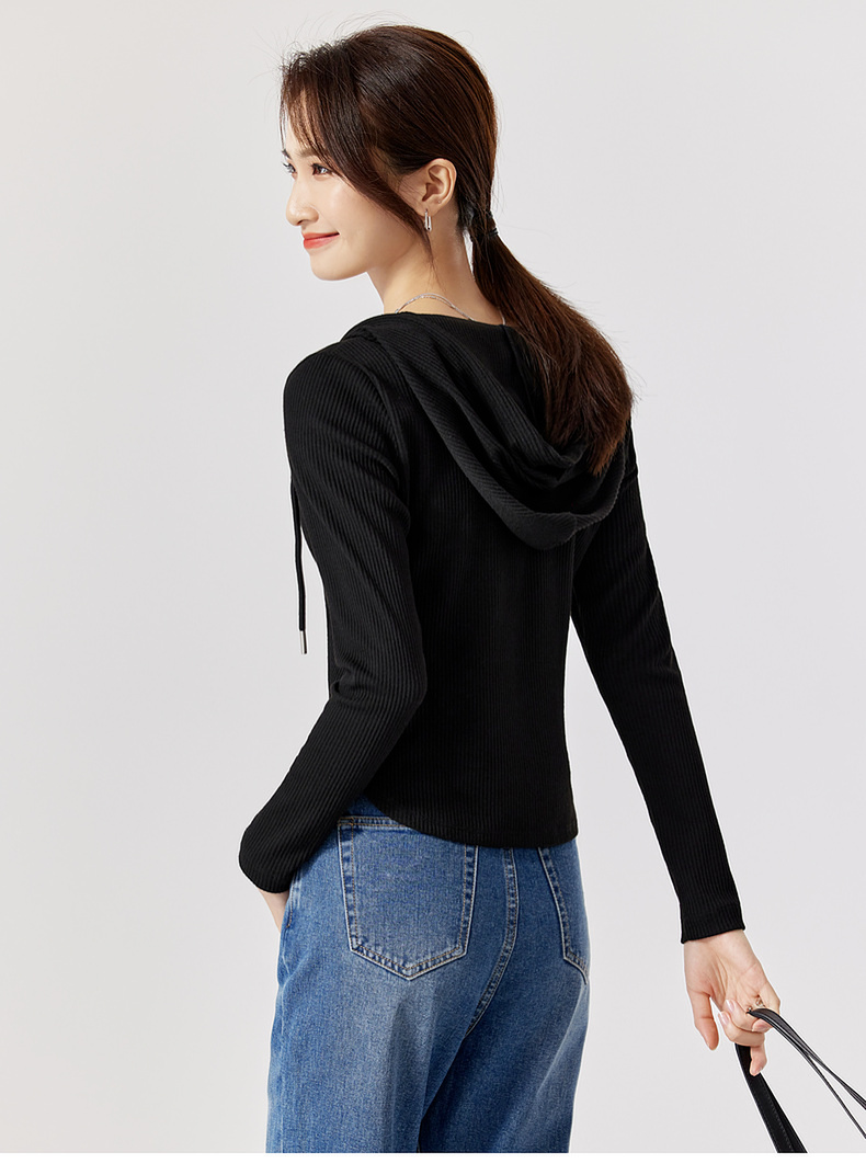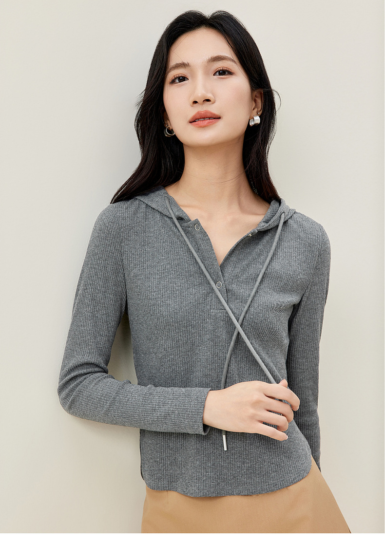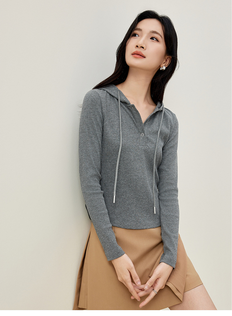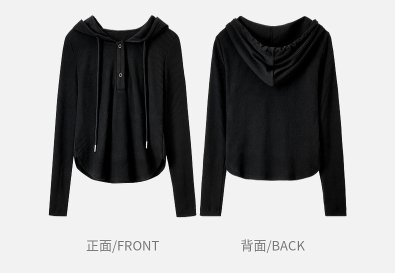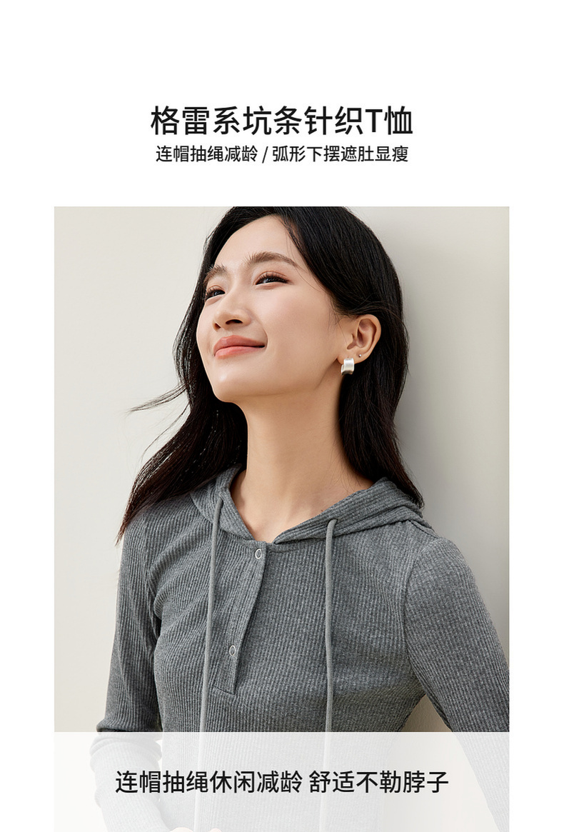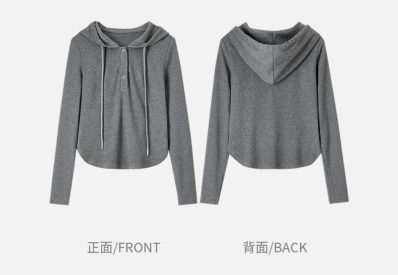 【内购】随性慵懒连帽抽绳半开襟宽松款显瘦针织衫上衣T恤女-153TL3912X