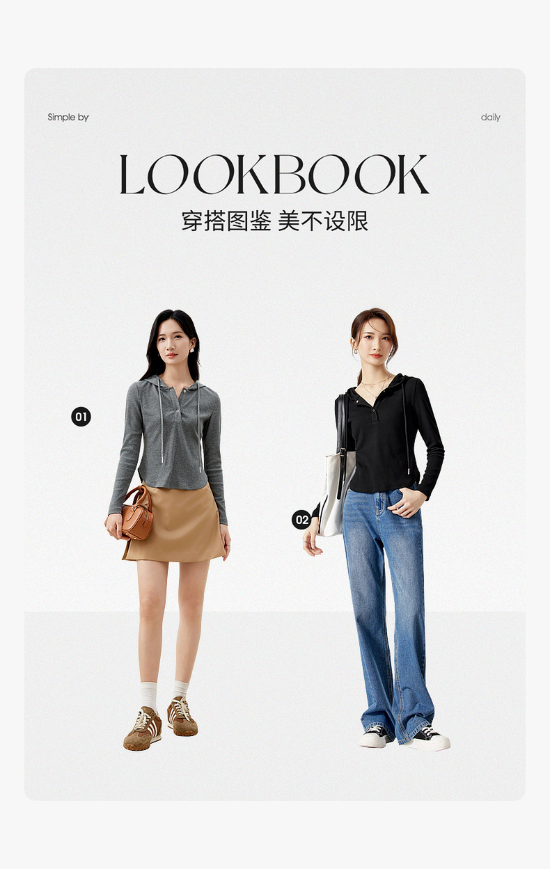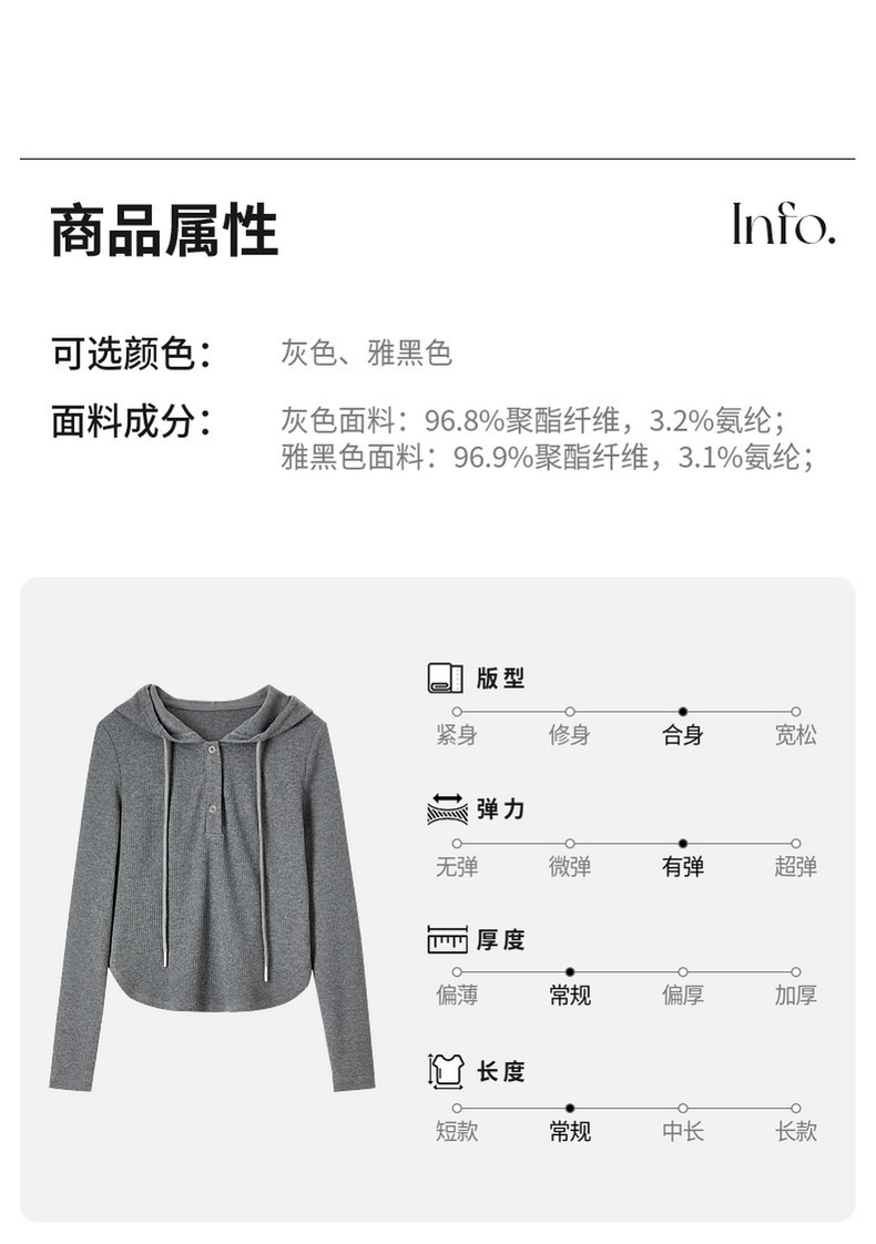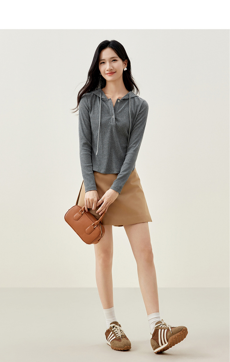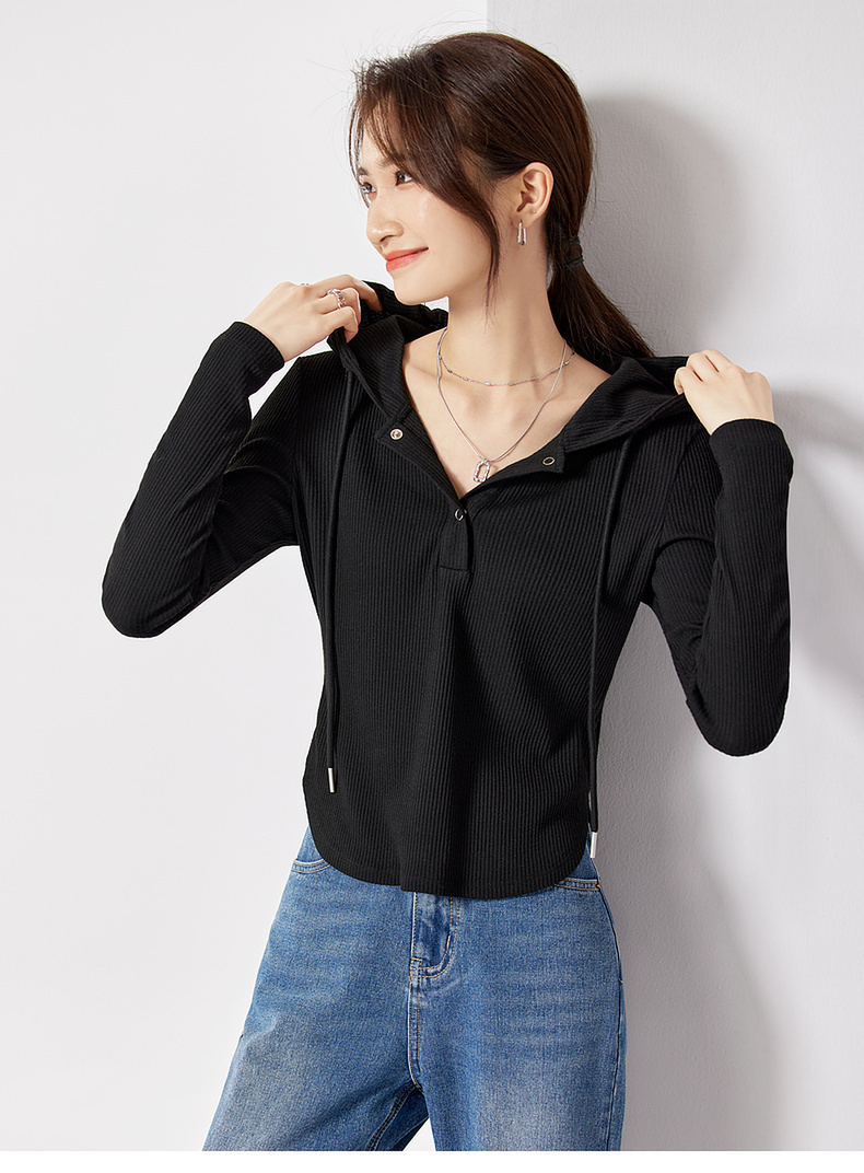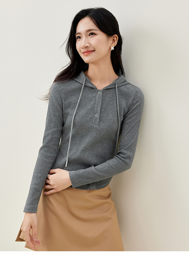 【内购】随性慵懒连帽抽绳半开襟宽松款显瘦针织衫上衣T恤女-153TL3912X