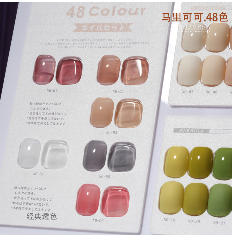马里可可48色12ml.四季经典甲油胶系列soforna(底胶+封层+加固+刷好色板)