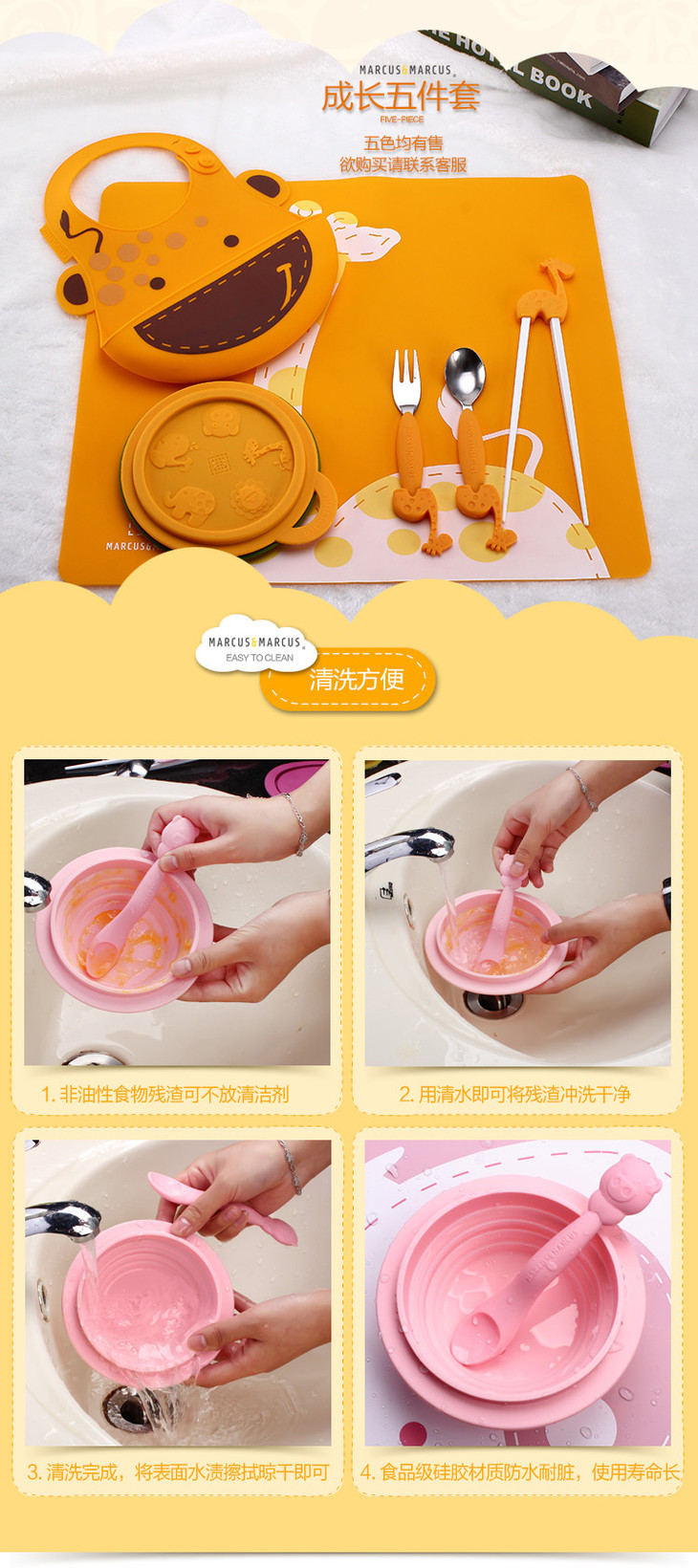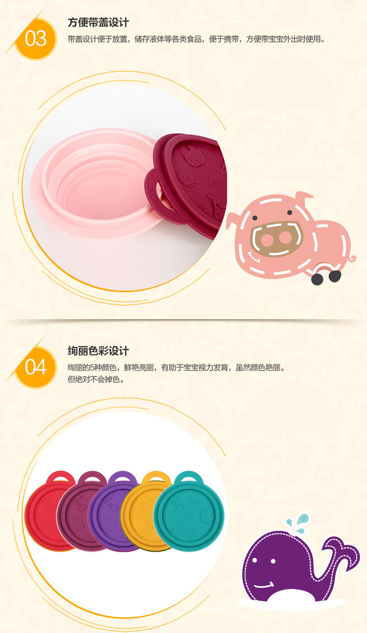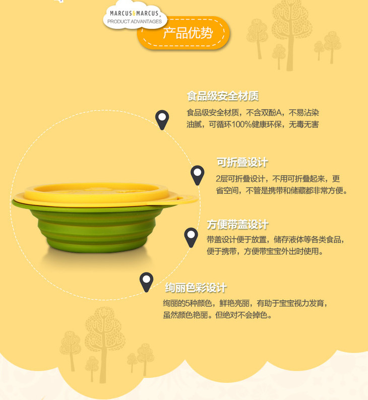 加拿大MARCUS&MARCUS便携硅胶折叠碗 6个月以上【马库狮】