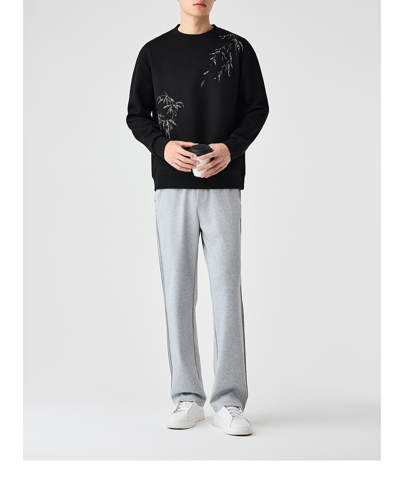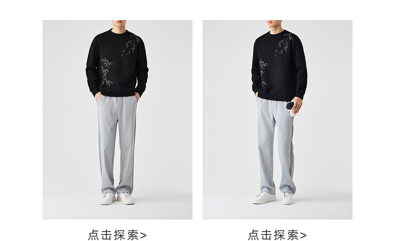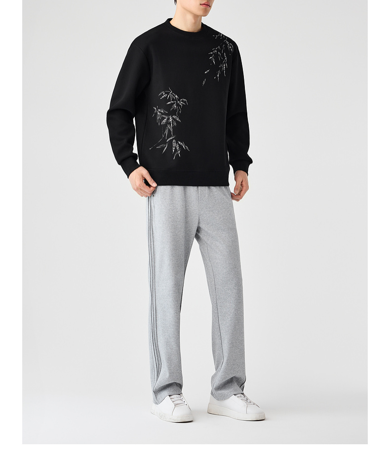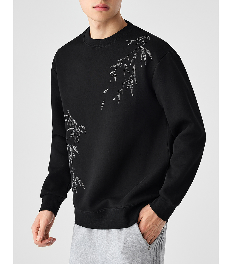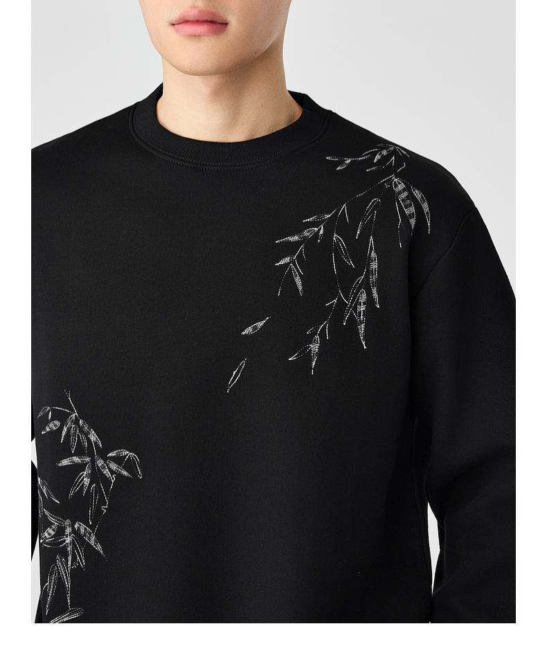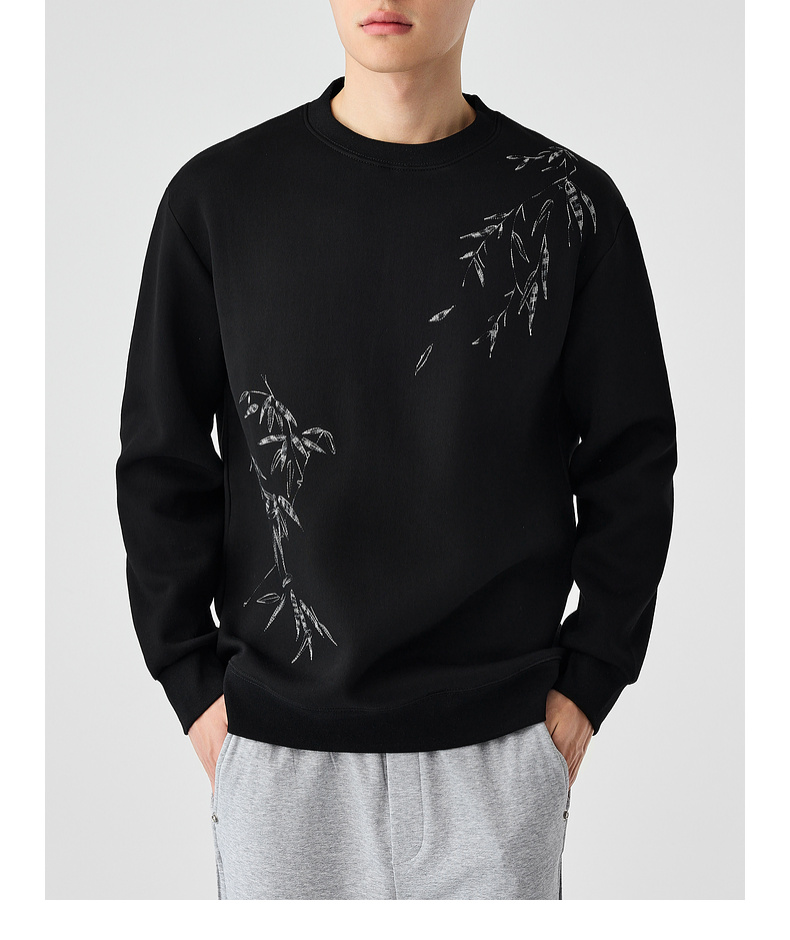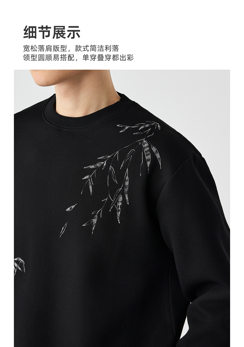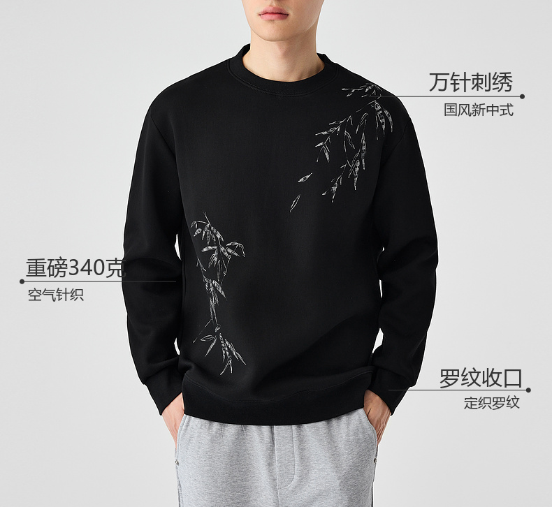 墨麦客男装新中式刺绣圆领卫衣男士2025春季新款长袖上衣外套男。