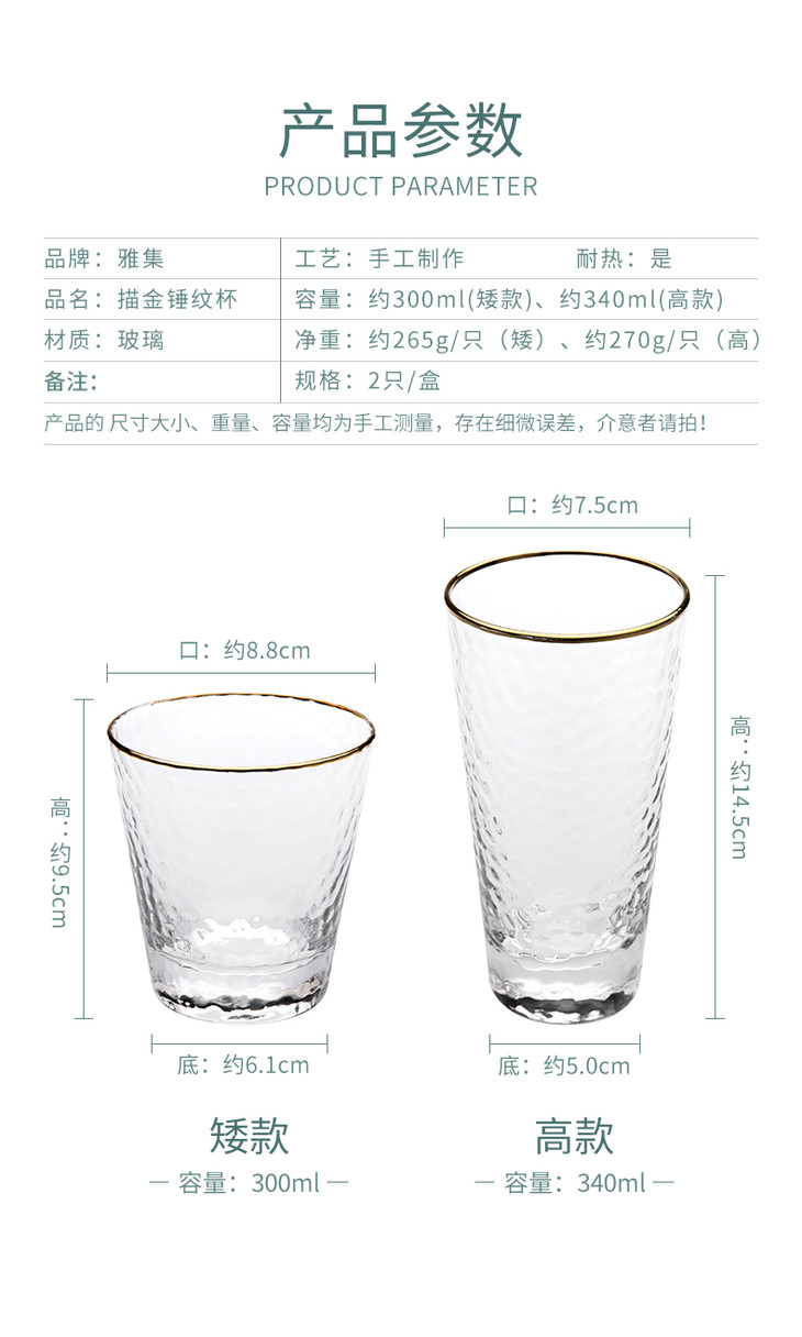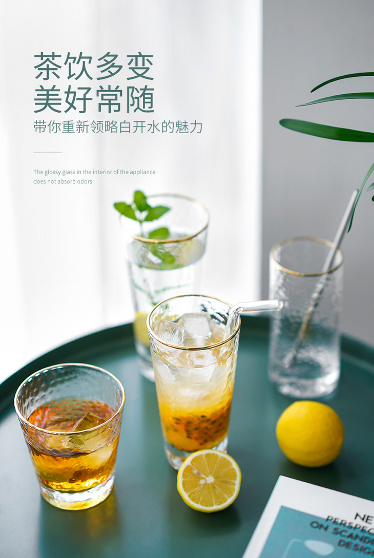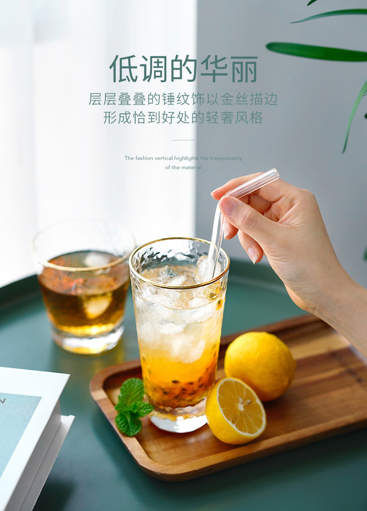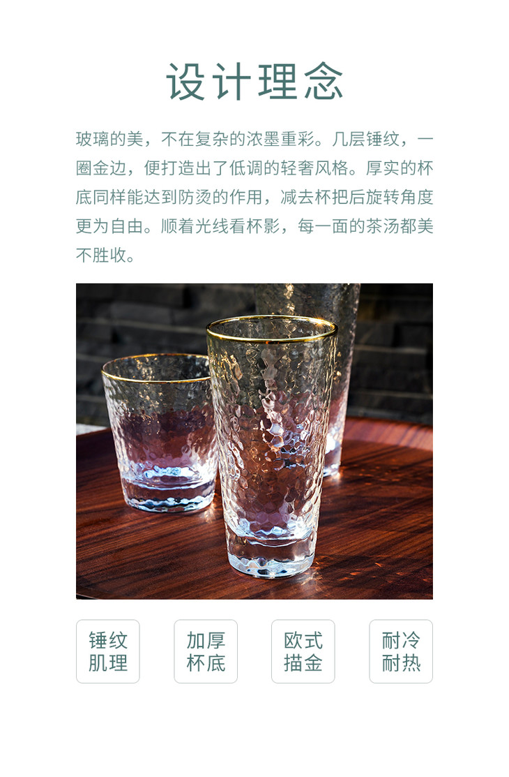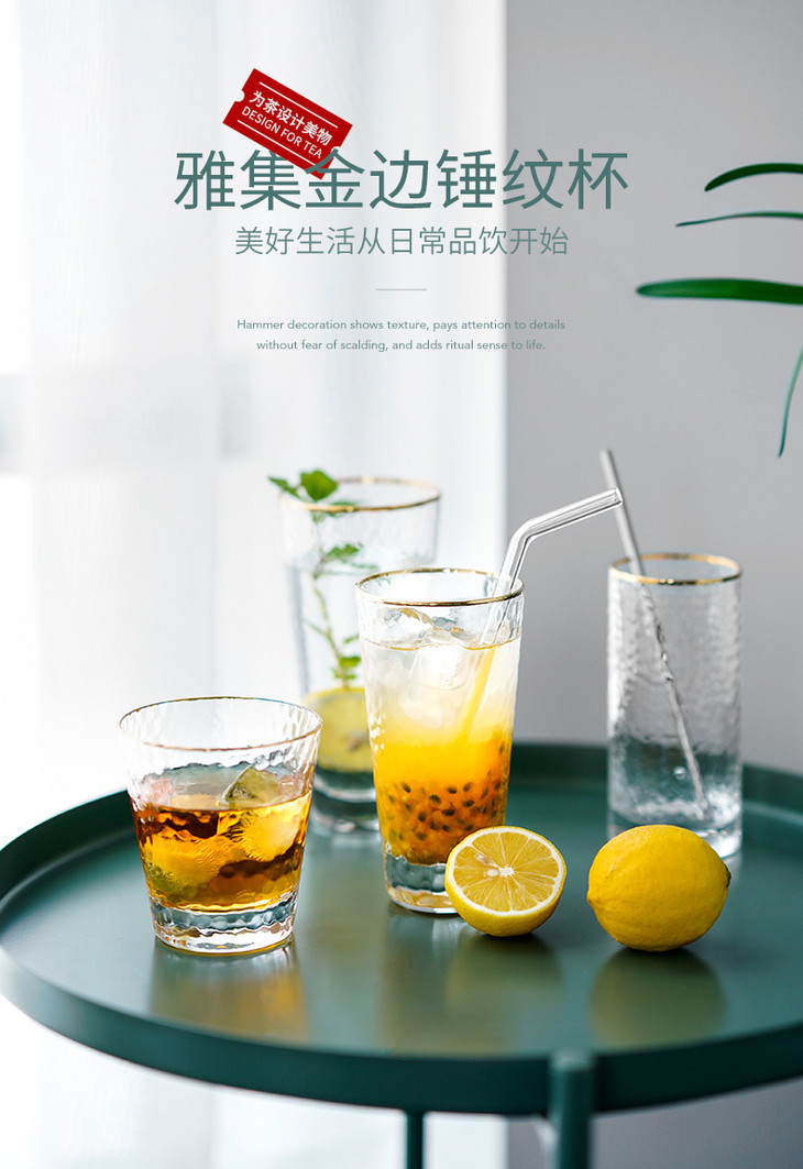 【积分兑换】雅集 描金锤纹杯 玻璃杯家用套装