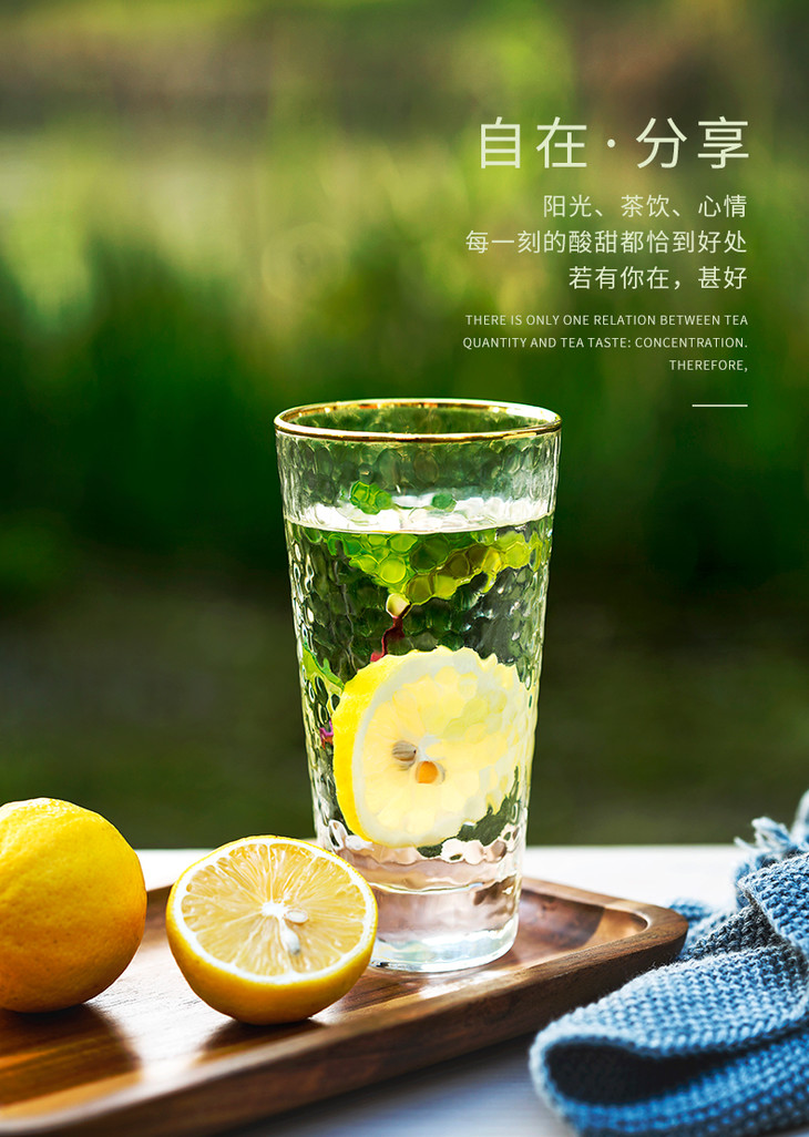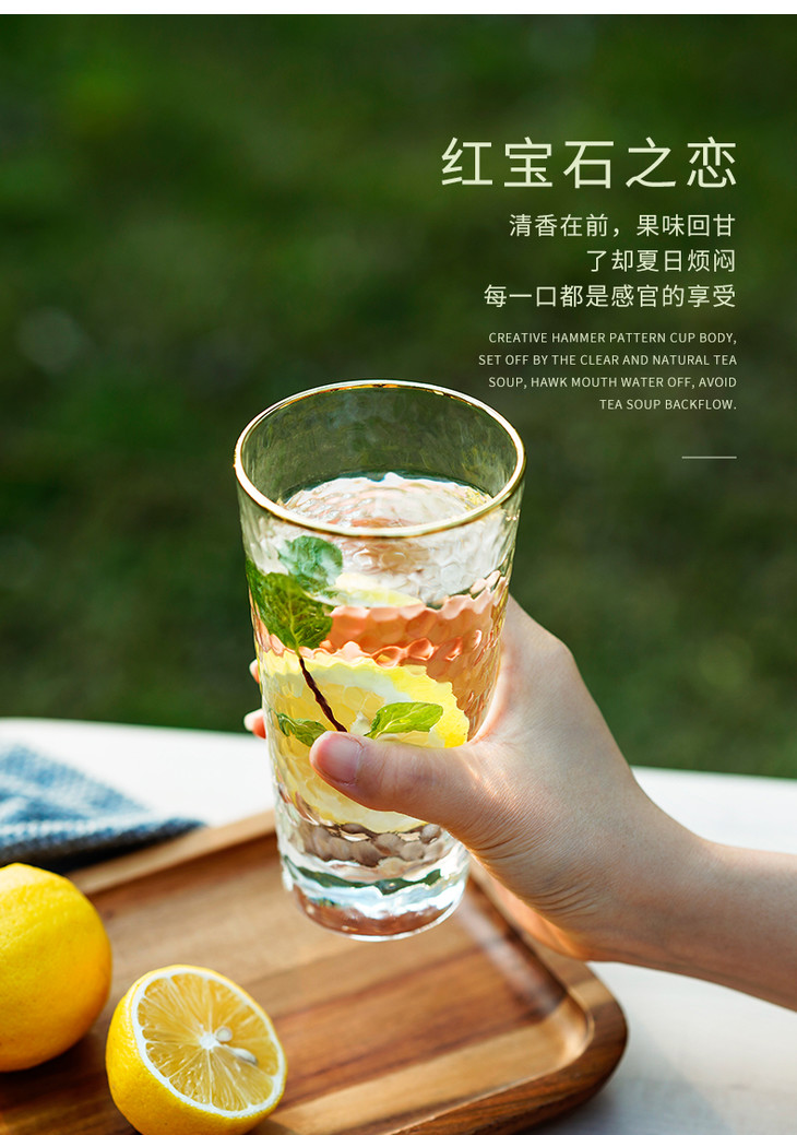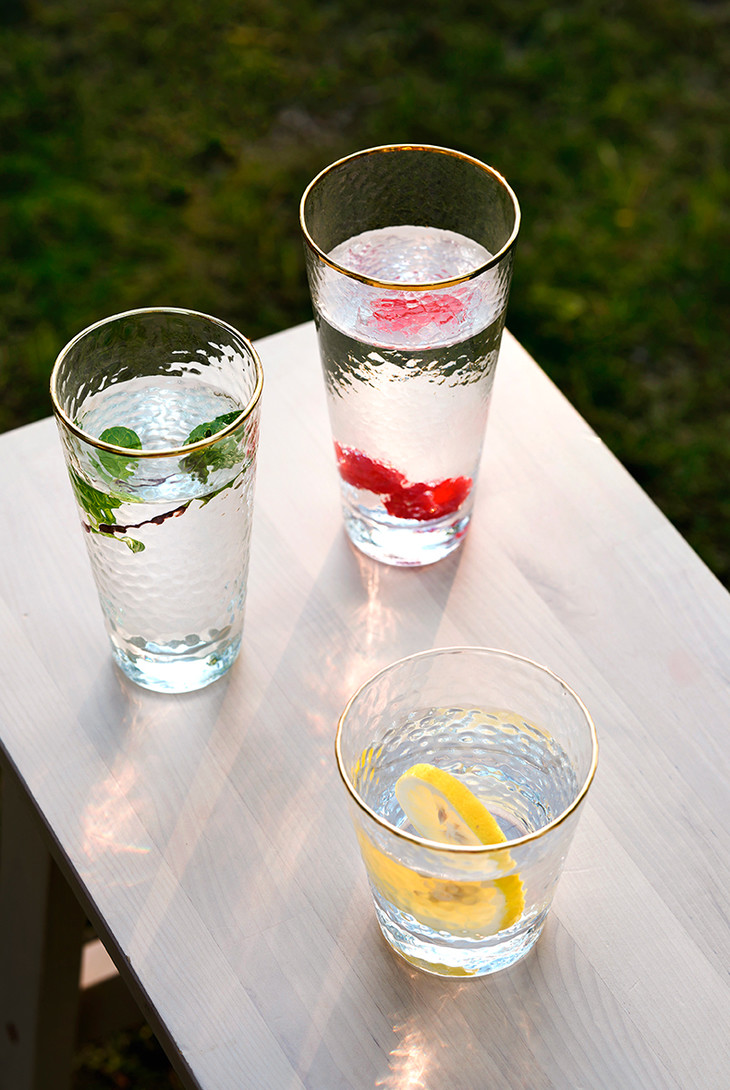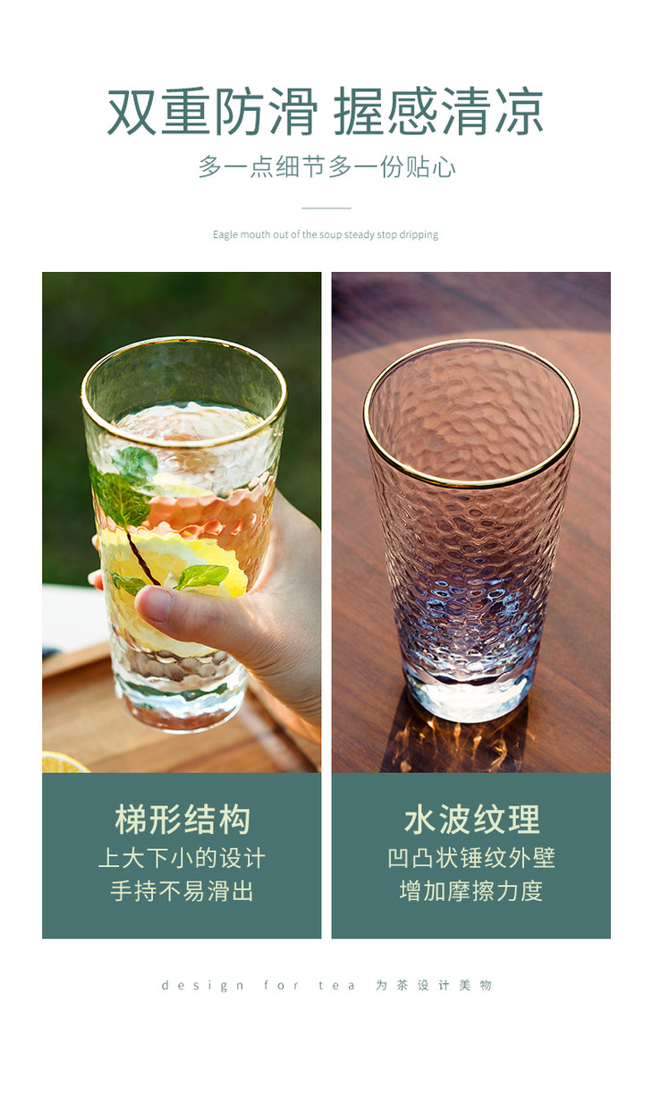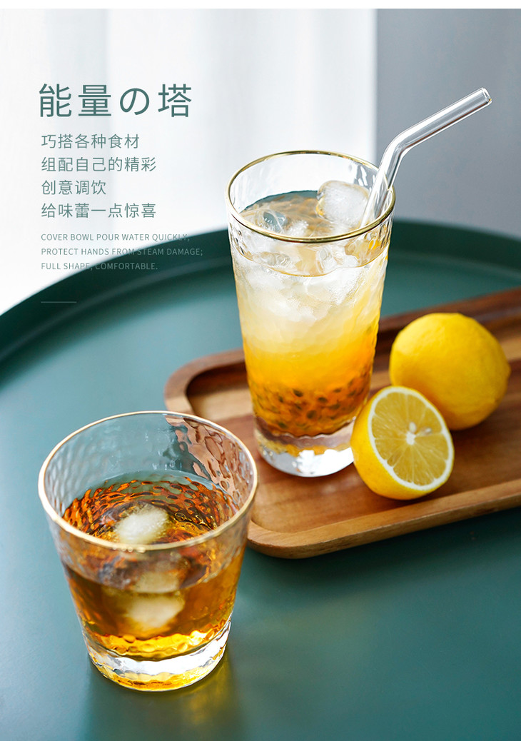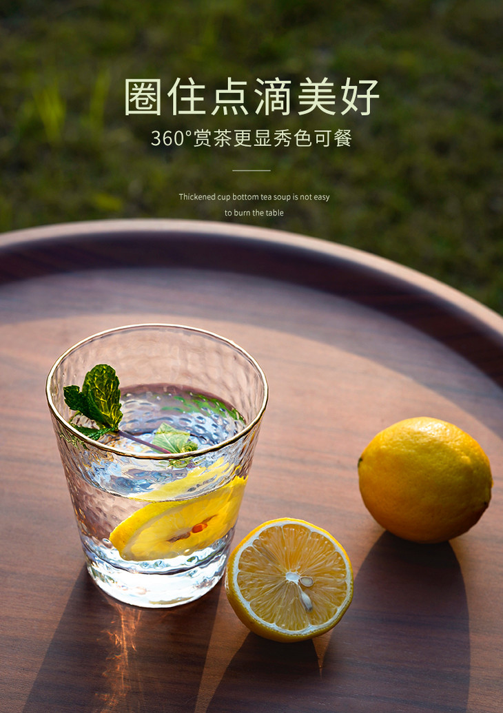 【积分兑换】雅集 描金锤纹杯 玻璃杯家用套装