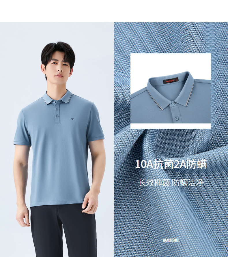 【10A抗菌2A防螨/不变形领】男式短袖POLO衫26新款休闲翻领T恤 130T70280