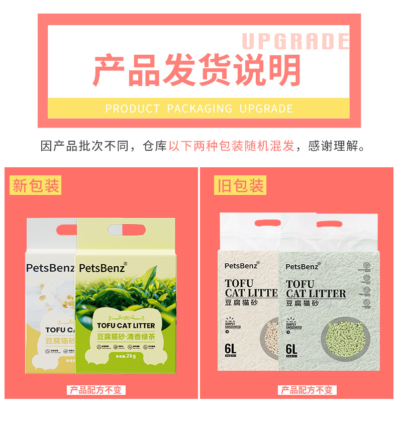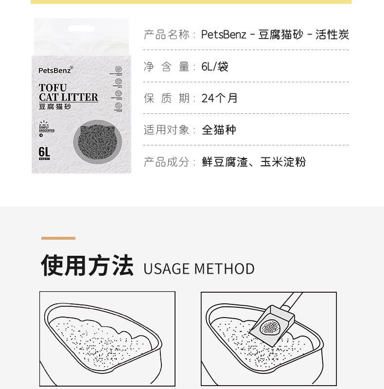 PetsBenz豆腐猫砂6L低尘原味可降解除臭植物猫砂活性炭 猫砂批发