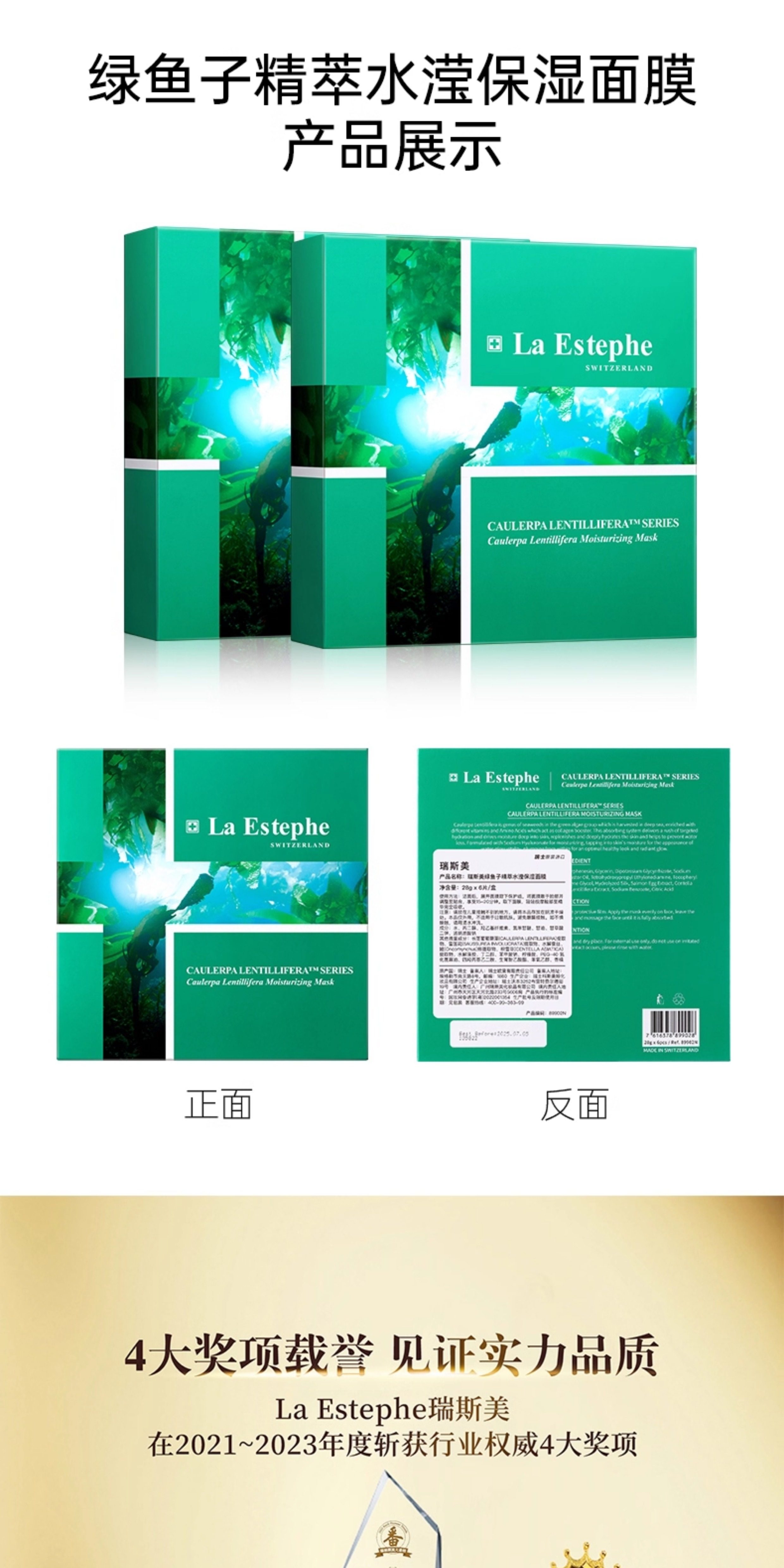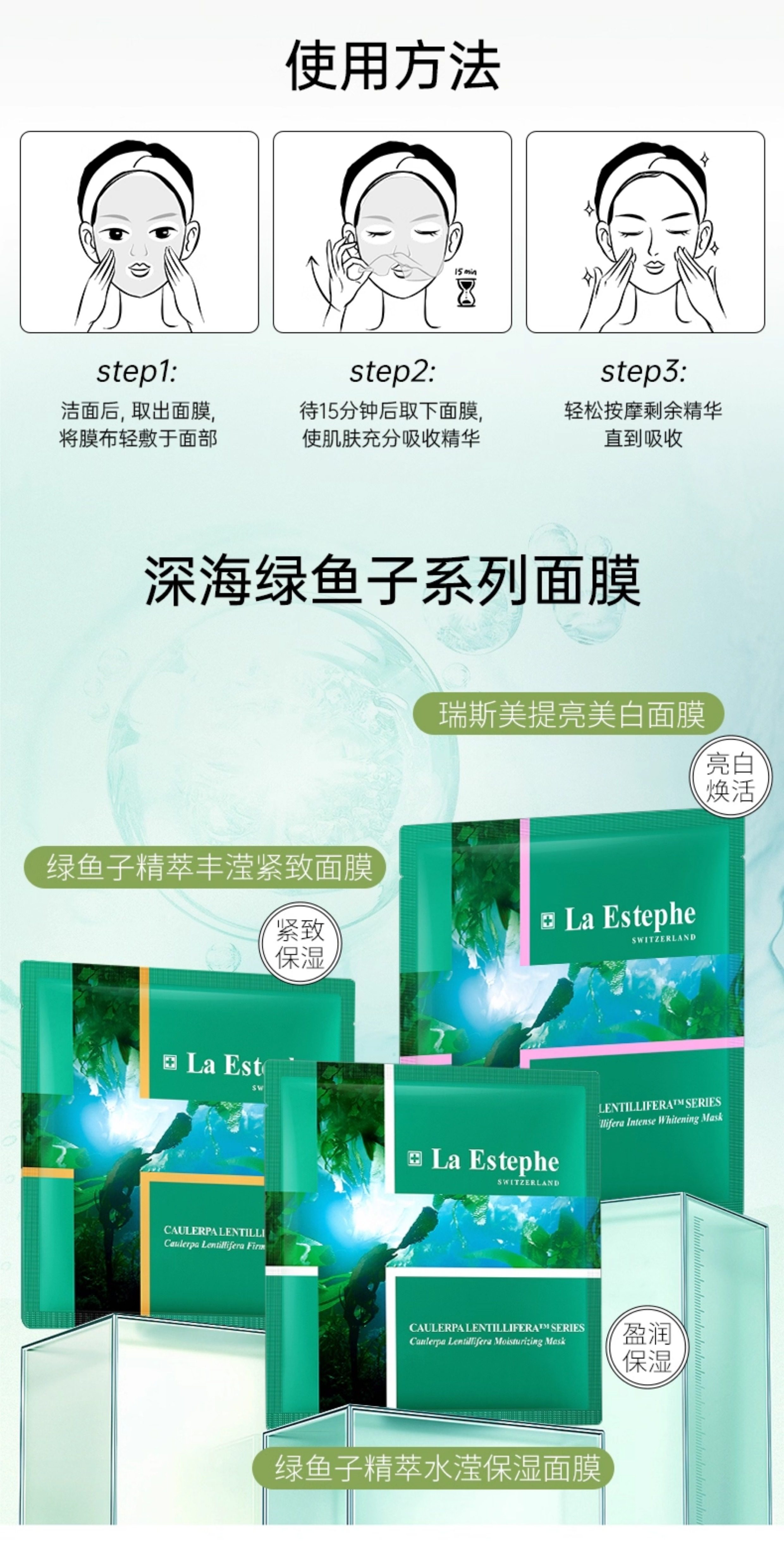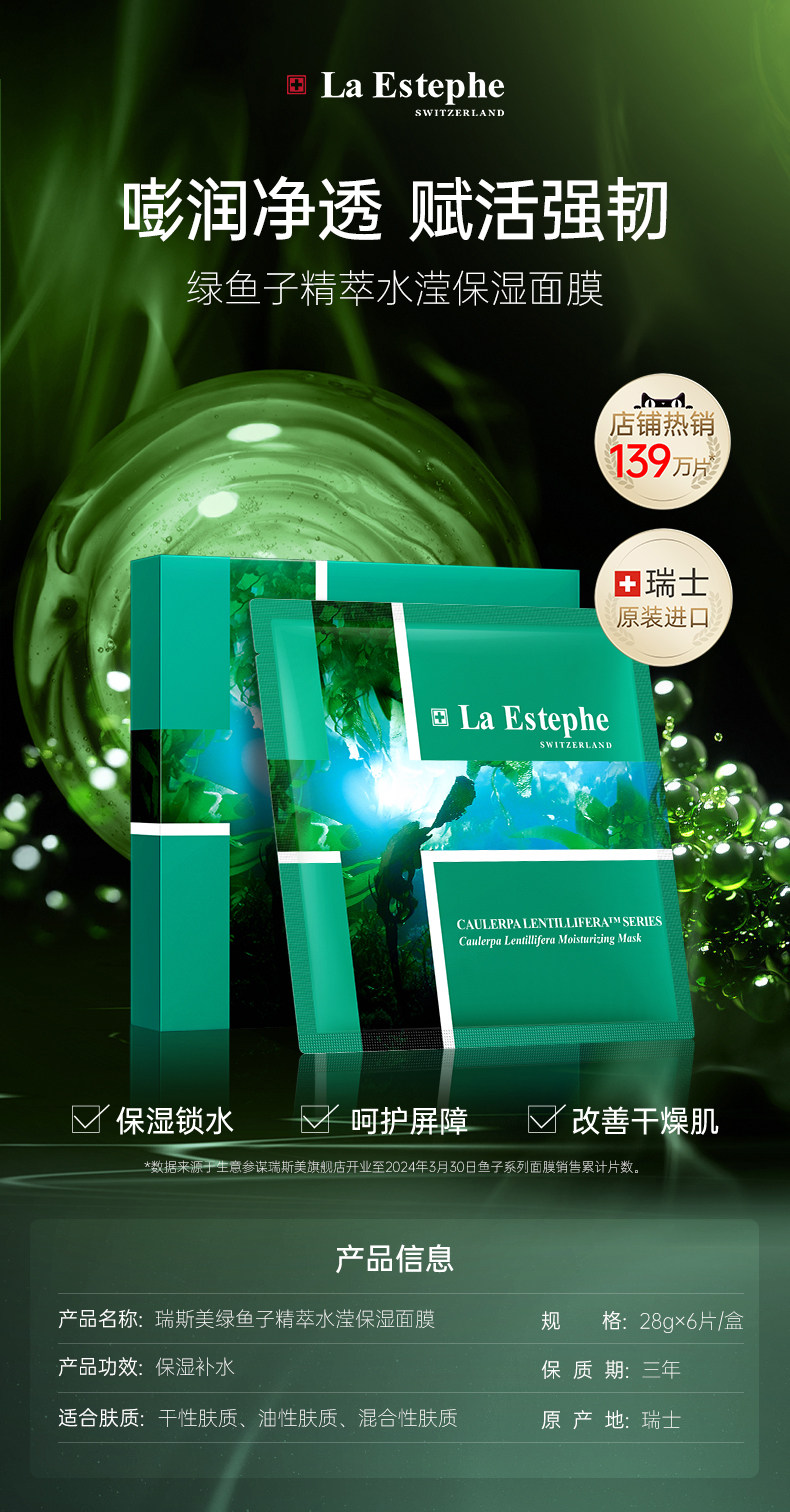 瑞士laestephe瑞斯美绿鱼子补水保湿紧致面膜 紧致美白补水屏障呵护春夏锁水女 6片装