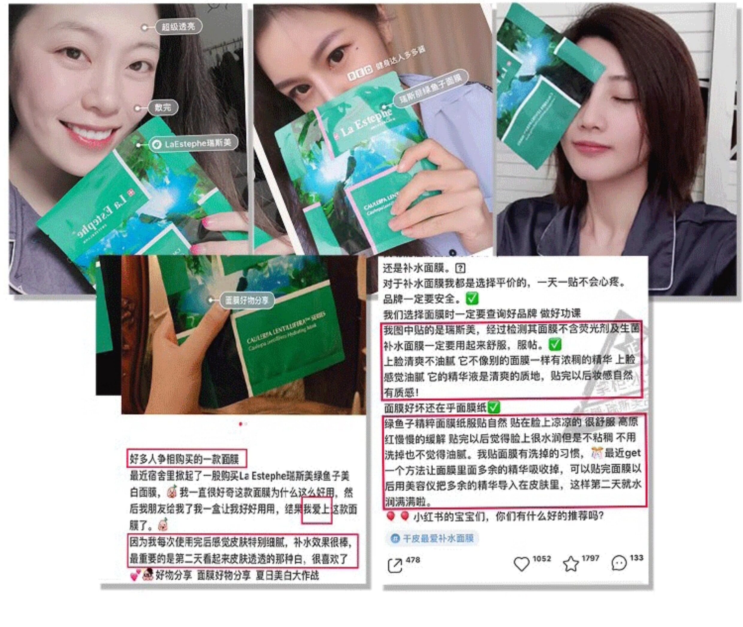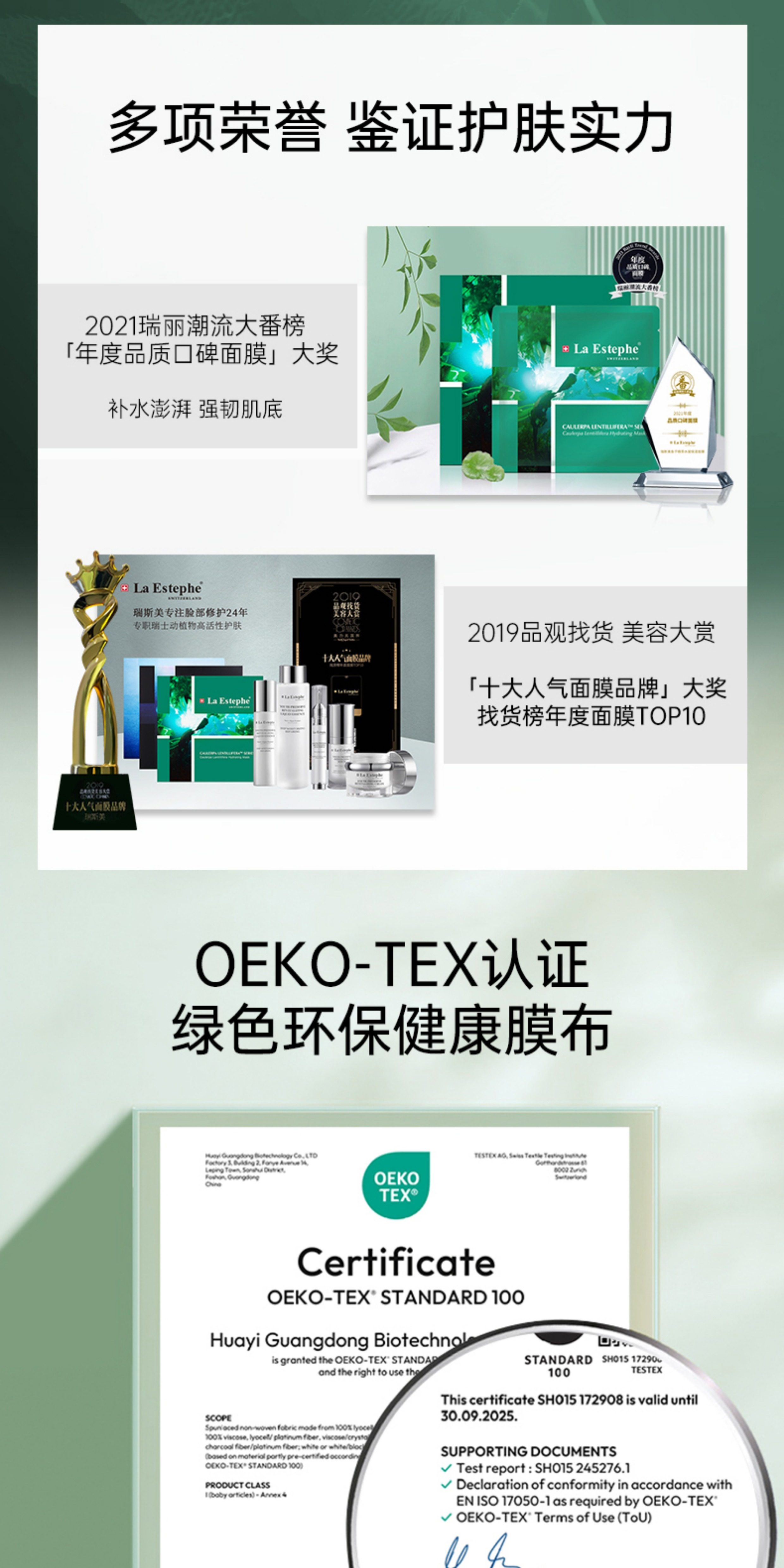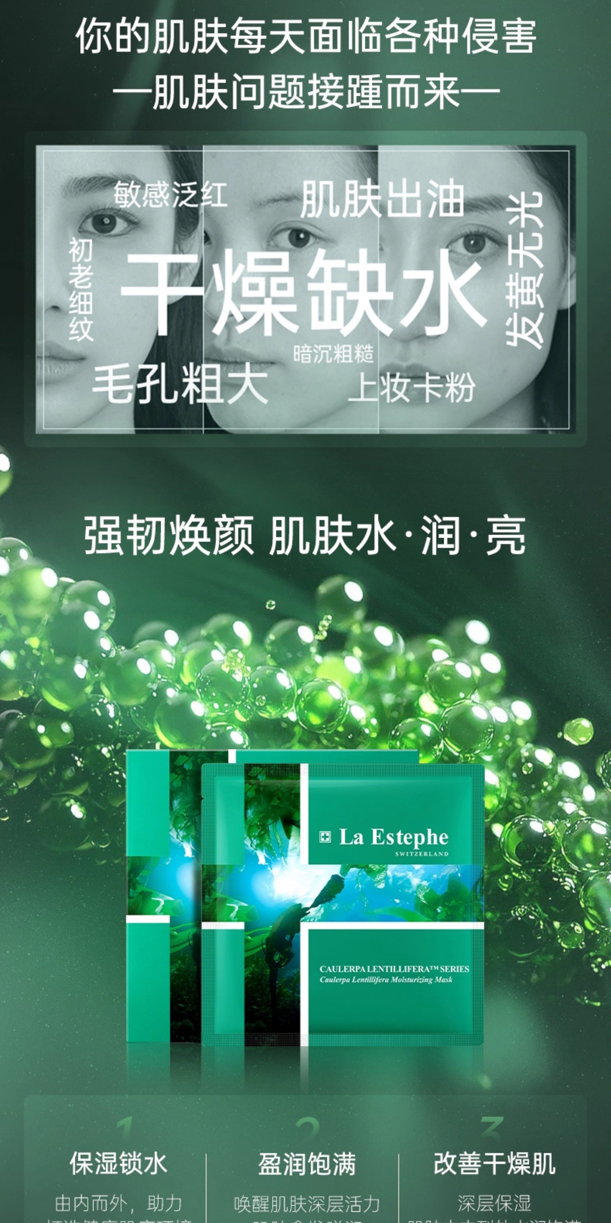 瑞士laestephe瑞斯美绿鱼子补水保湿紧致面膜 紧致美白补水屏障呵护春夏锁水女 6片装