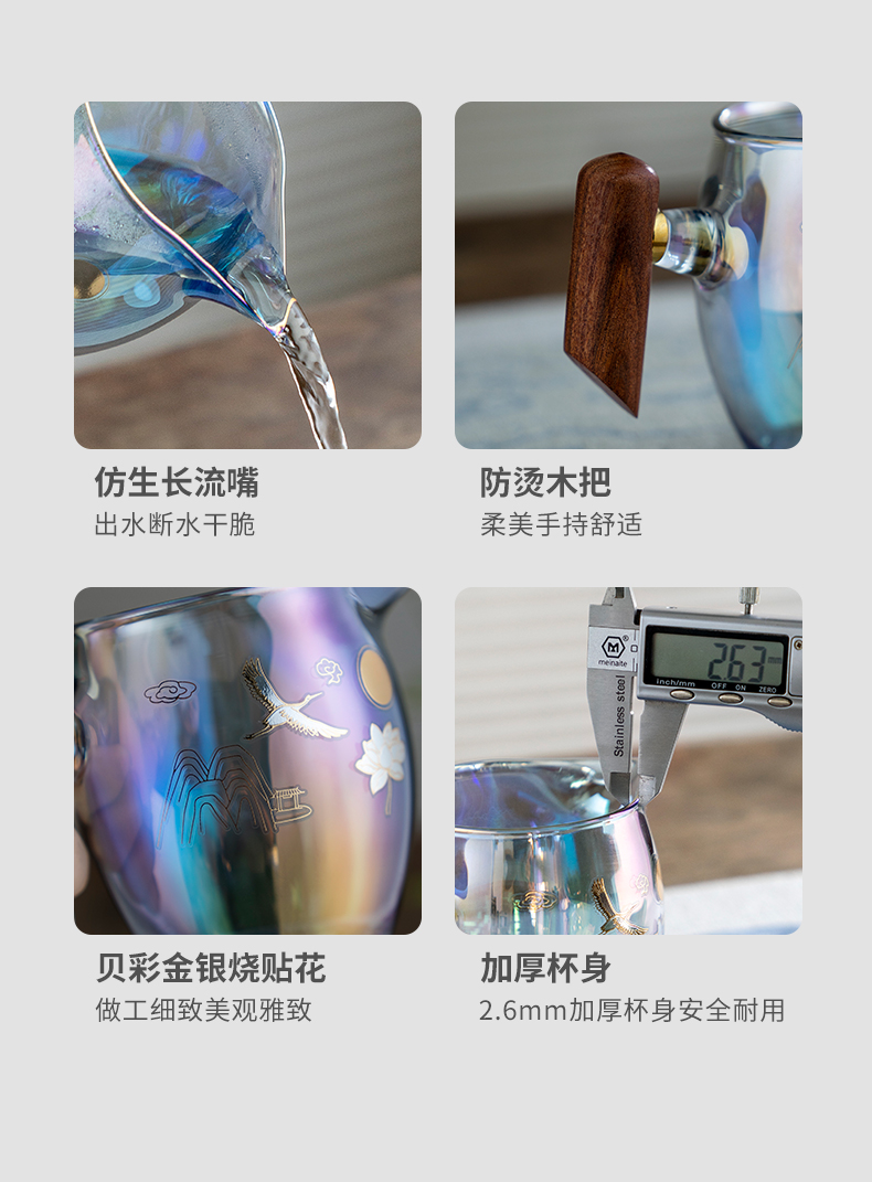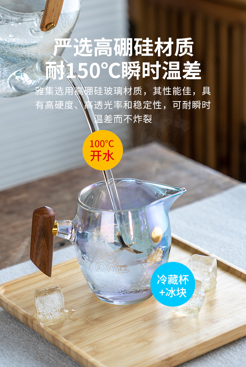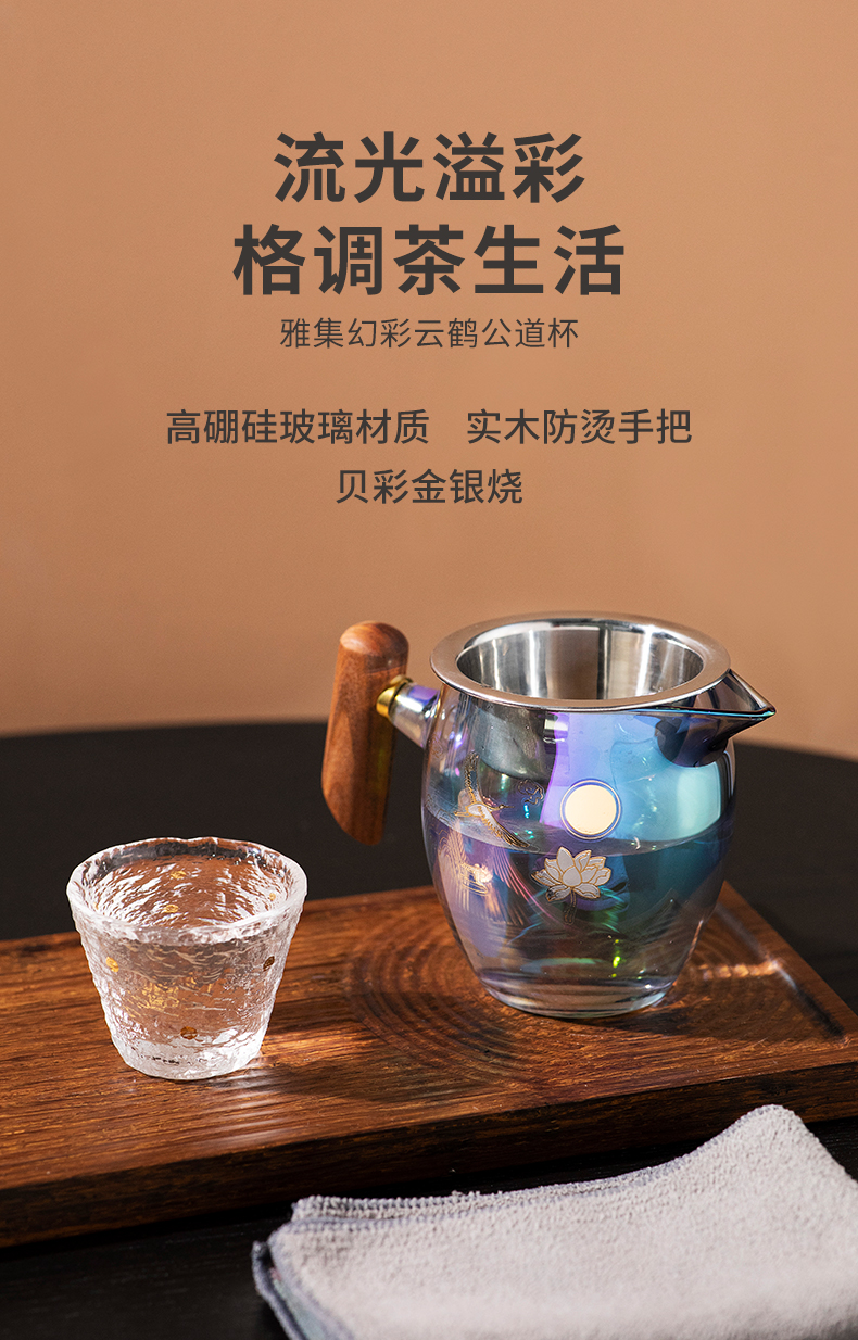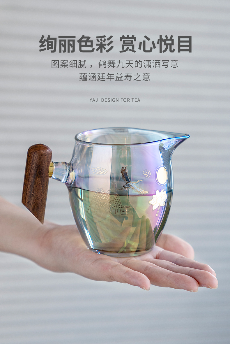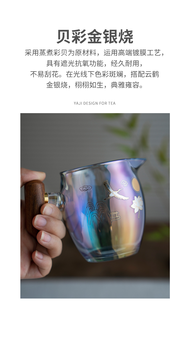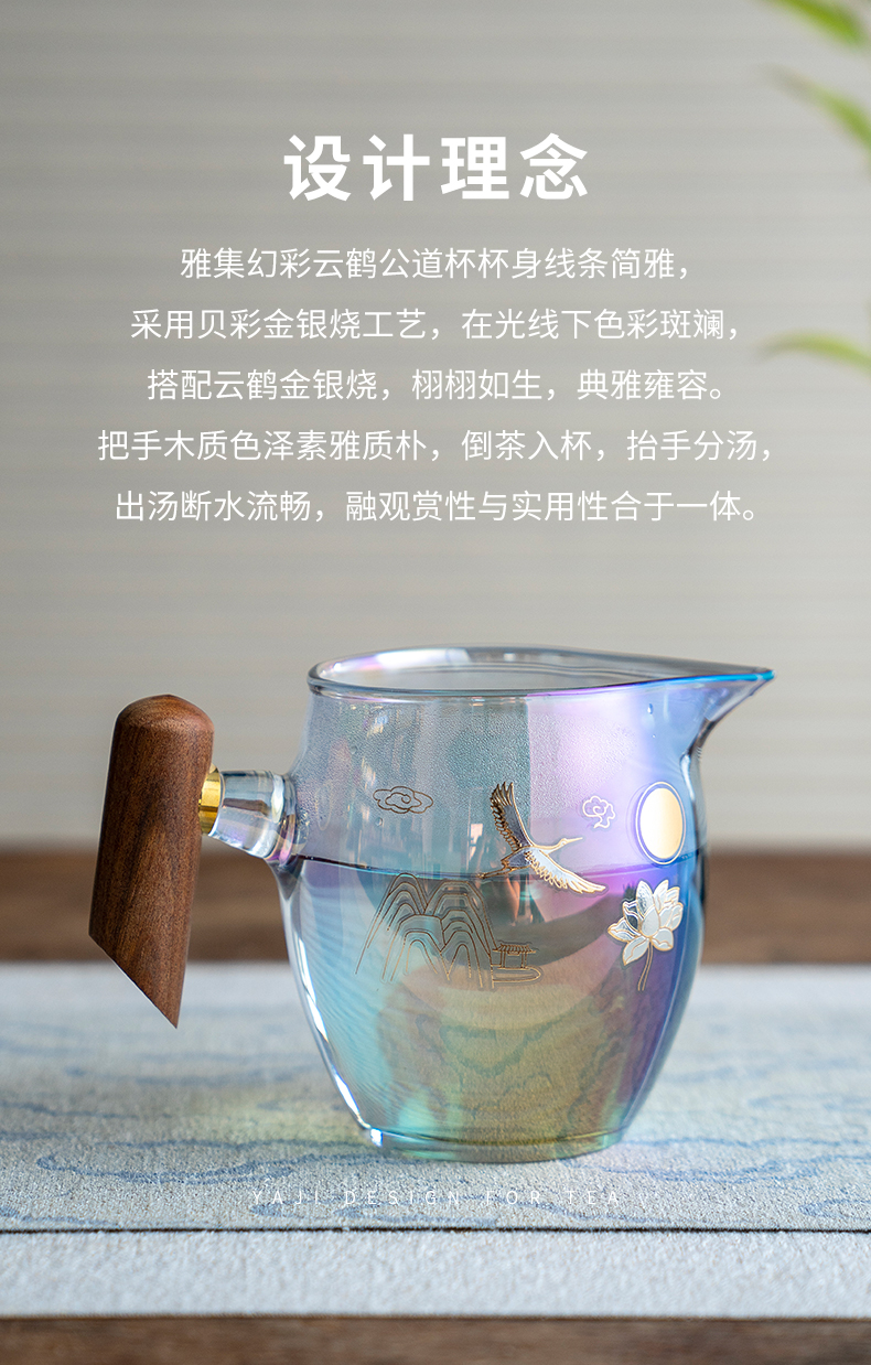 雅集茶具木把公道杯360ml 幻彩云鹤带茶隔
