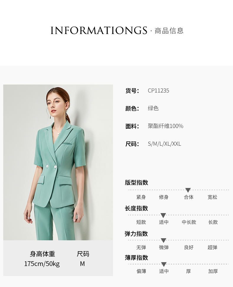 IWY/绿色短袖职业装女士高级感西装套装夏季薄款气质工作服商务正装OL CP11235